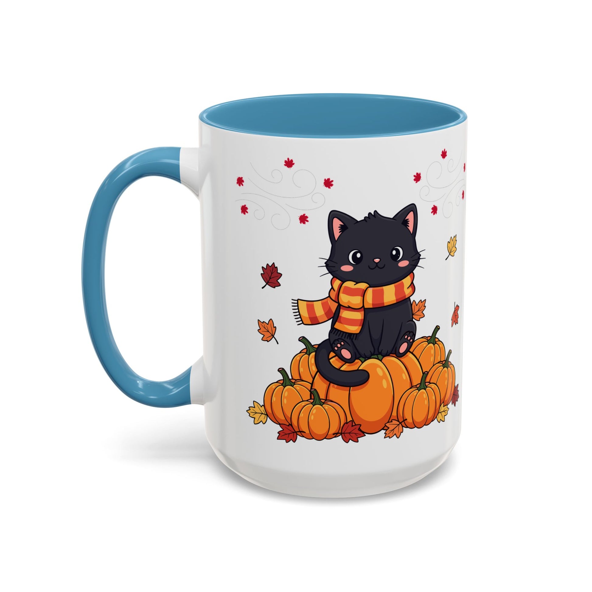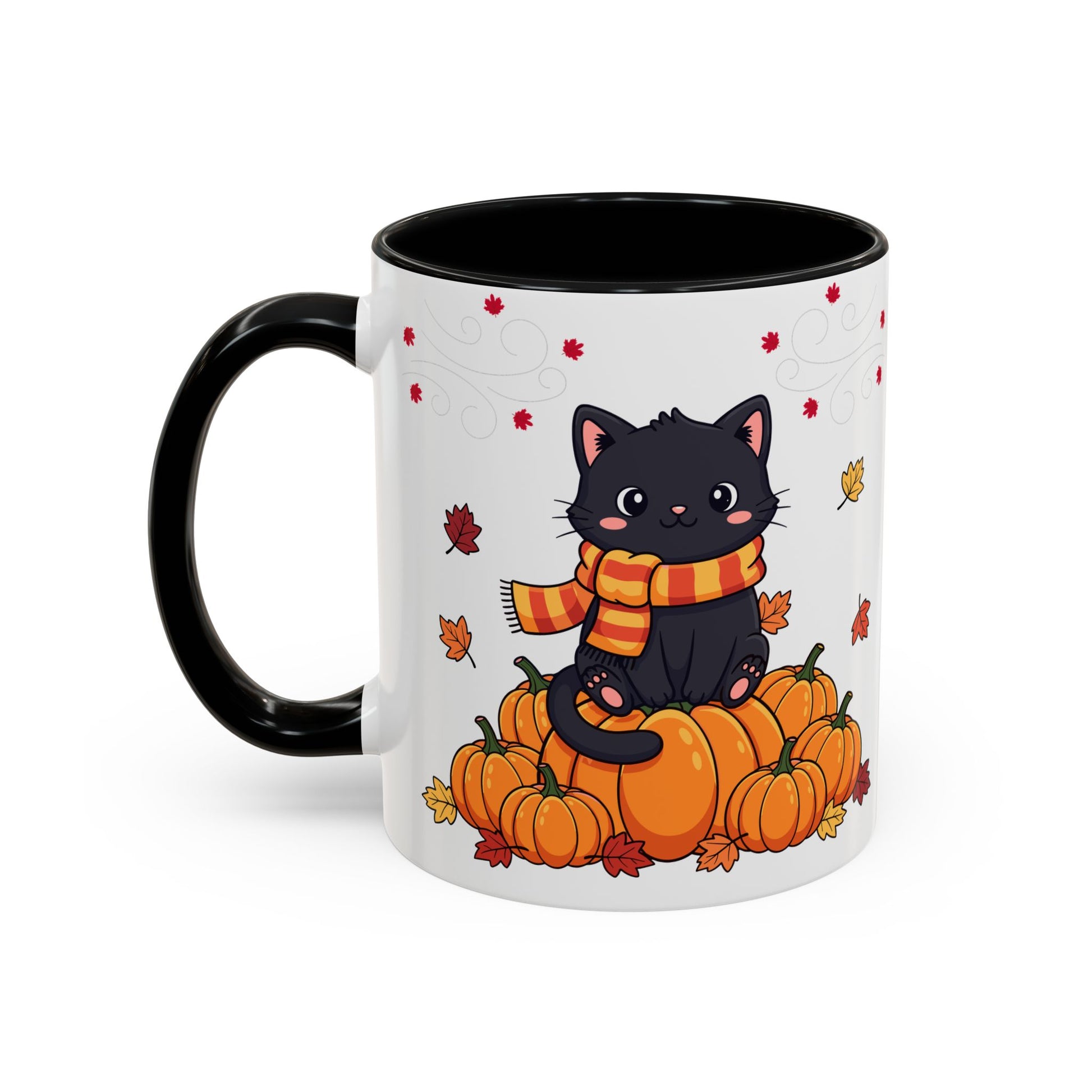 Elevate your coffee experience with this delightful Accent Coffee Mug. Designed to bring a touch of whimsy and warmth, this mug features a charming fall-inspired design of playful black cats and vibrant pumpkins, perfect for cozy mornings or chilly evenings. Its glossy finish and eye-catching color contrasts make it a fantastic centerpiece for your kitchen or office desk. Ideal for cat lovers, seasonal décor enthusiasts, or anyone looking to add a bit of fun to their daily routine. This mug is suitable for various occasions including Halloween, Thanksgiving, or simply as a cheerful gift for friends and family during the fall season. Enjoy your favorite beverages in style and create a cozy atmosphere every time you sip!