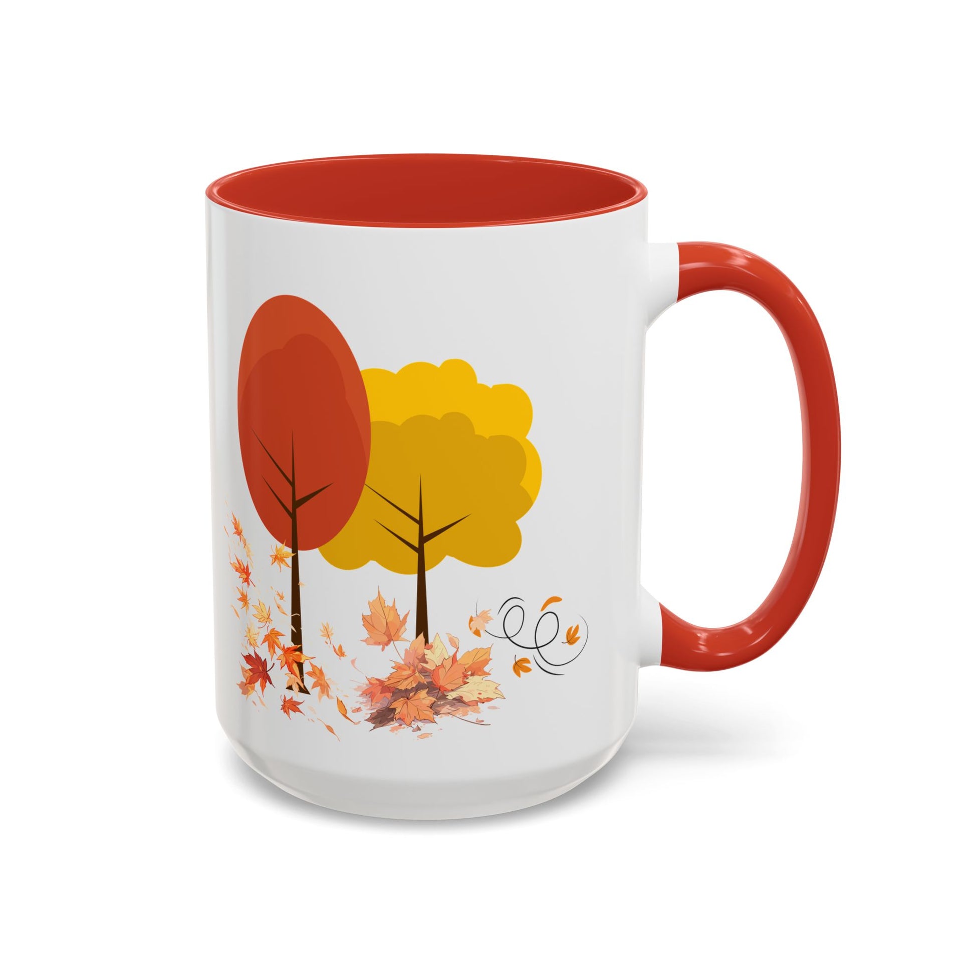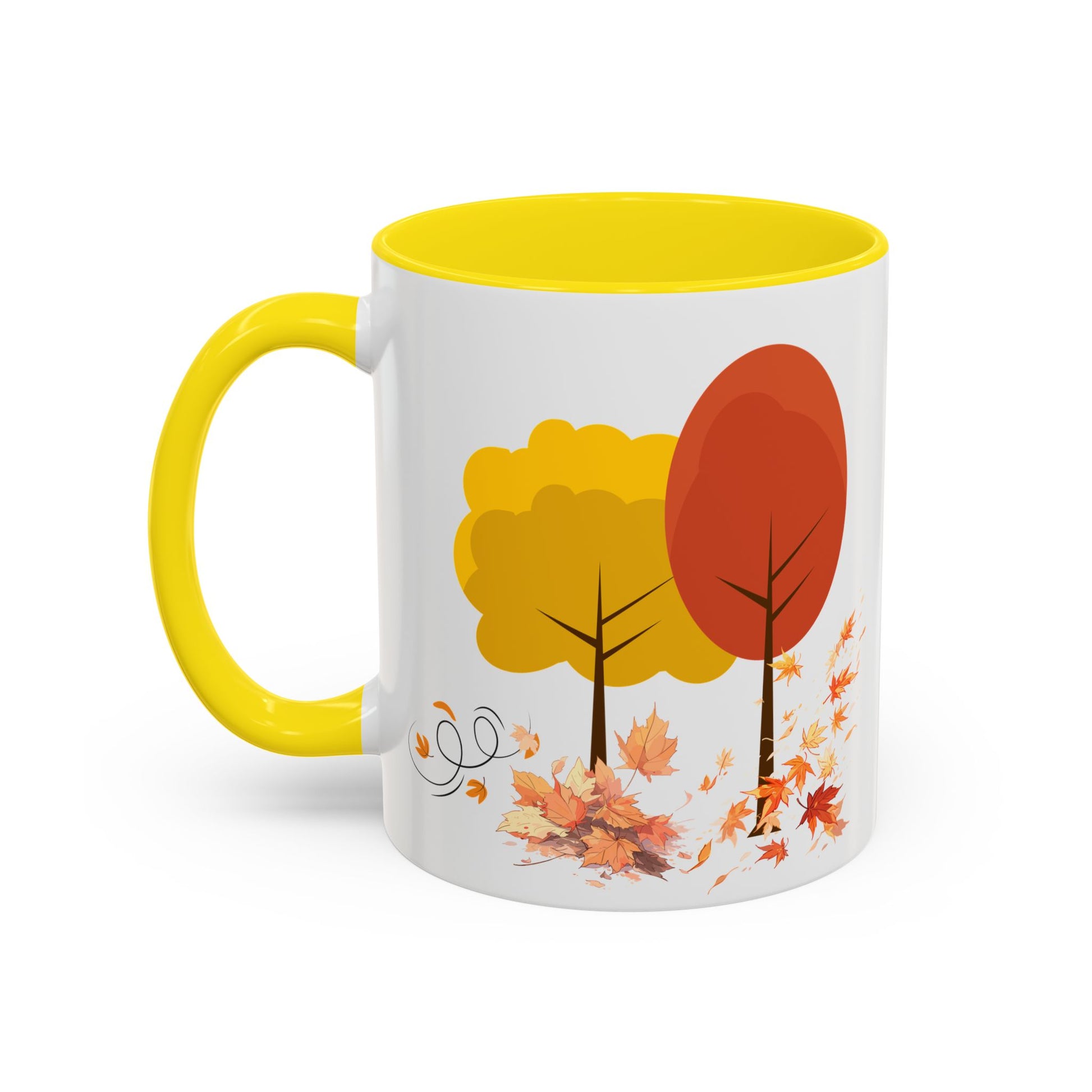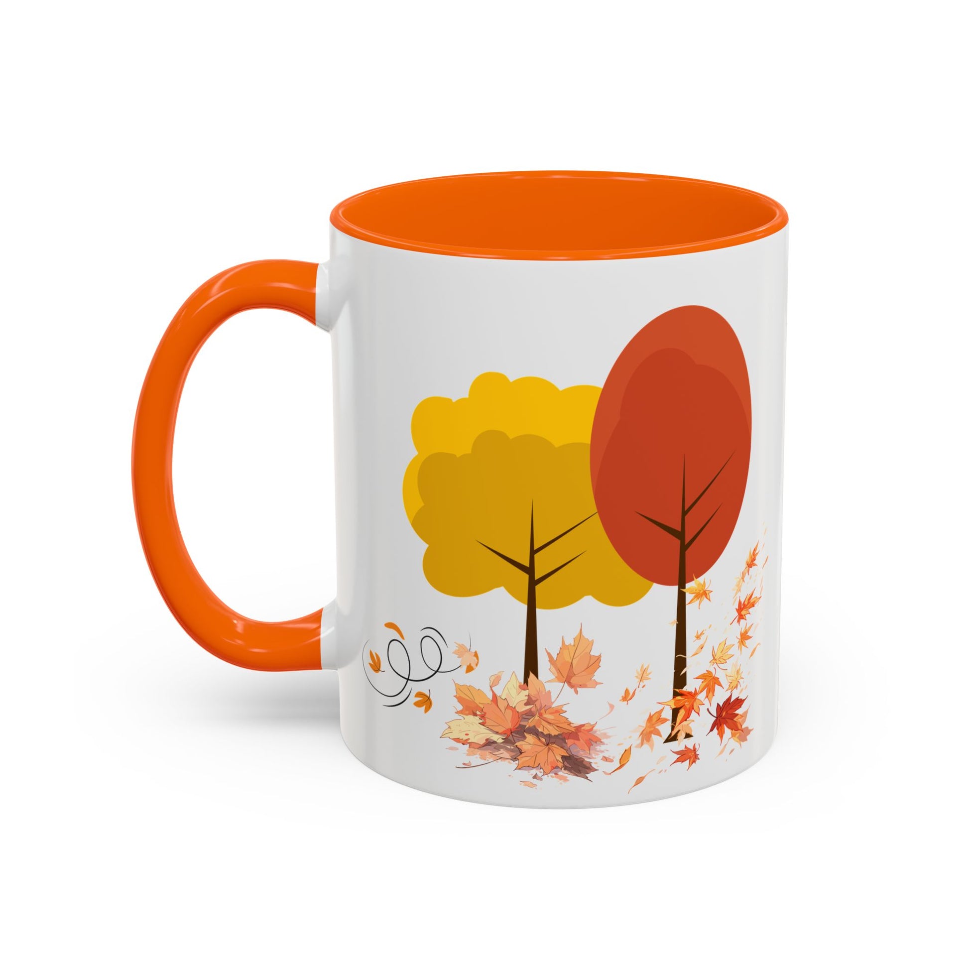 Introducing a cheerful Accent Coffee Mug that brings warmth and color to your daily routine. This vibrant mug is perfect for sipping your favorite hot beverages while admiring its delightful autumn design featuring colorful trees and falling leaves. Ideal for cozy mornings at home or as a charming addition to your office. Whether you're enjoying a cup of coffee, tea, or hot chocolate, this mug radiates a welcoming vibe that enhances any setting. It's especially relevant for autumn-themed gatherings, Thanksgiving celebrations, or as a thoughtful gift for friends and family who appreciate a little seasonal flair in their kitchenware. Perfect for nature lovers and coffee aficionados alike, this mug is a must-have accessory for those who enjoy the simple pleasures of life.