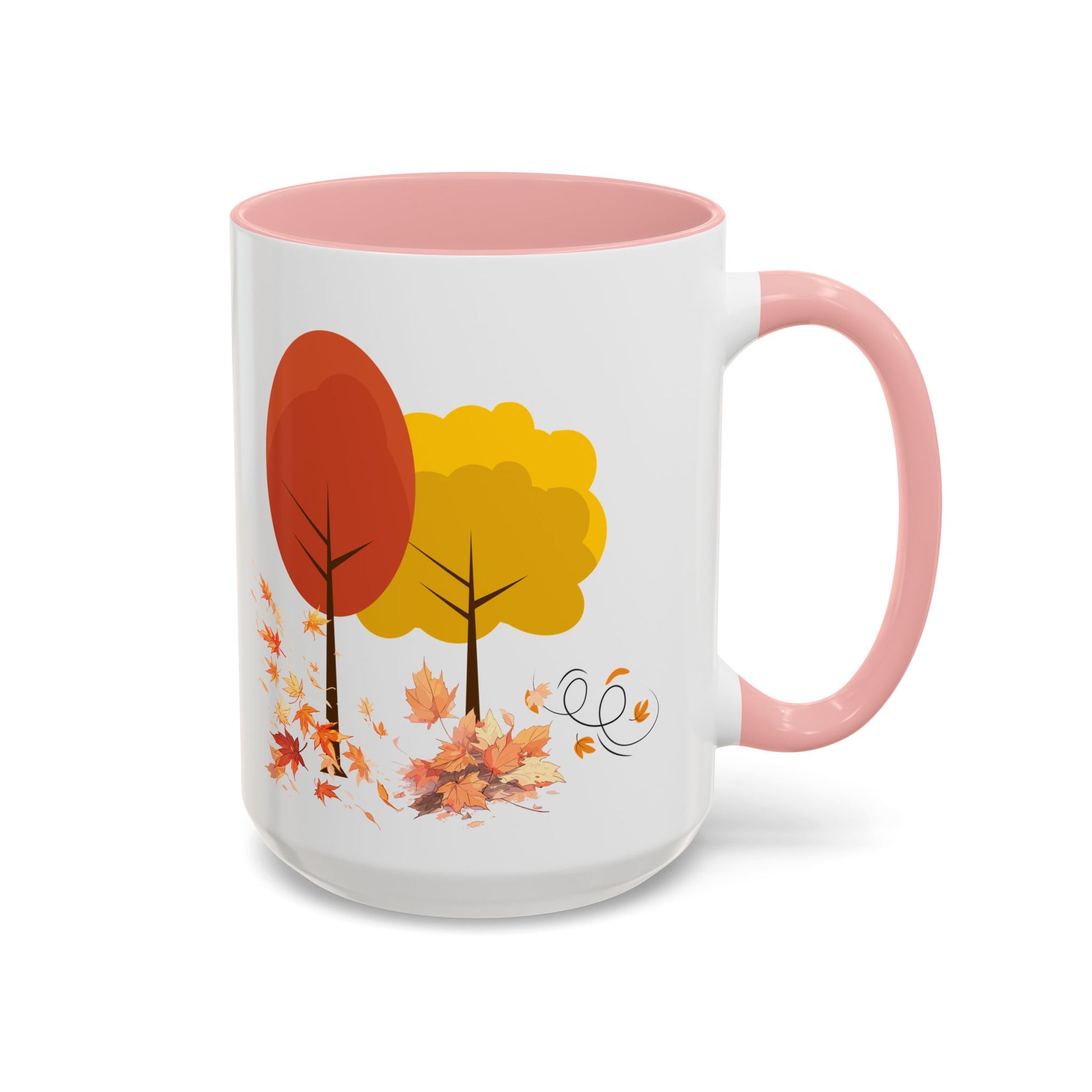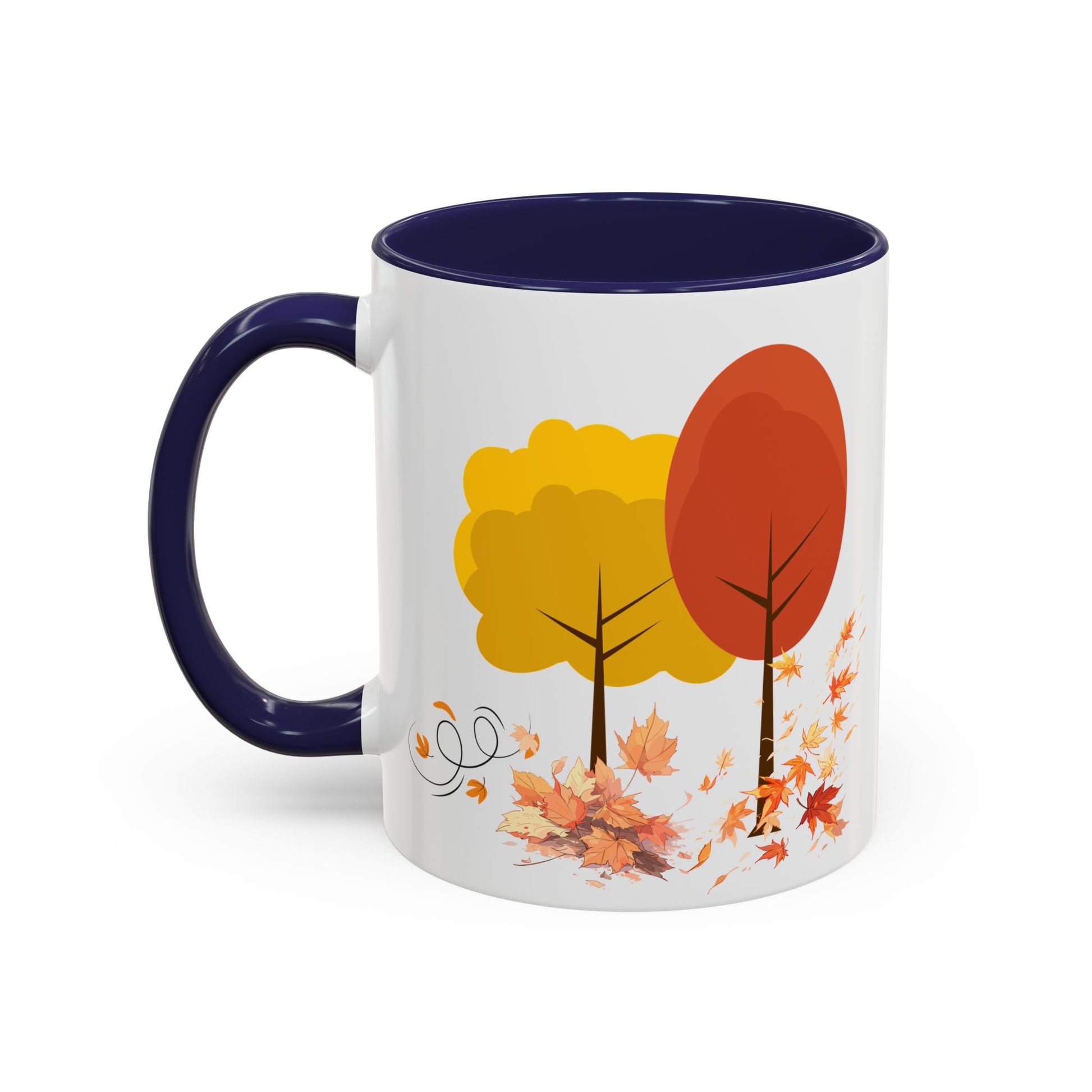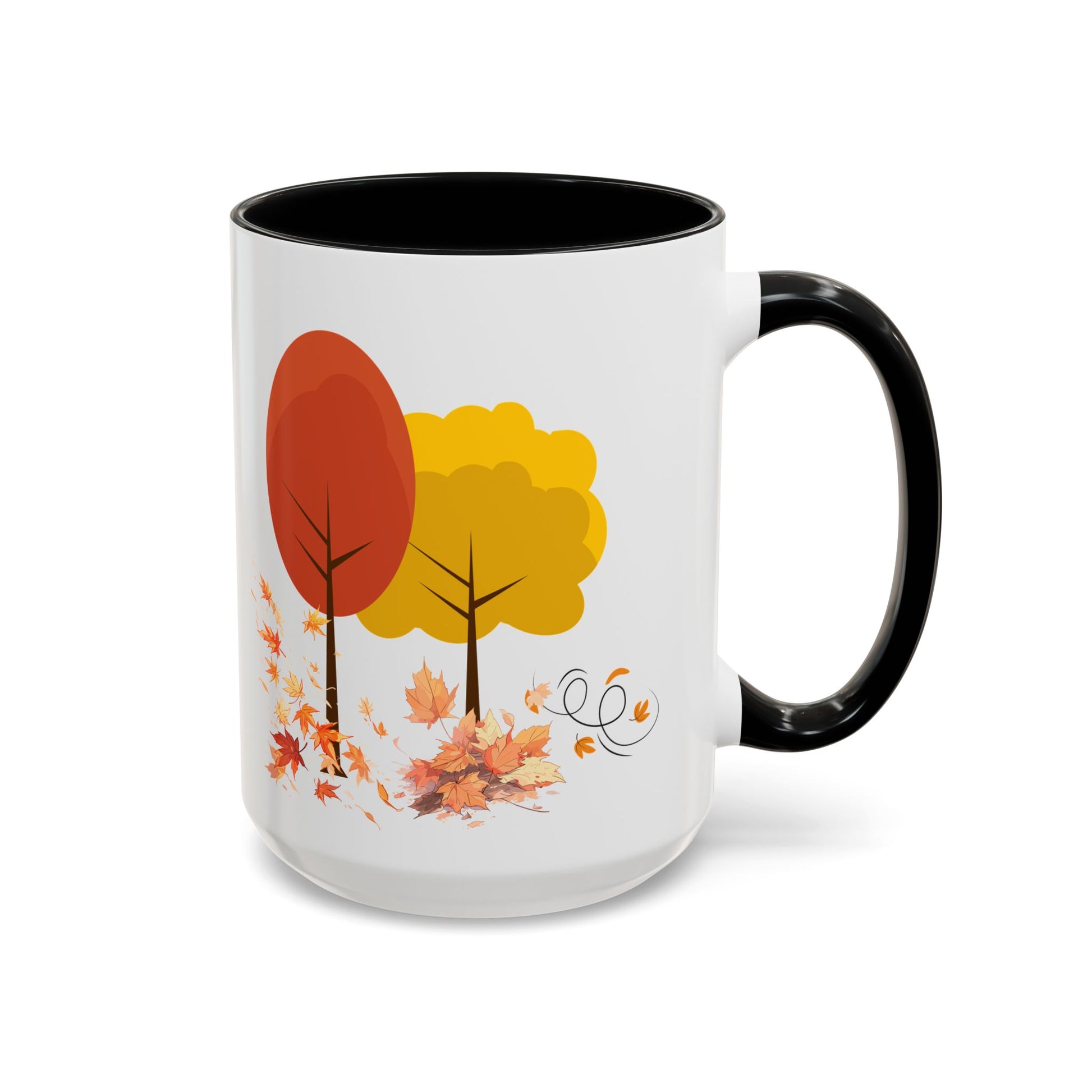 Introducing a cheerful Accent Coffee Mug that brings warmth and color to your daily routine. This vibrant mug is perfect for sipping your favorite hot beverages while admiring its delightful autumn design featuring colorful trees and falling leaves. Ideal for cozy mornings at home or as a charming addition to your office. Whether you're enjoying a cup of coffee, tea, or hot chocolate, this mug radiates a welcoming vibe that enhances any setting. It's especially relevant for autumn-themed gatherings, Thanksgiving celebrations, or as a thoughtful gift for friends and family who appreciate a little seasonal flair in their kitchenware. Perfect for nature lovers and coffee aficionados alike, this mug is a must-have accessory for those who enjoy the simple pleasures of life.