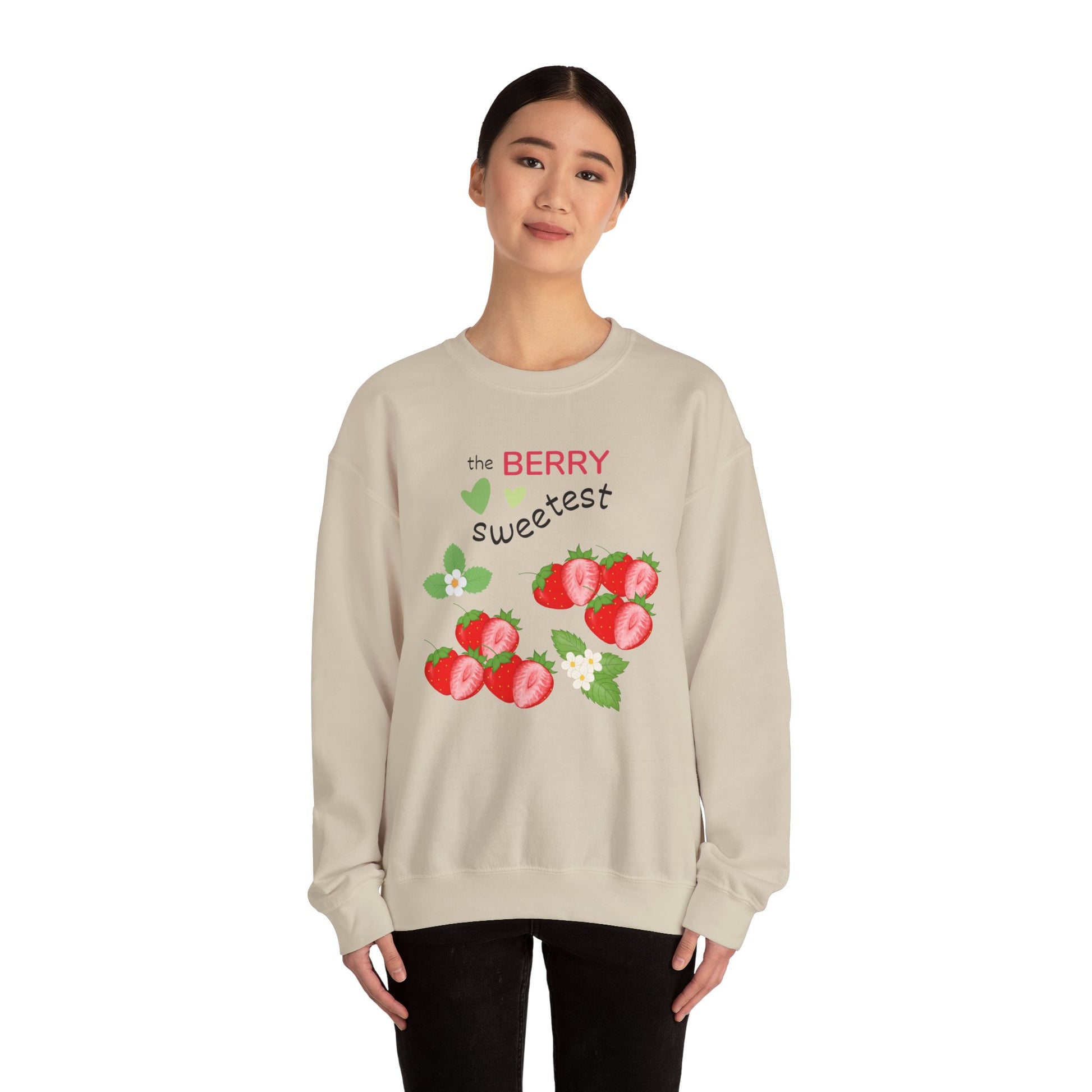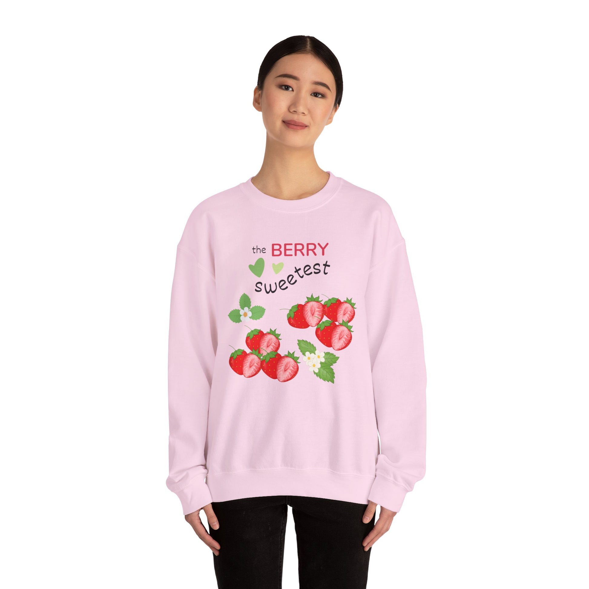 Introduce a touch of sweetness to your wardrobe with this delightful crewneck sweatshirt. Featuring a charming strawberry design with the playful phrase "the BERRY sweetest," this garment is perfect for anyone who loves to express their fun, fruity side. Its cozy medium-heavy fabric ensures a warm embrace during chilly days, making it an ideal choice for fall gatherings, casual hangouts, or cozy nights in. This sweatshirt is relevant for a variety of occasions, from birthdays to Valentine's Day, and is sure to be a hit among both friends and family. Designed for adults, it combines style and comfort effortlessly, fitting seamlessly into your everyday wear with a flair for whimsy and charm.