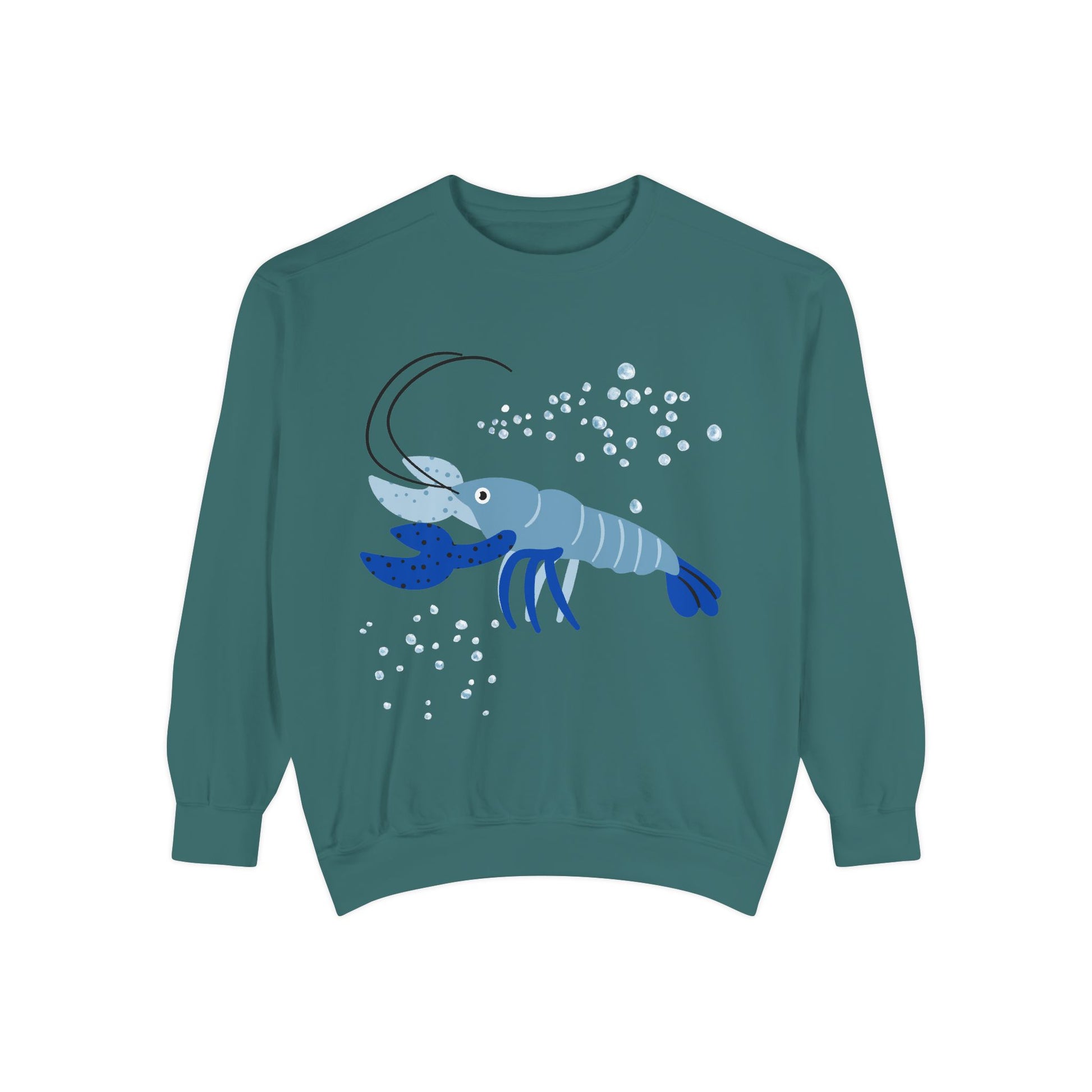 Blue shrimp with dark blue claws and bubbles Unisex Garment-Dyed Sweatshirt