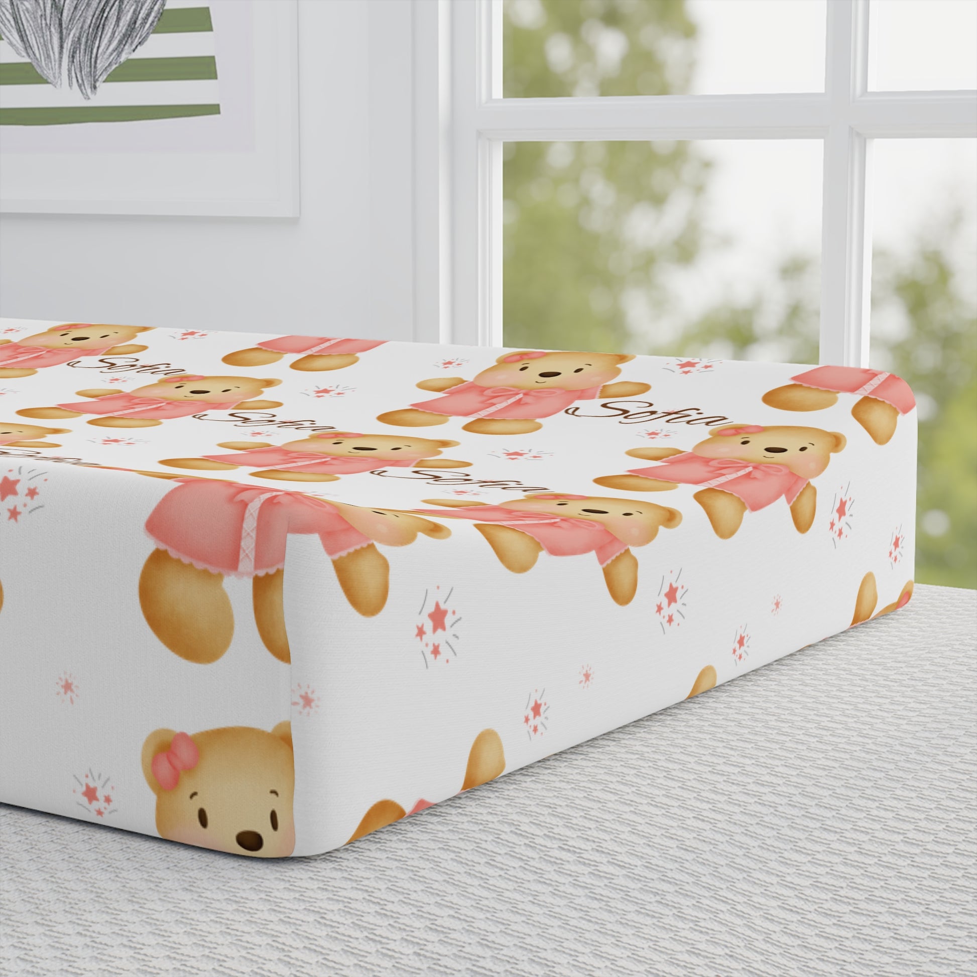 Changing Pad Cover — Cute Pink Teddy Bear Pattern