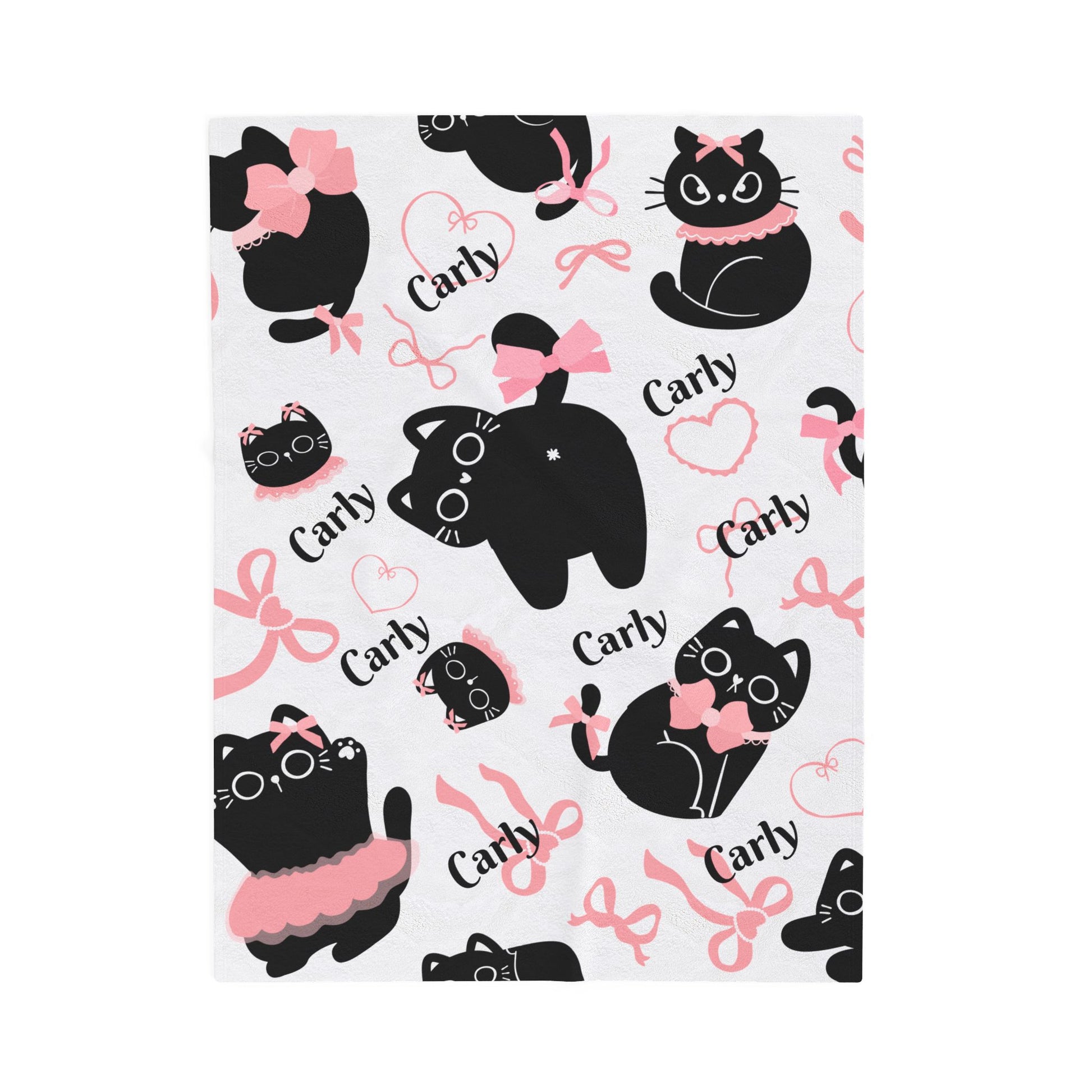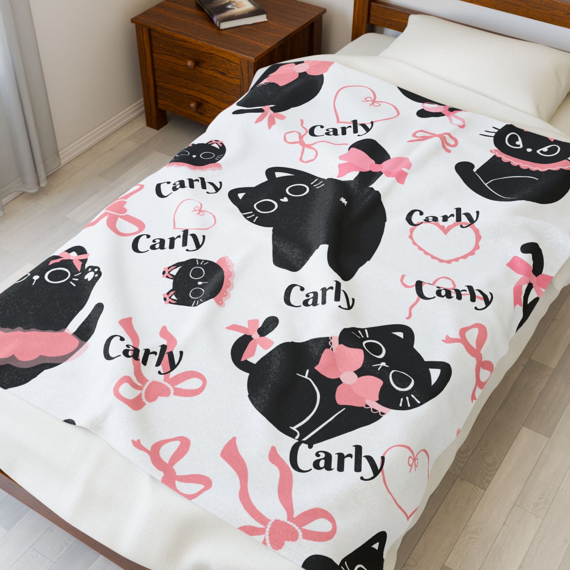 Cuddly Cat-Themed Velveteen Plush Blanket | Cozy Cat Lover Gift, Cute Home Decor, Birthday, Cat-Themed Decor, Soft Throw Blanket