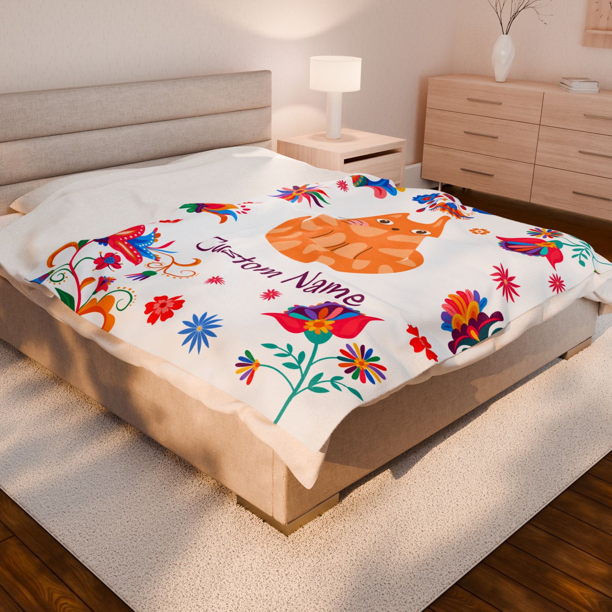Custom Cat Velveteen Plush Blanket, Personalized Gift for Cat Lovers, Cozy Home Decor, Birthday, Holiday Blanket