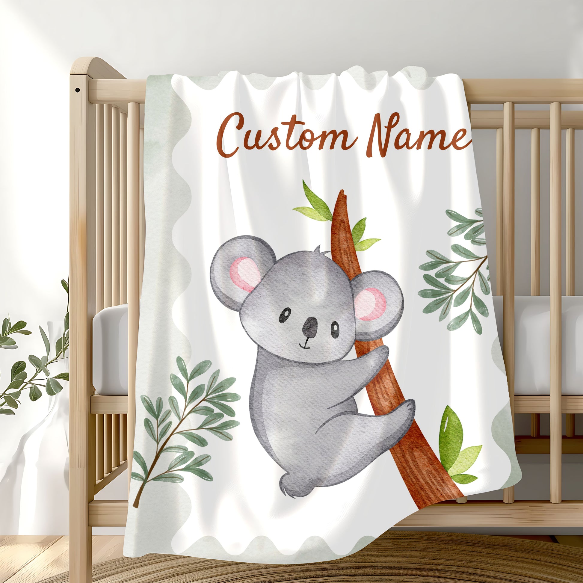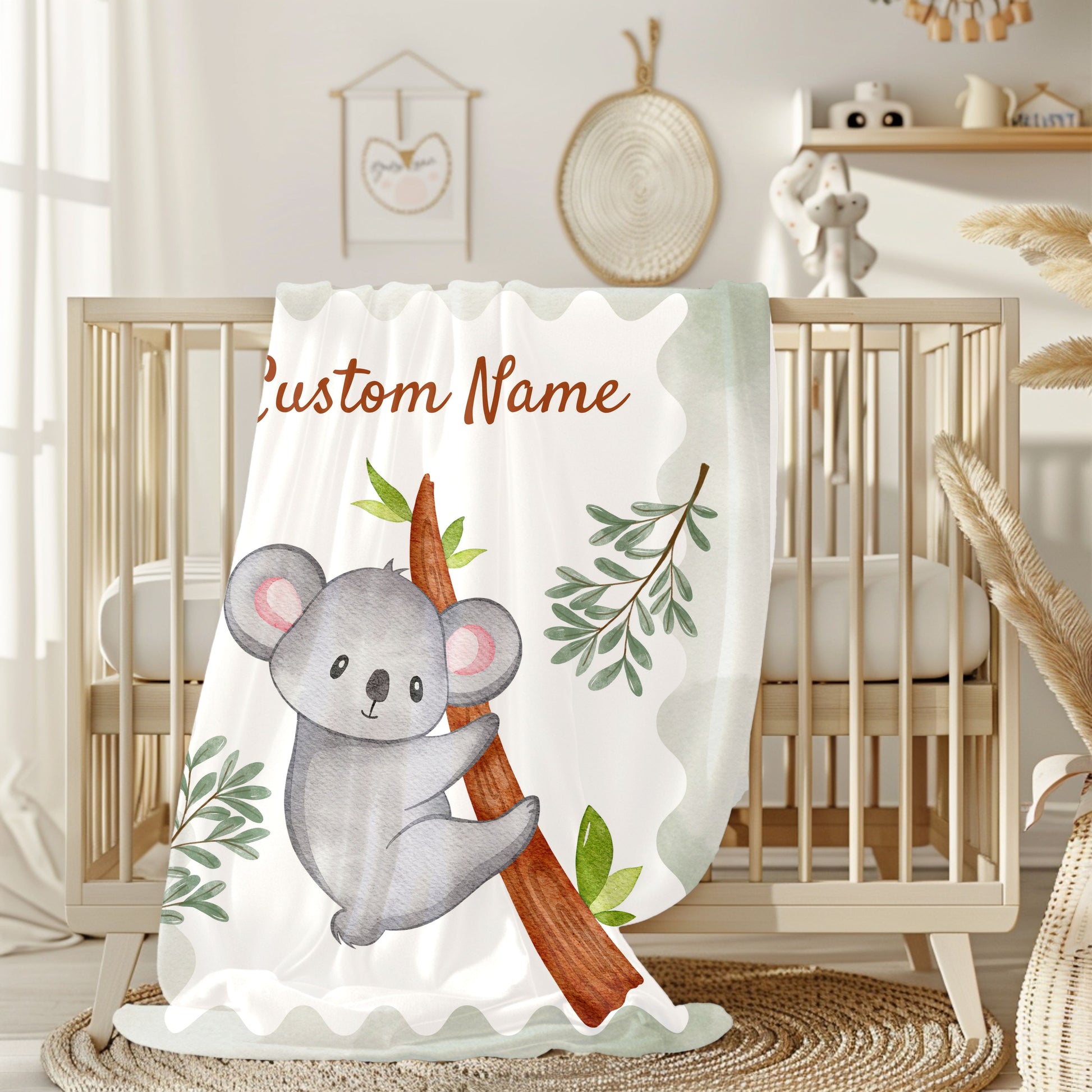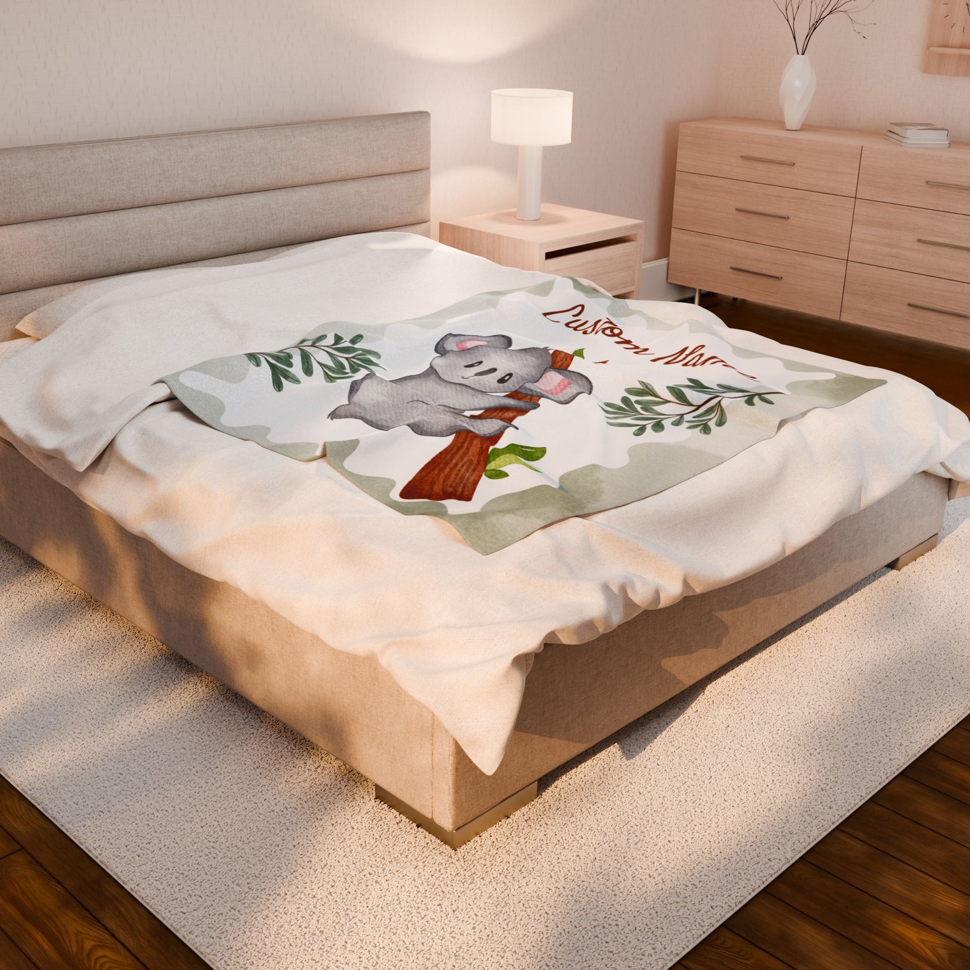 Custom Velveteen Plush Blanket with Adorable Koala Design, Cozy Gift for Kids, Nursery Decor, Personalized Baby Blanket, Holiday Gift Idea