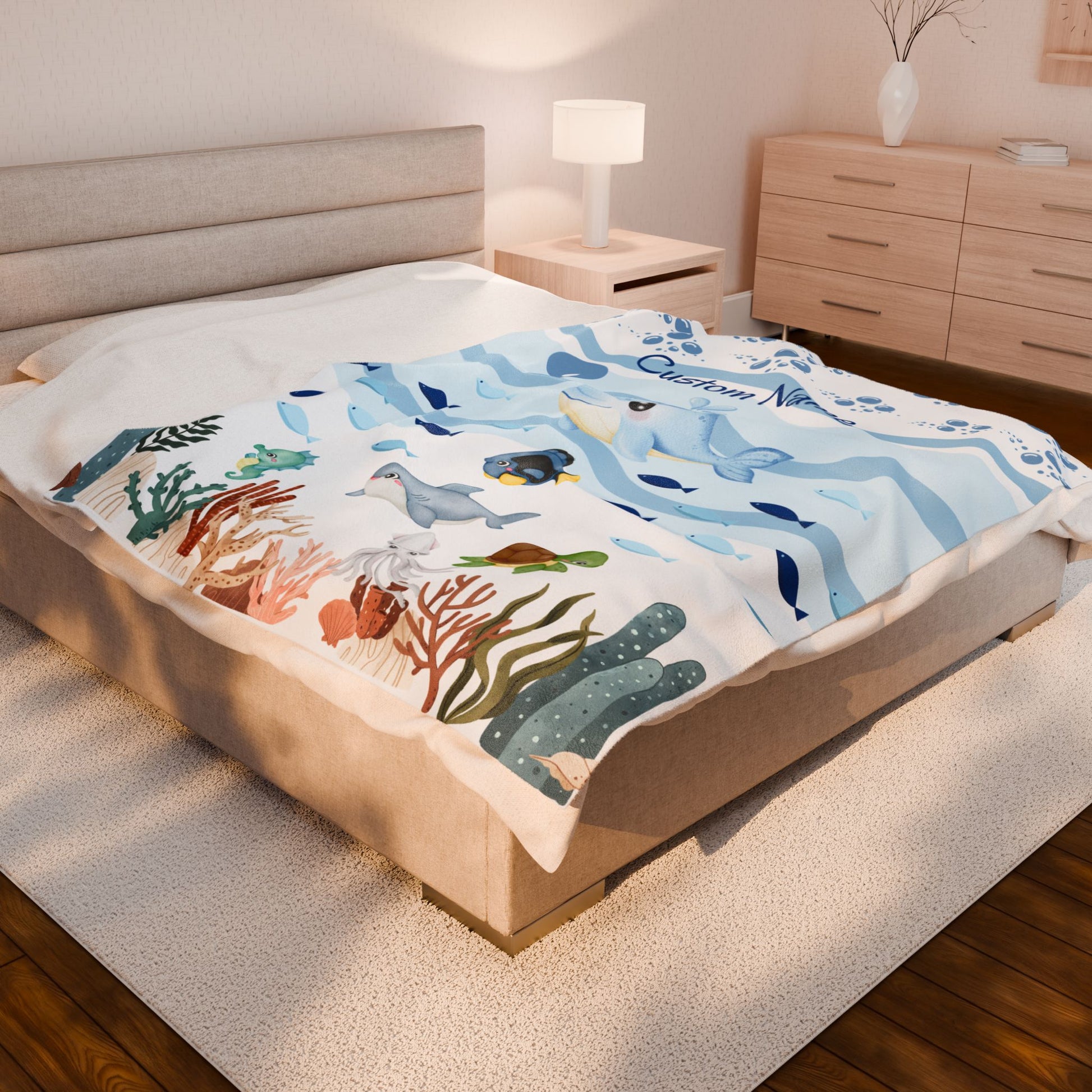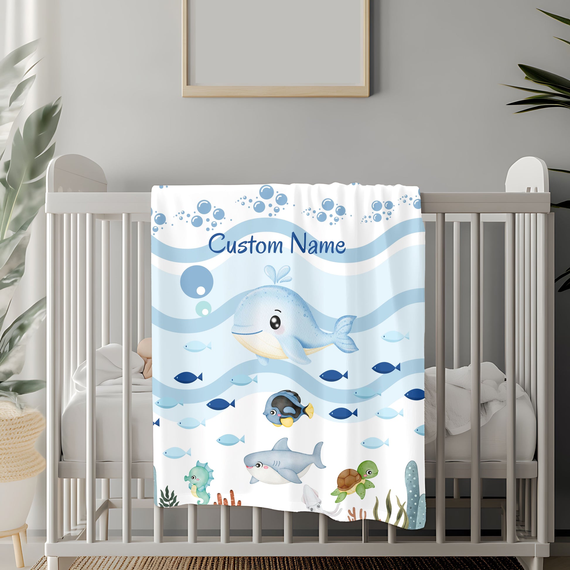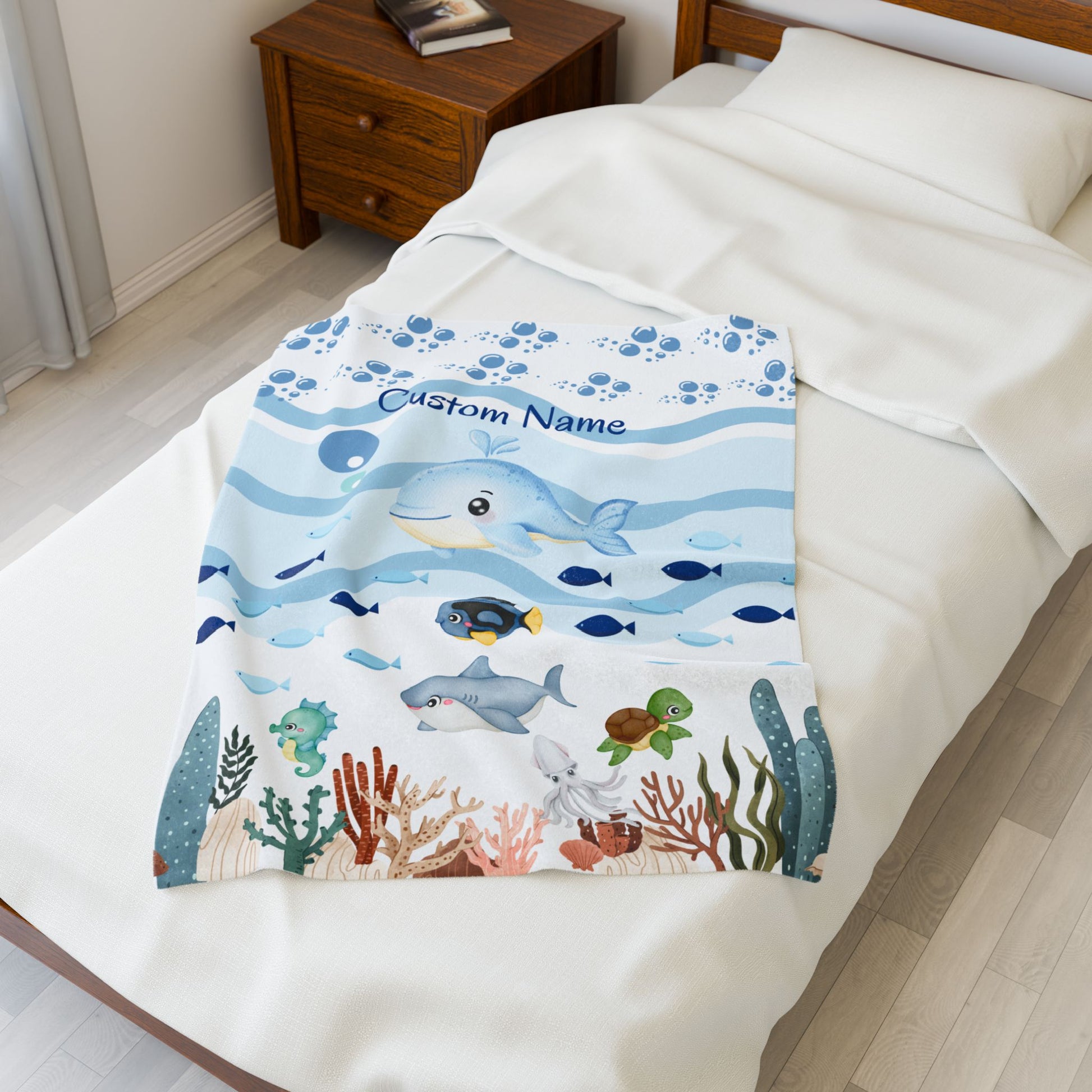 Custom Whale Theme Velveteen Blanket for Kids, Cozy Throw, Personalized Gift, Nursery Decor, Ocean Lovers, Baby Shower