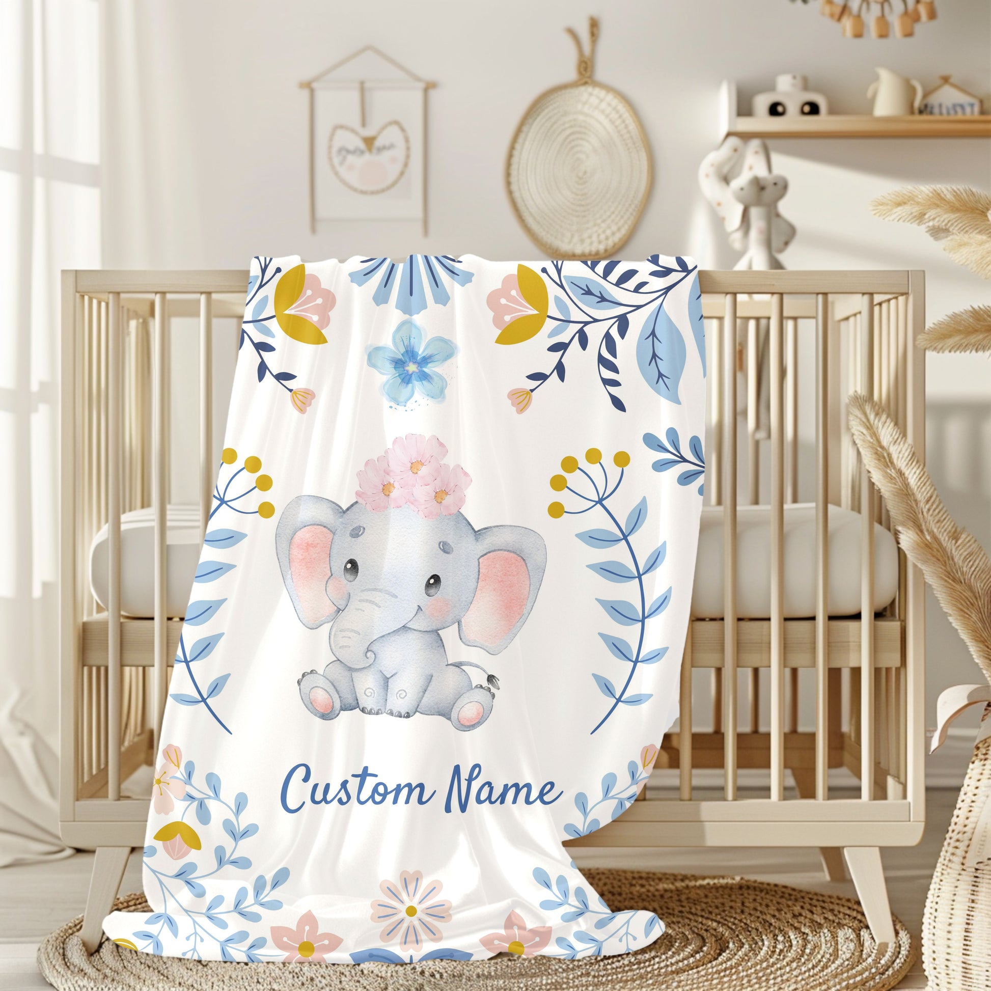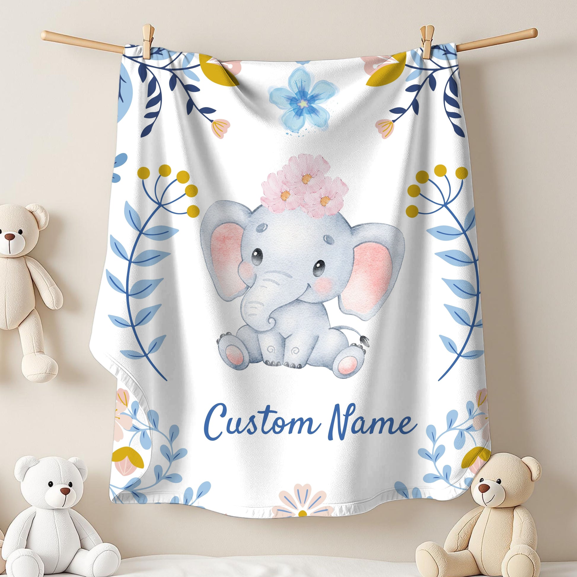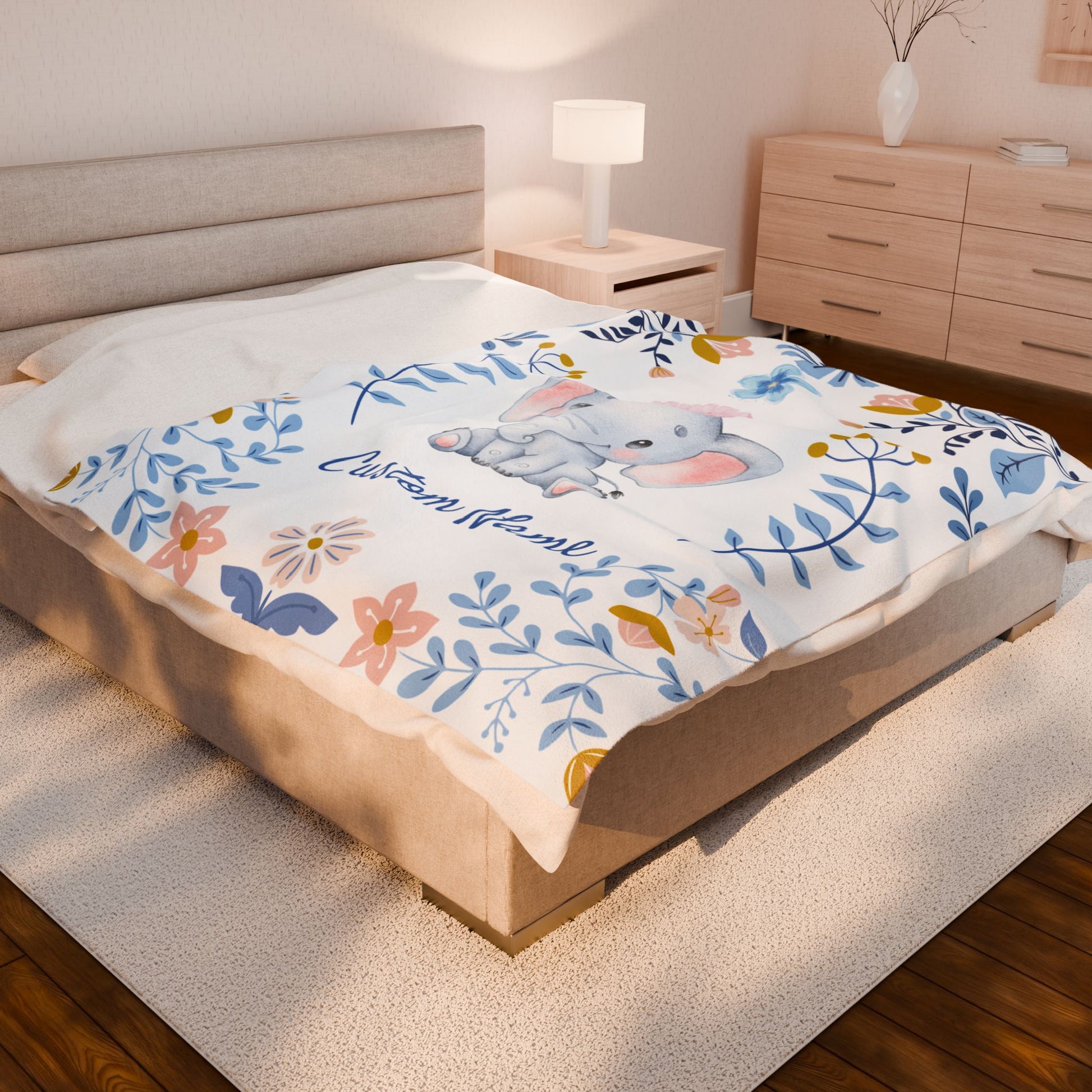 Customizable Velveteen Plush Blanket with Elephant Design, Cozy Throw, Baby Shower Gift, Nursery Decor, Personalized Baby Blanket