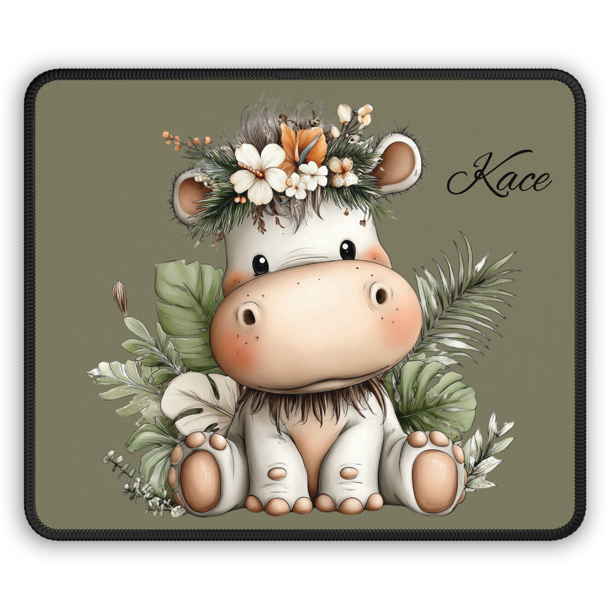 Cute Floral Cow Gaming Mouse Pad — Personalized Name Option