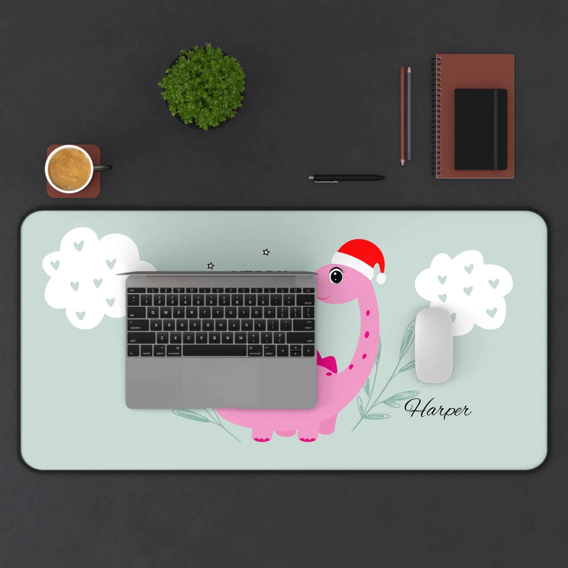 Dinosaur Christmas Desk Mat - Personalized Cute Desk Accessories, Home Office Gift, Playful Holiday Decor, Fun Kids Room Addition