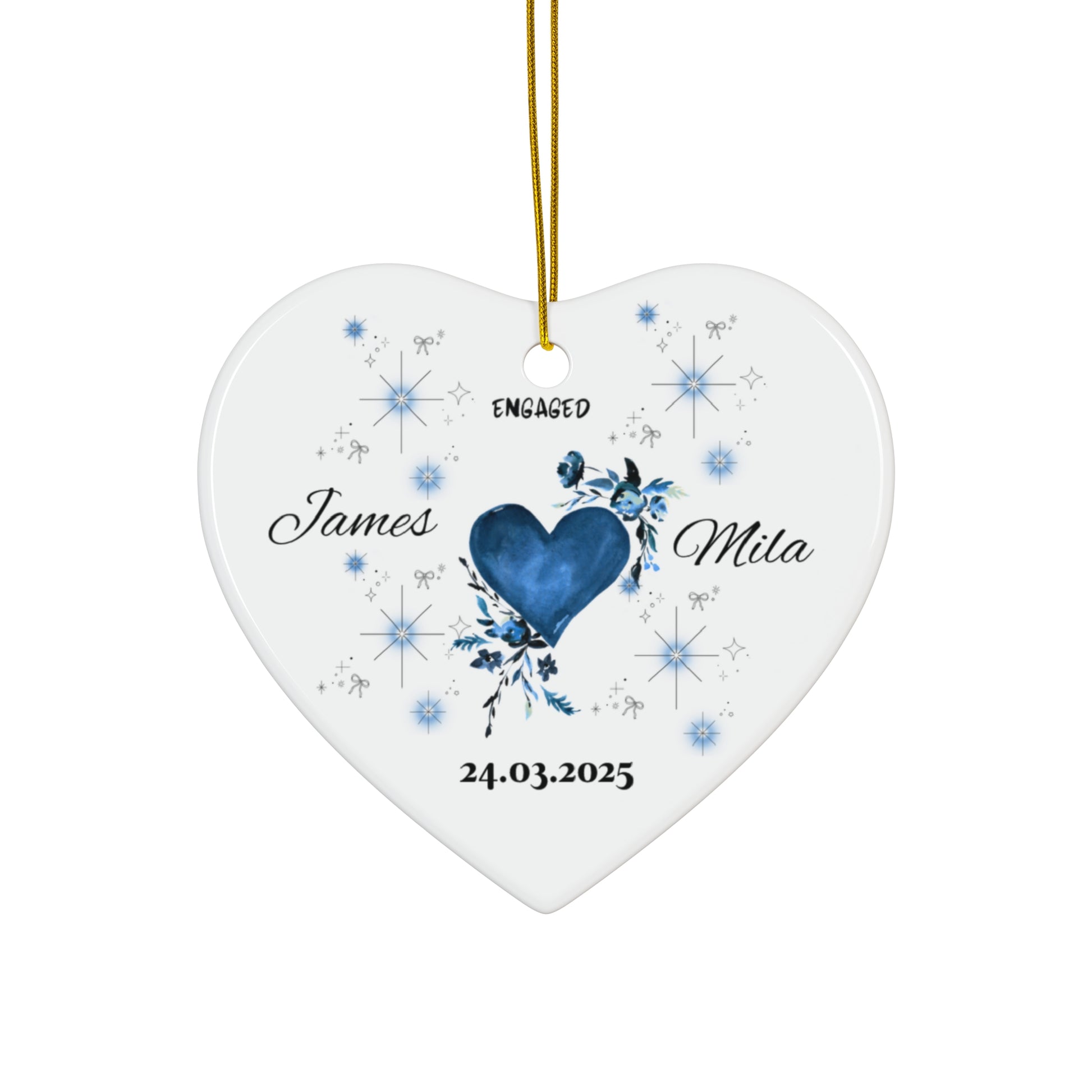 Engagement Heart Ceramic Ornament, Custom Personalized Keepsake, Wedding Gift, Couples Decor, Holiday Ornament