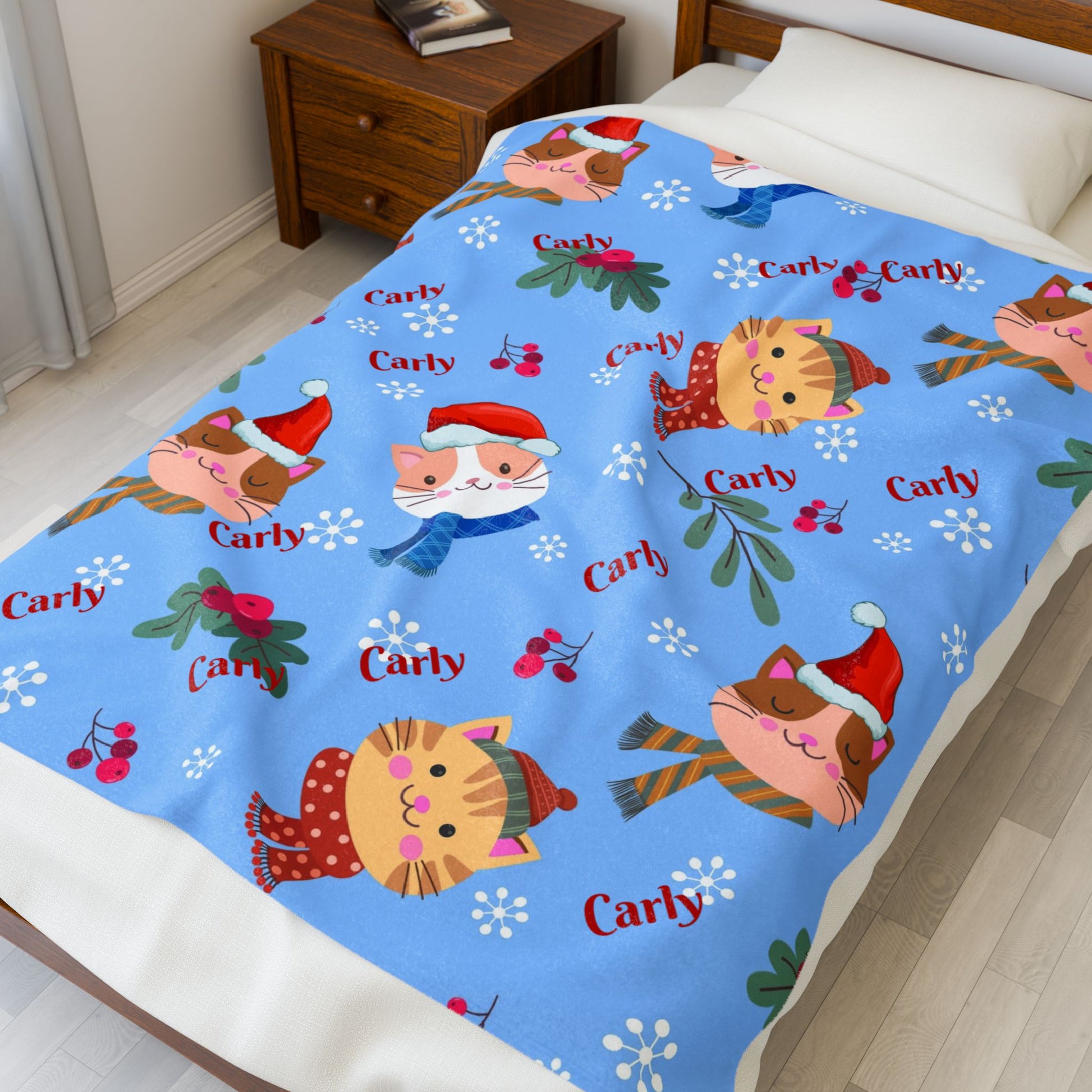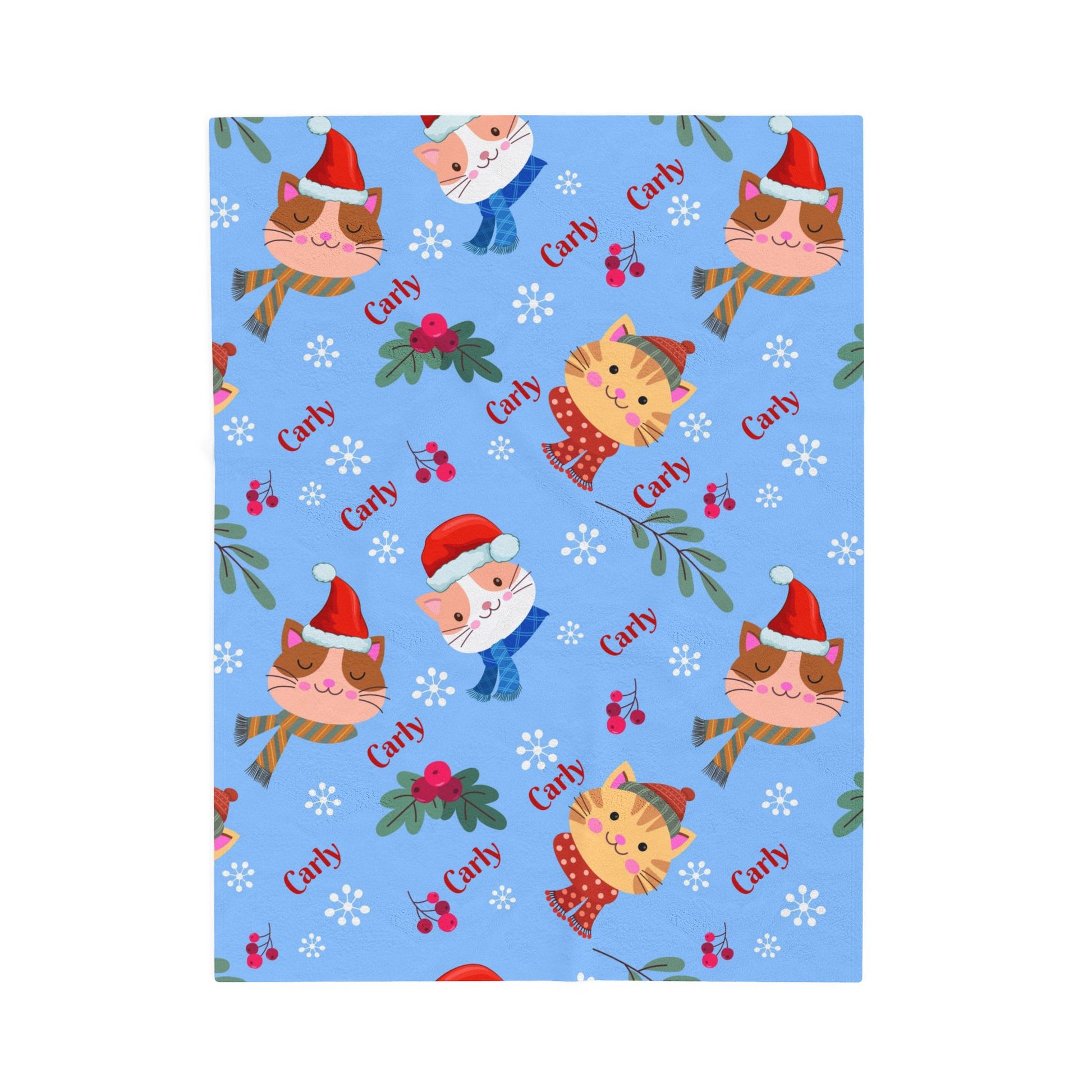 Festive Cat Plush Blanket - Cozy Holiday Throws, Winter Decor, Personalized Gift, Kids Bedding, Cat Lover Gift