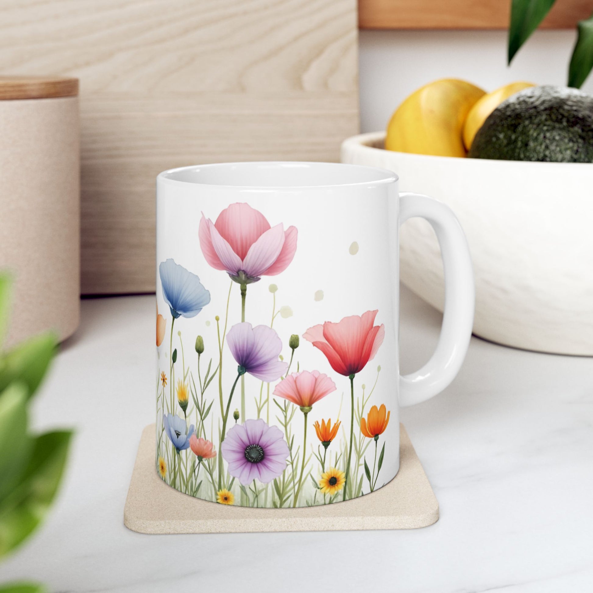 Floral Meadow Ceramic Mug — Watercolor Wildflower Coffee Cup (11oz & 15oz)