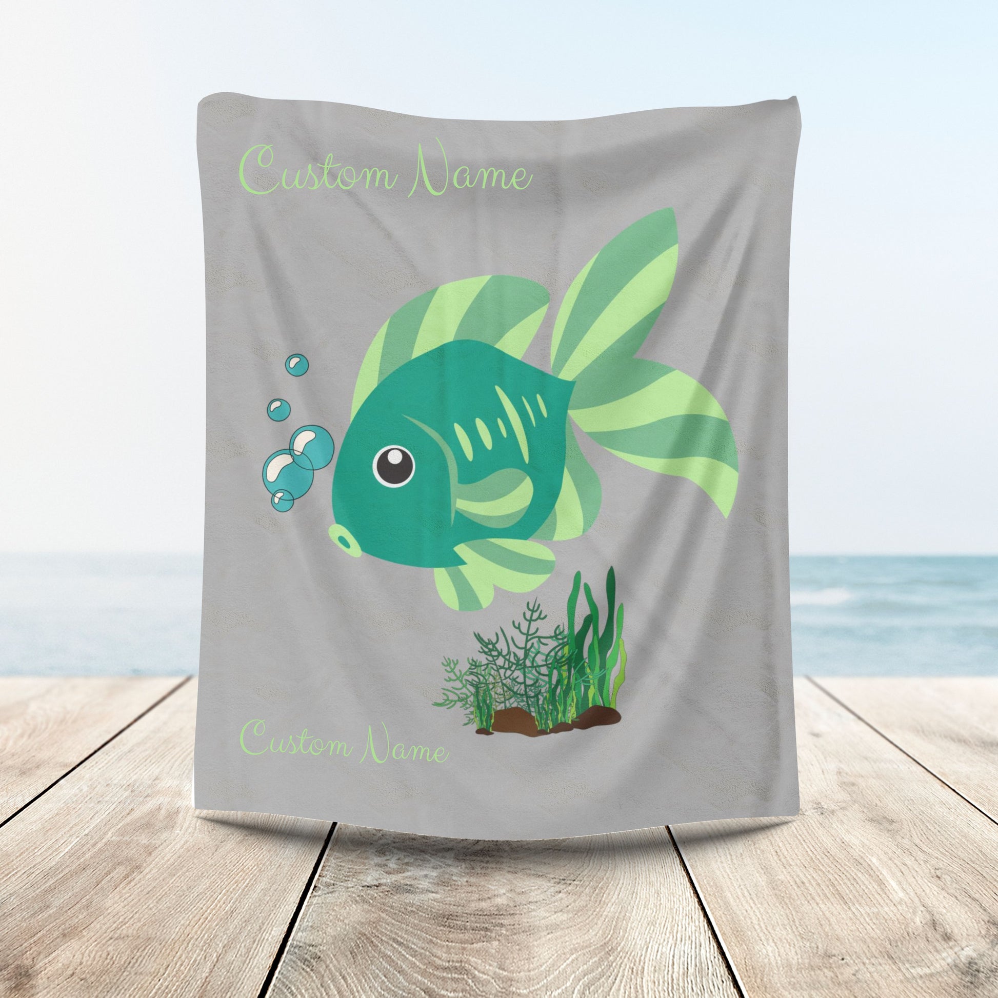 Green fish with bubbles and aquatic plants Velveteen Plush Blanket