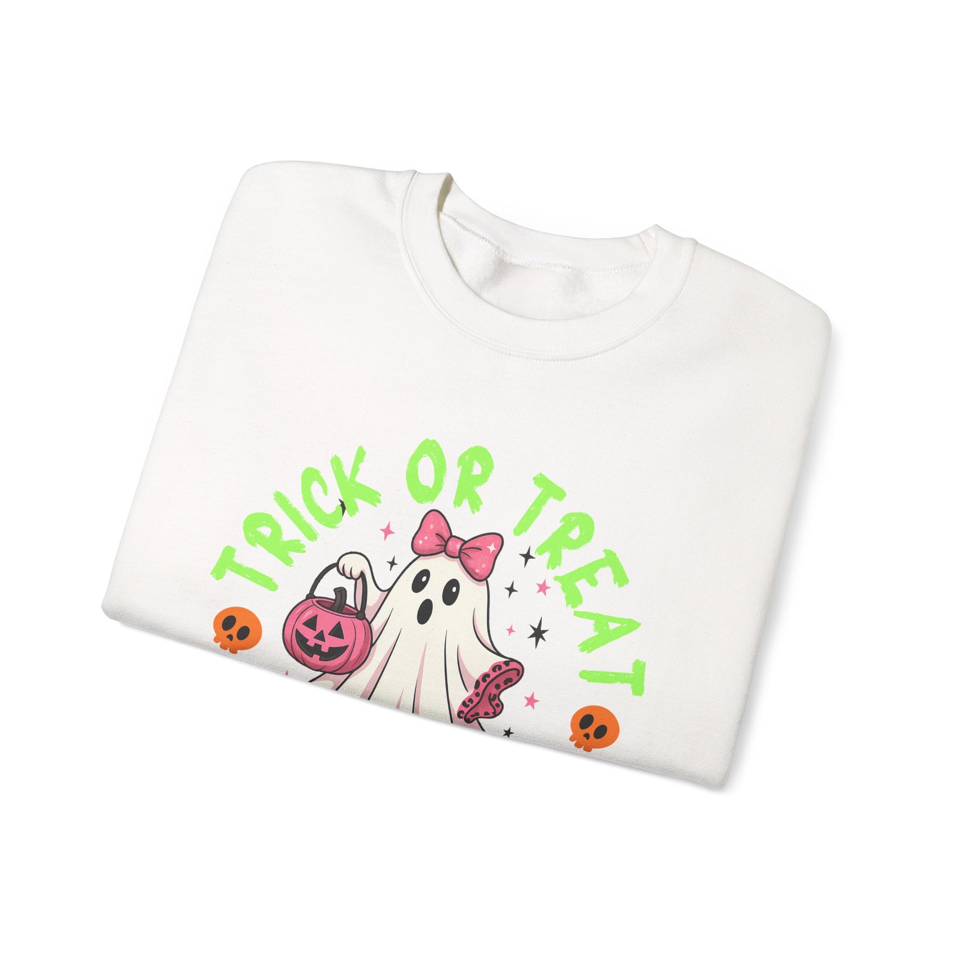 Embrace the cozy spirit of Halloween all season long with this delightful crewneck sweatshirt. Featuring a playful design complete with a friendly ghost, pumpkins, and festive colors, this sweatshirt brings a touch of whimsy to your fall wardrobe. Perfect for casual outings, pumpkin patch visits, or cozy nights in, it invites warmth and cheer wherever you go.