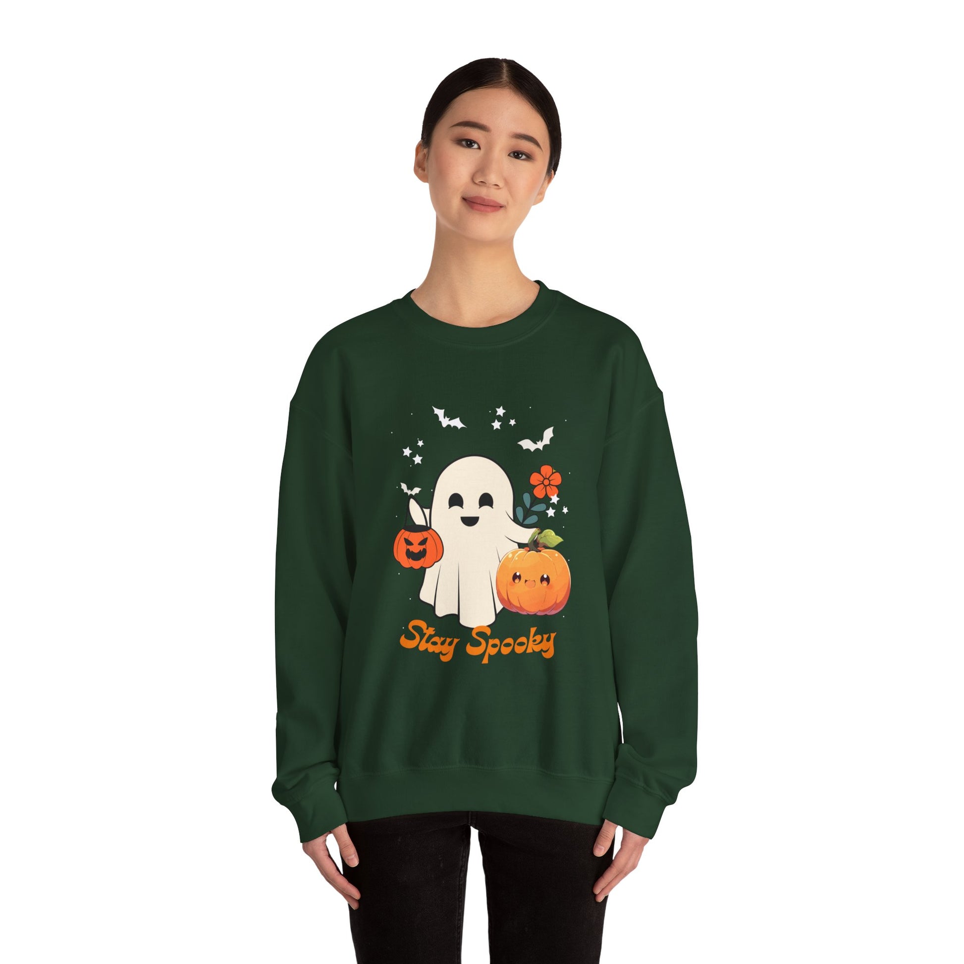 Halloween Ghost Sweatshirt, Cozy Unisex Crewneck for Fall, Stay Spooky Sweatshirt, Perfect for Halloween, Autumn Wardrobe Essential