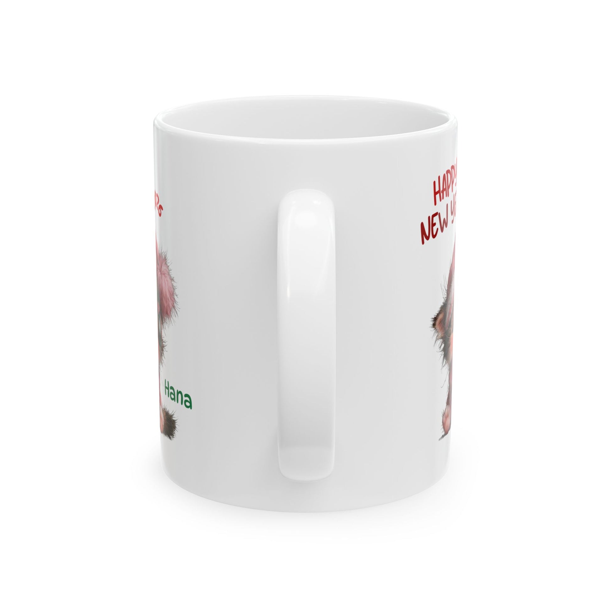 Happy New Year Kitty Ceramic Mug — Personalized Cat Coffee Cup (11oz/15oz)