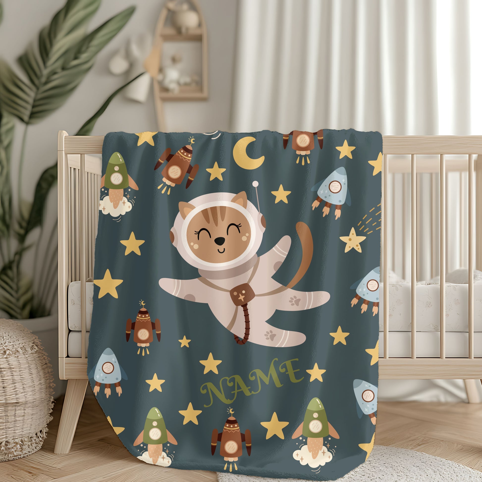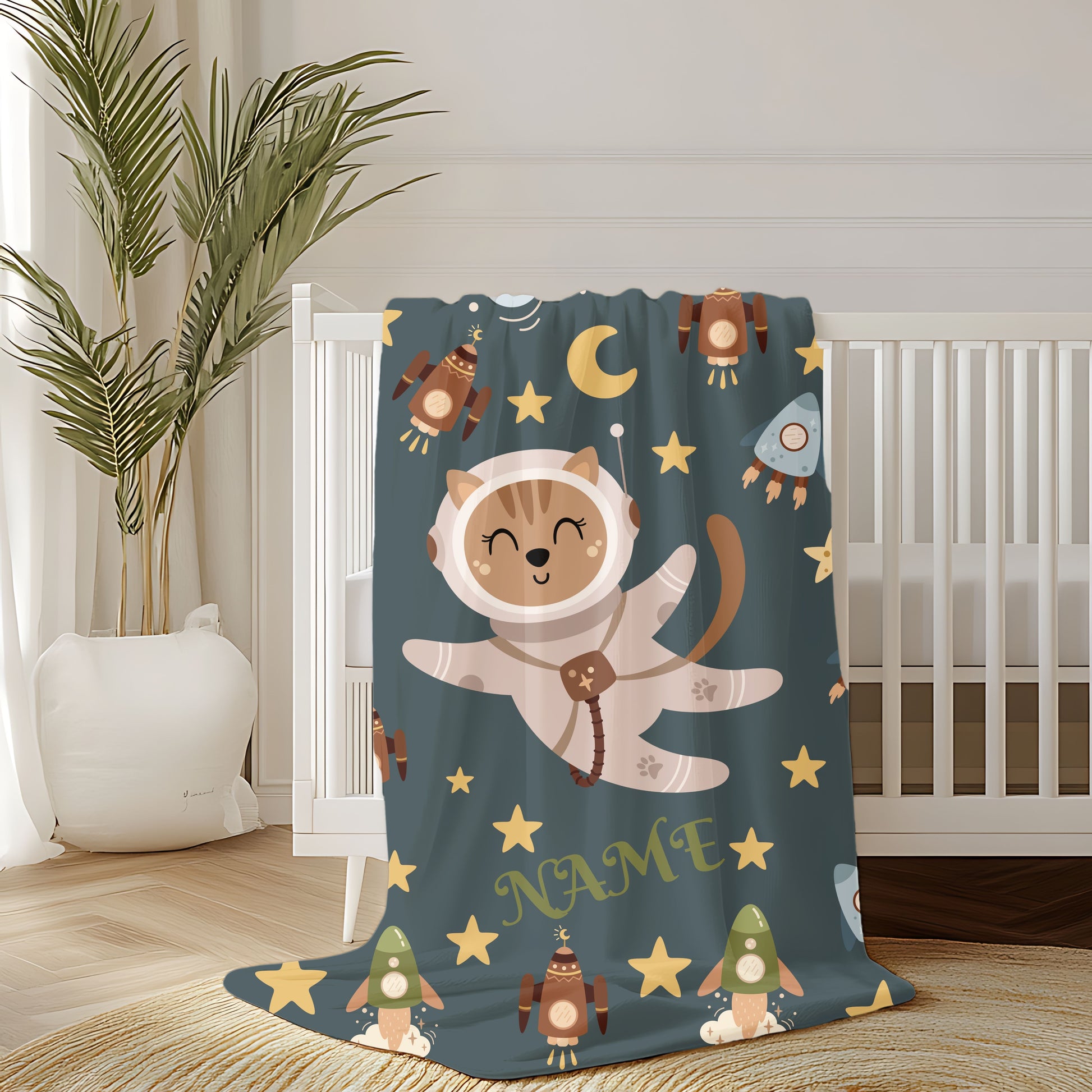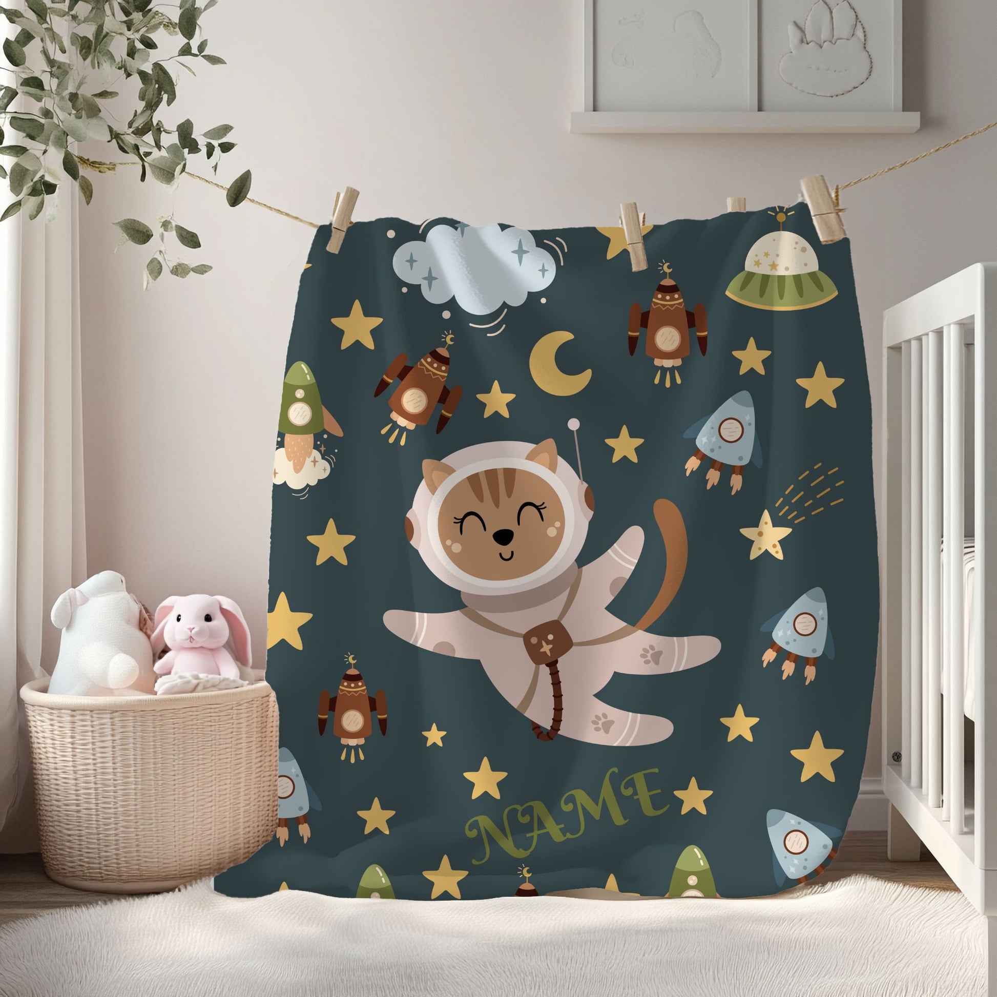 Kids Space Adventure Velveteen Plush Blanket, Nursery Decor, Cute Animals, Gifts for Toddler, Baby Shower, Cozy Throw