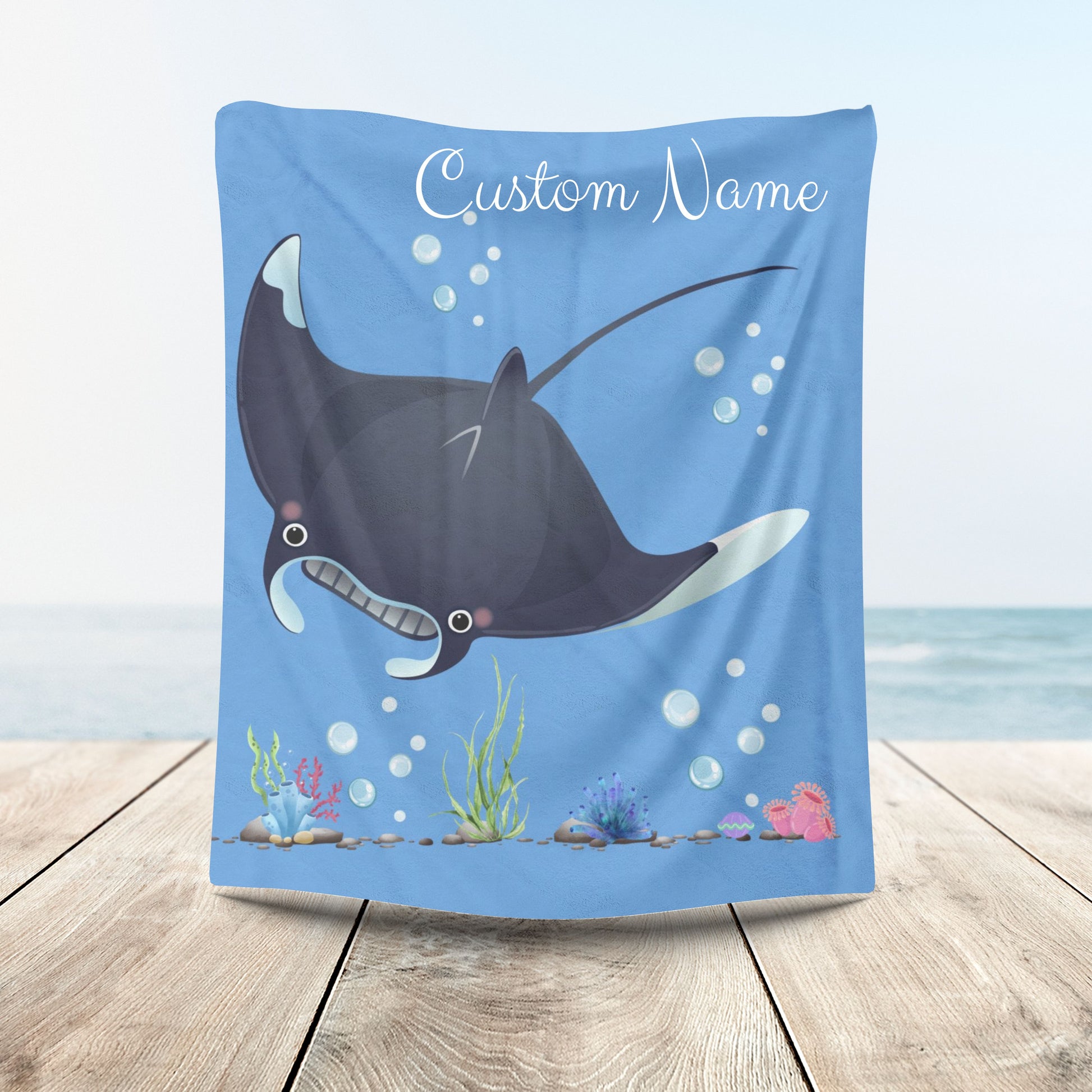 Manta ray with bubbles and coral reef Velveteen Plush Blanket