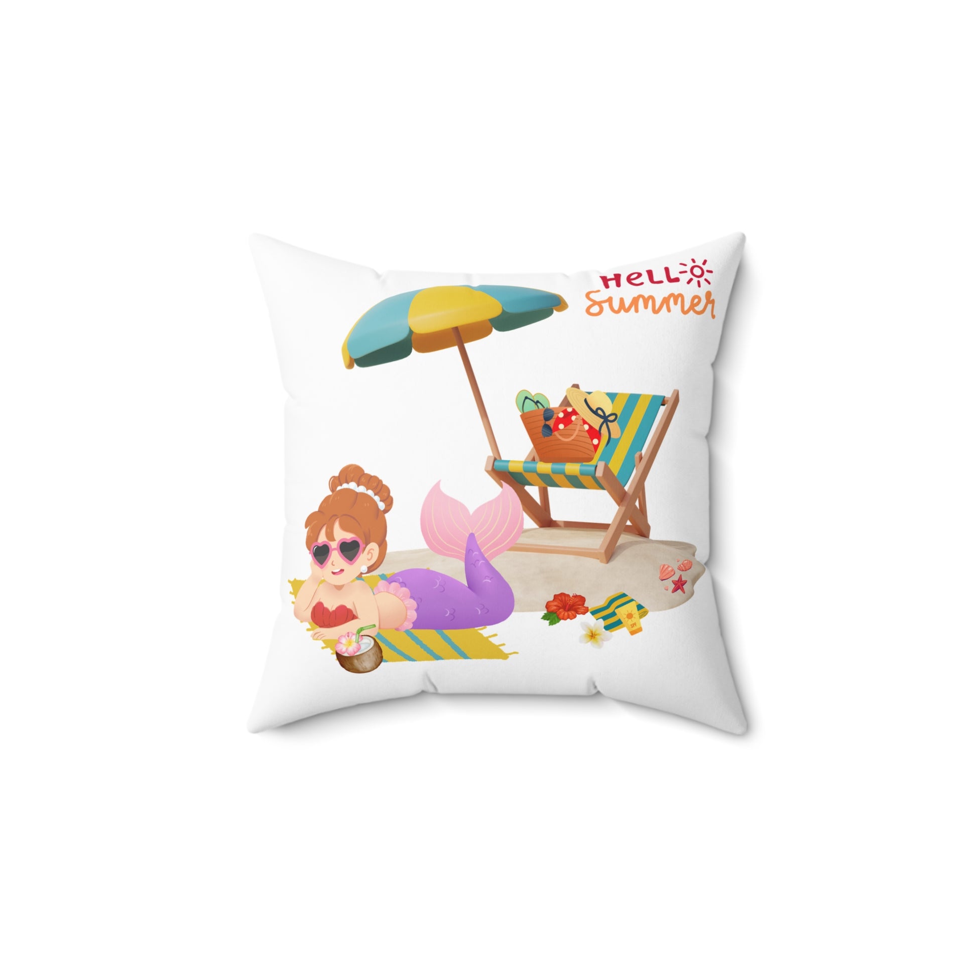 Mermaid lounging on a beach towel Spun Polyester Square Pillow