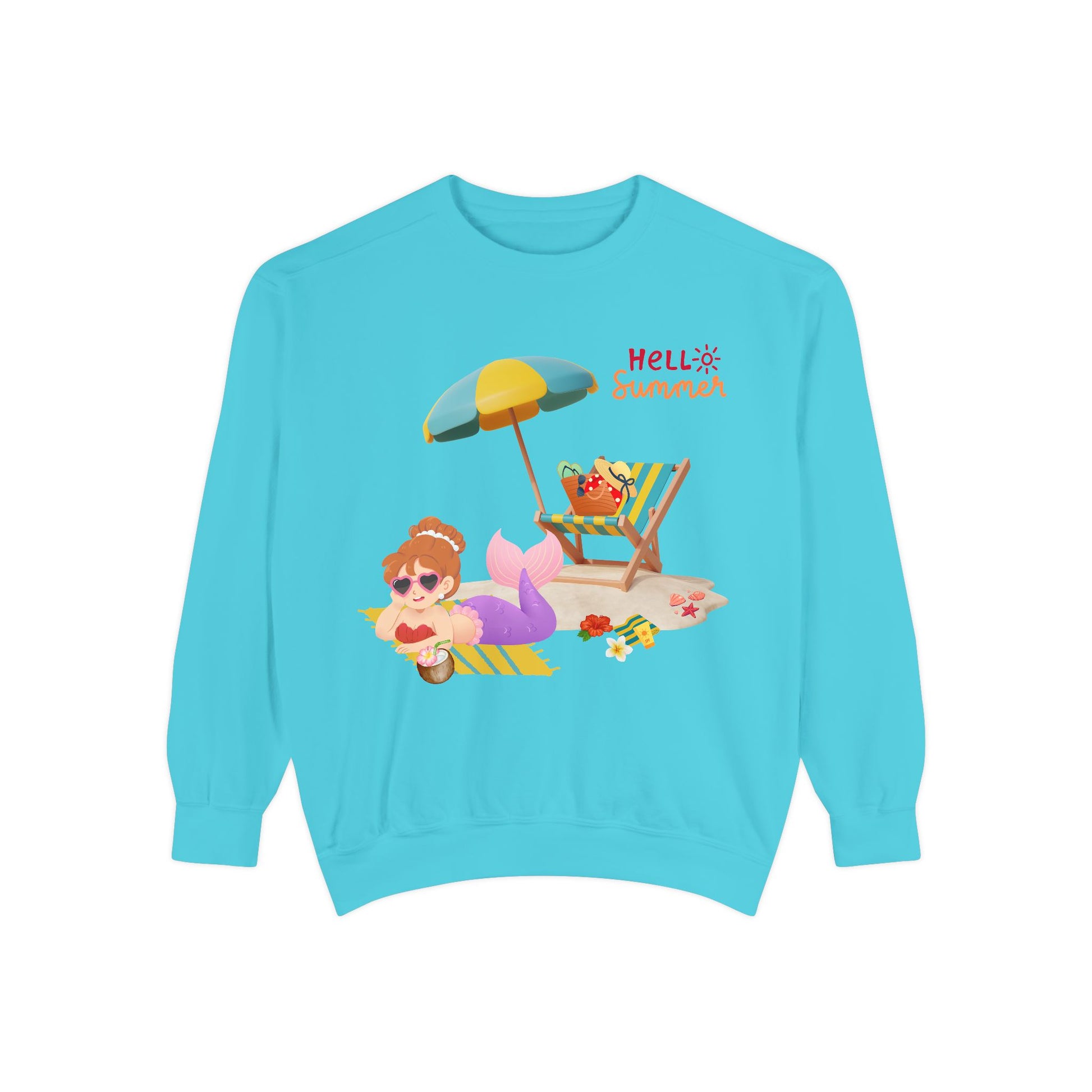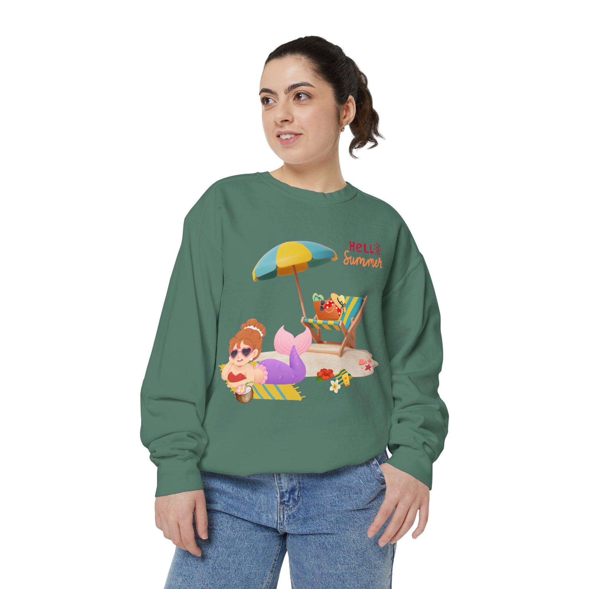 Mermaid lounging on a beach towel Unisex Garment-Dyed Sweatshirt