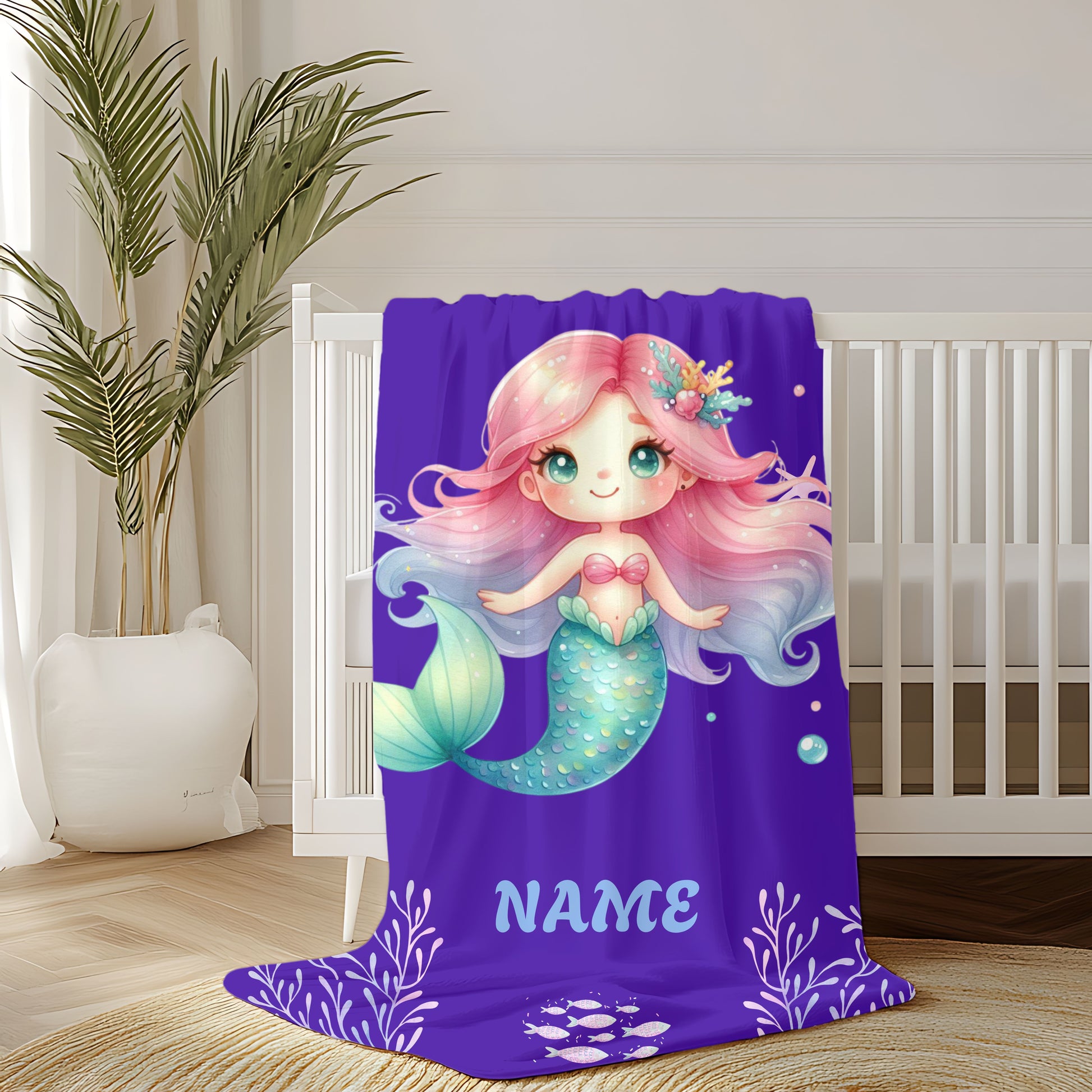 Mermaid Plush Blanket - Personalized Cozy Throw | Soft Fleece Blanket | Kid's Room Decor | Gift for Birthday, Baby Shower, Christmas