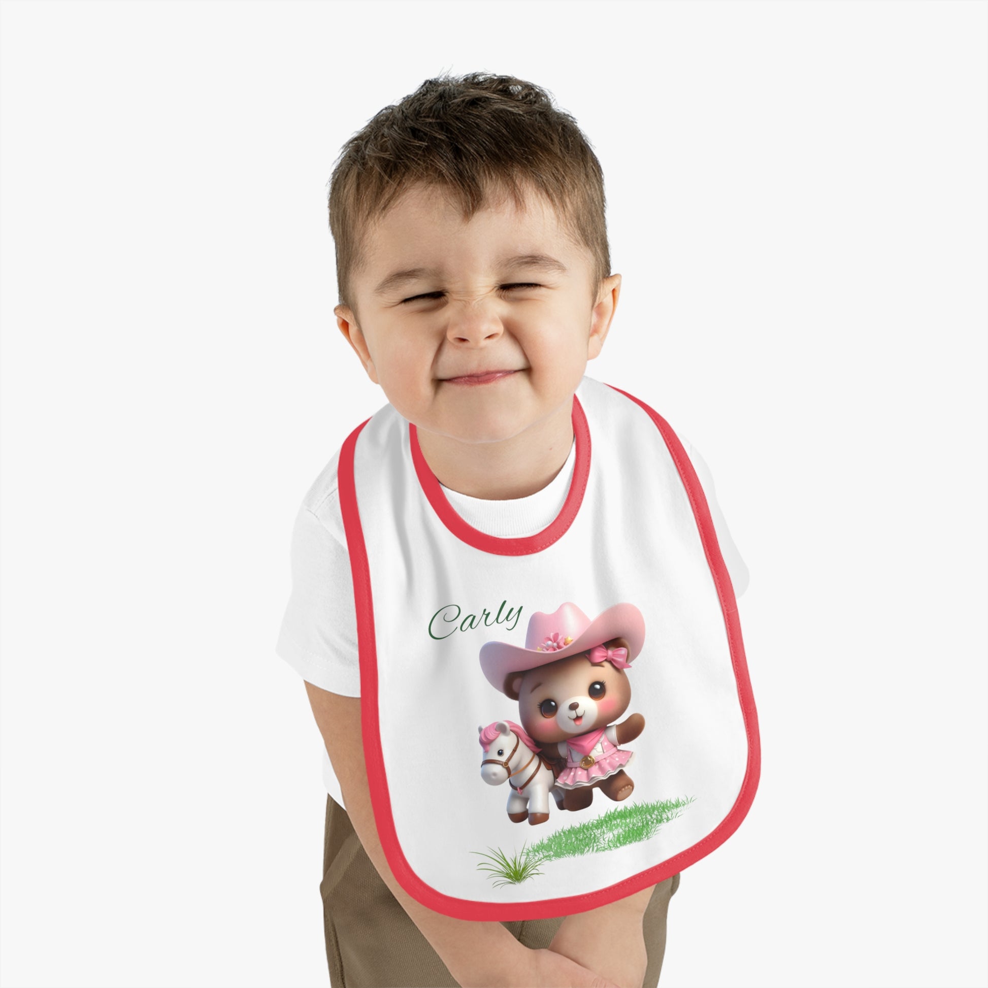 Personalized Baby Bib – Pink Cowgirl Bear Design (Name Customizable)