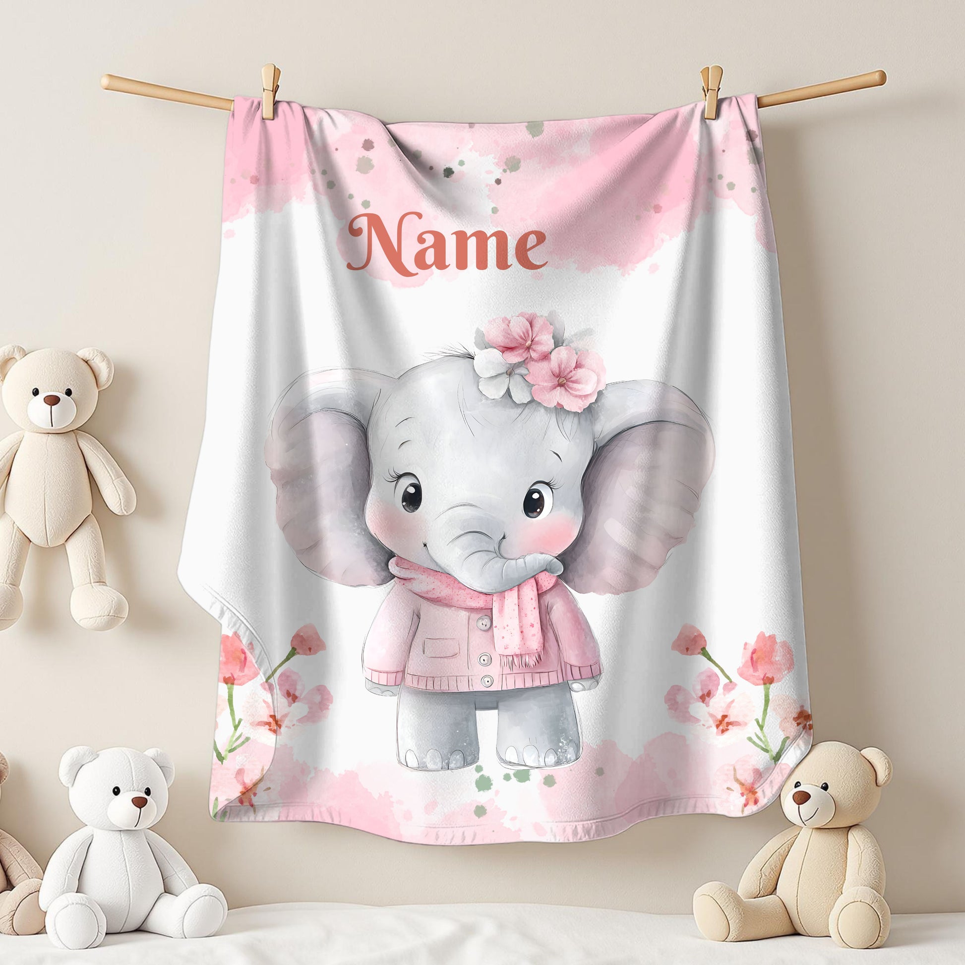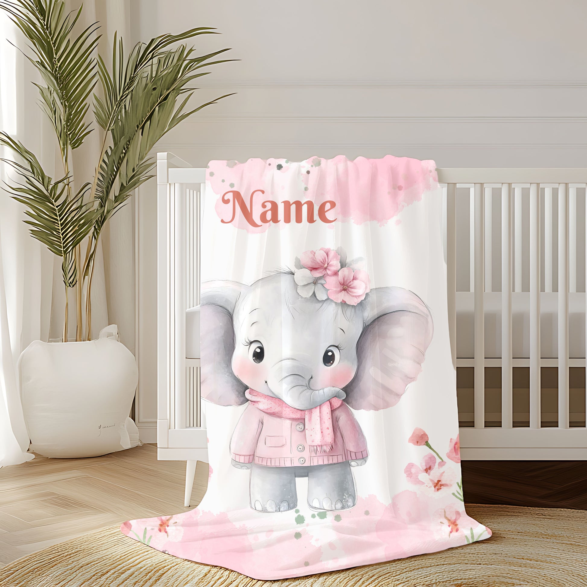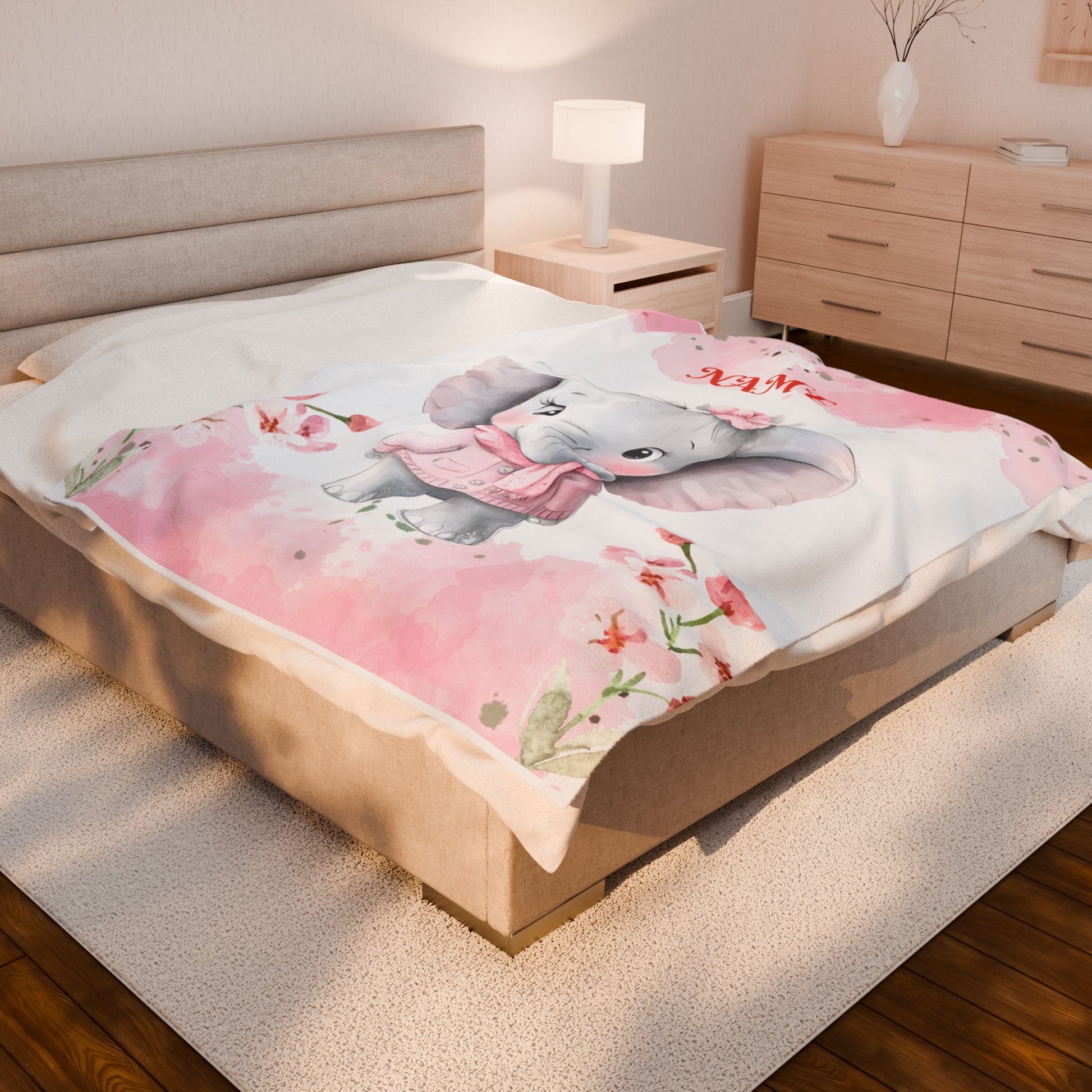 Personalized Baby Elephant Velveteen Plush Blanket, Soft Cuddle Throw, Nursery Decor, Baby Shower Gift, Cozy Blanket for Kids