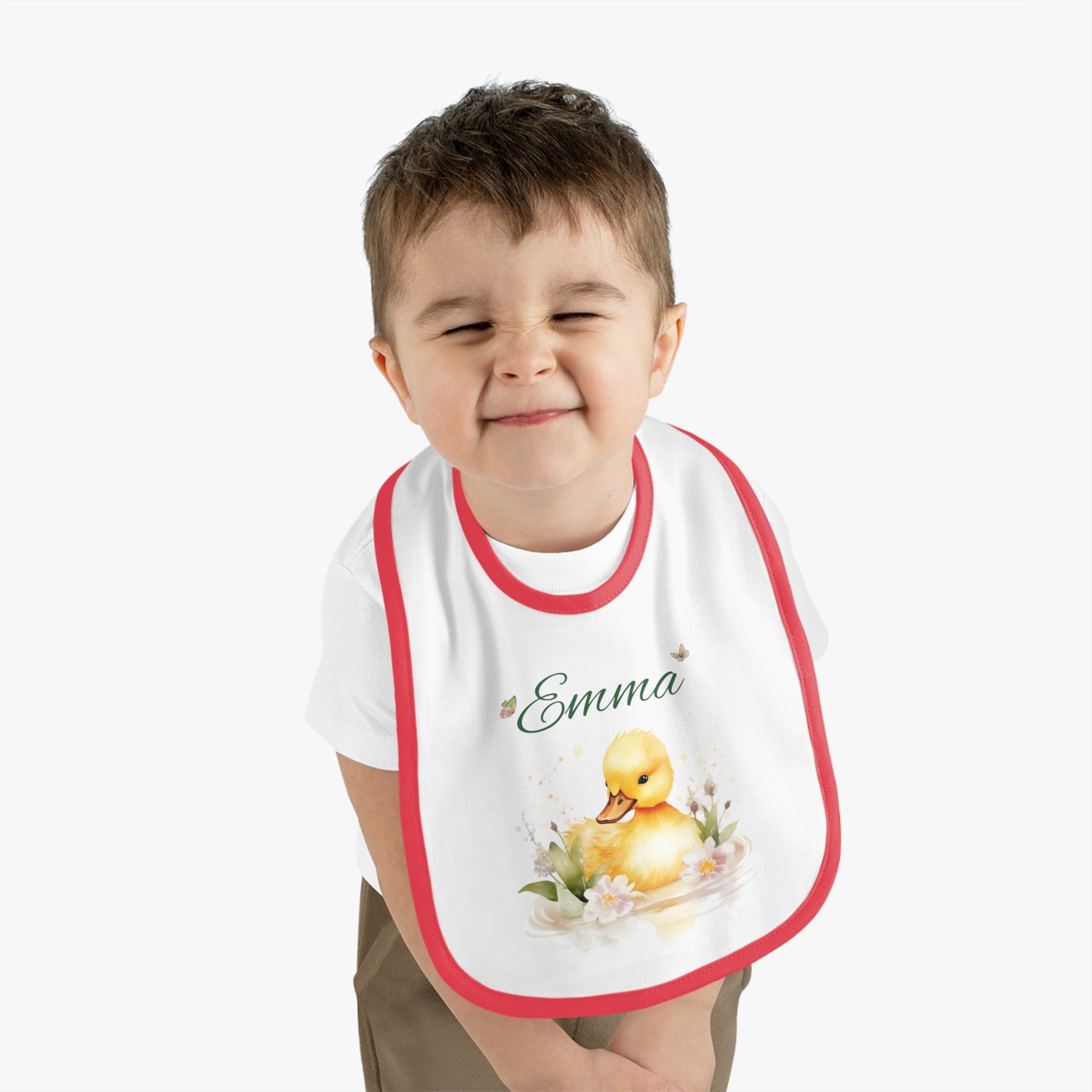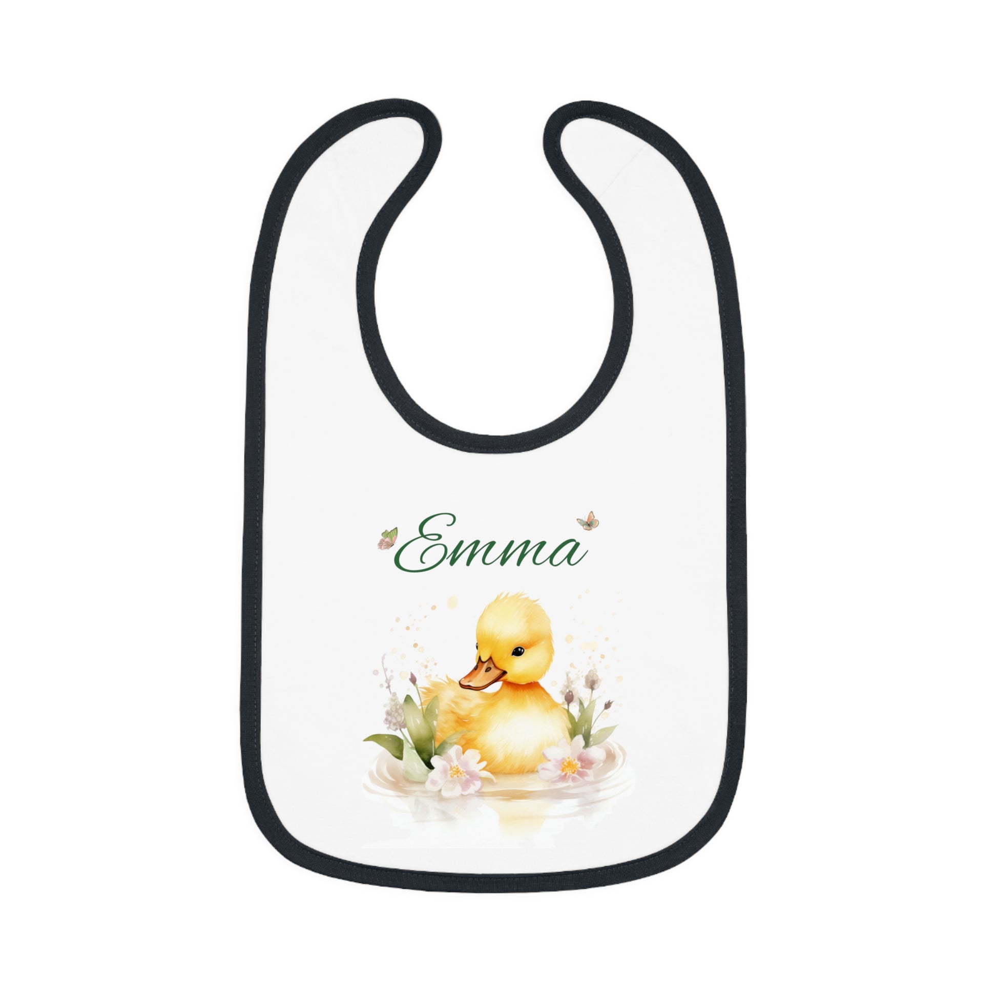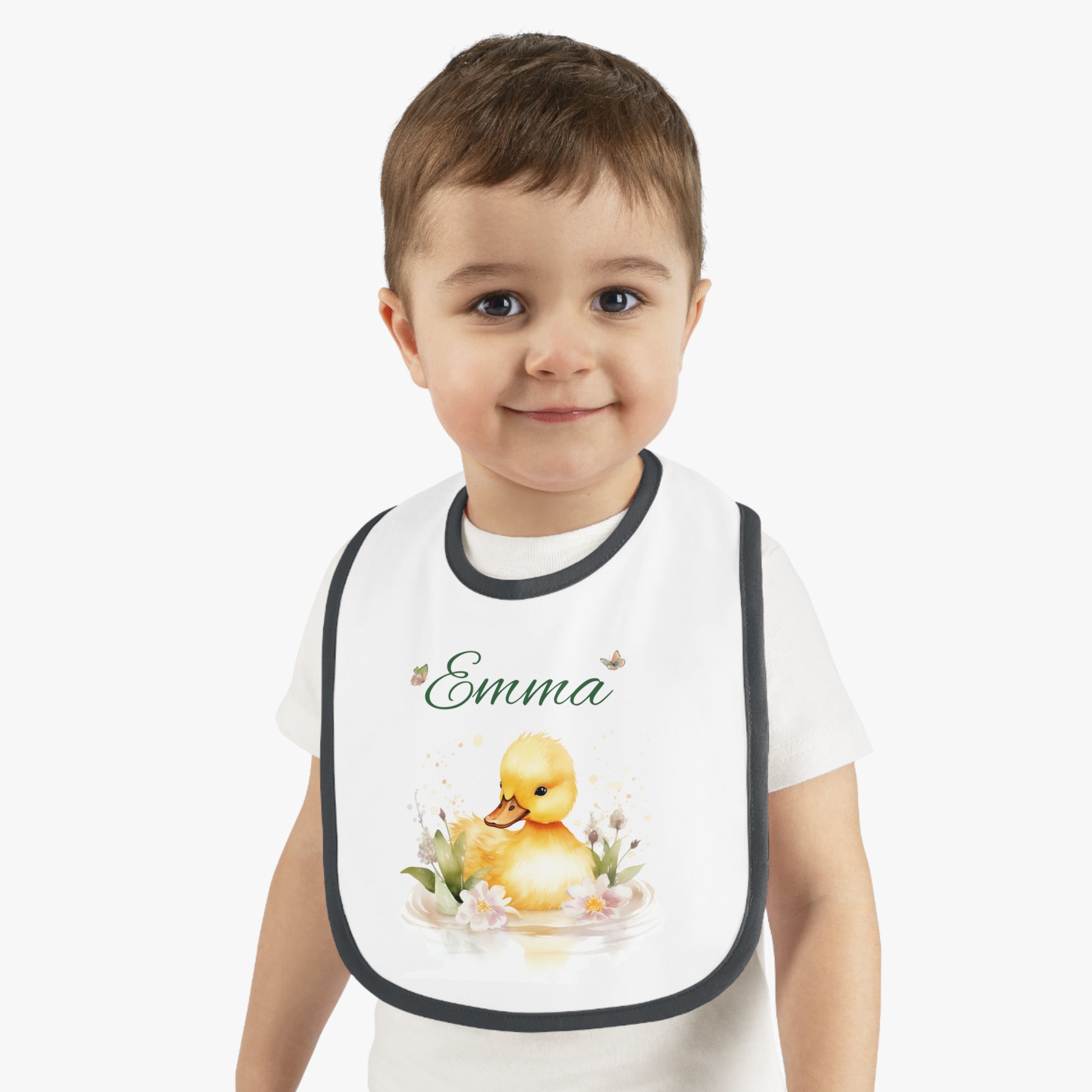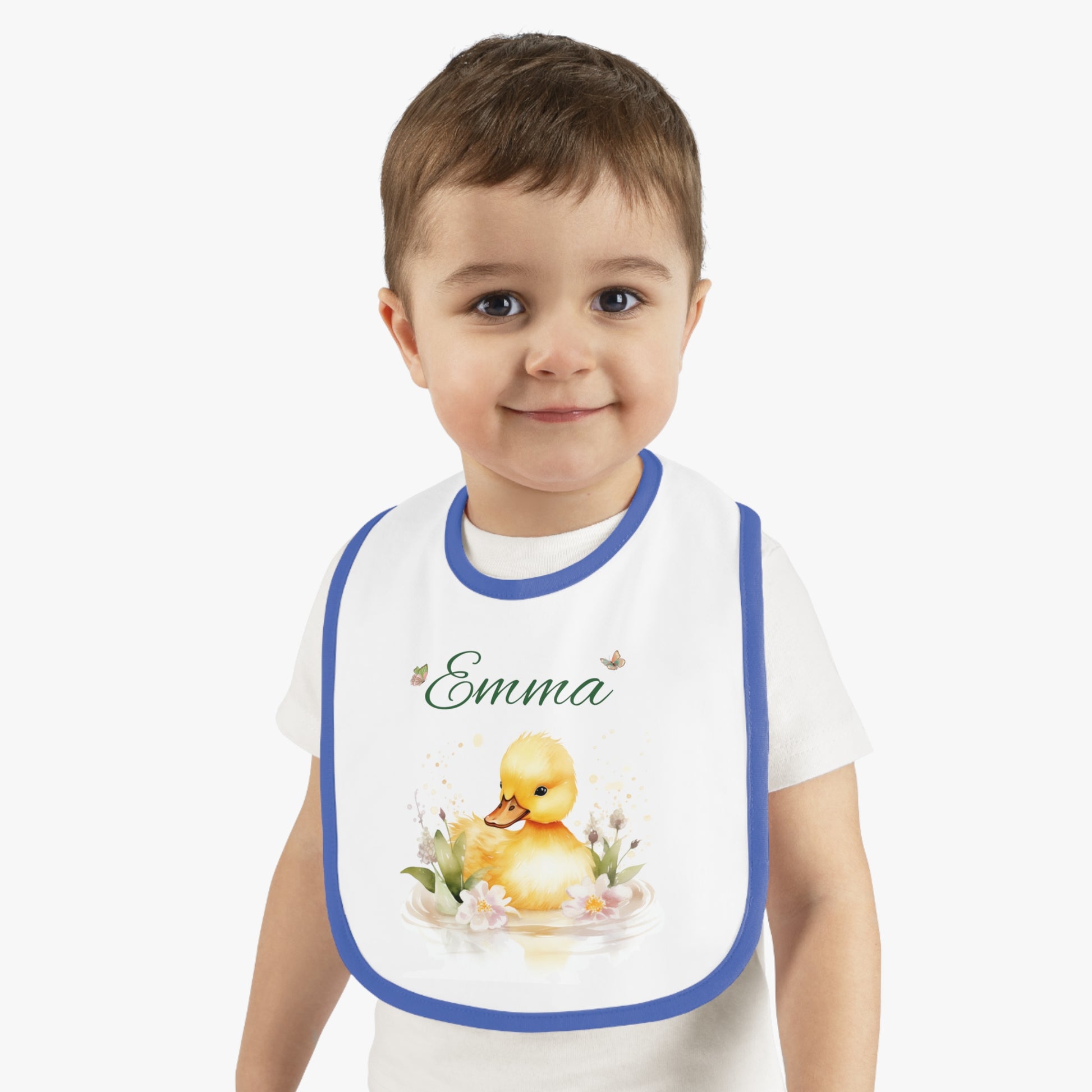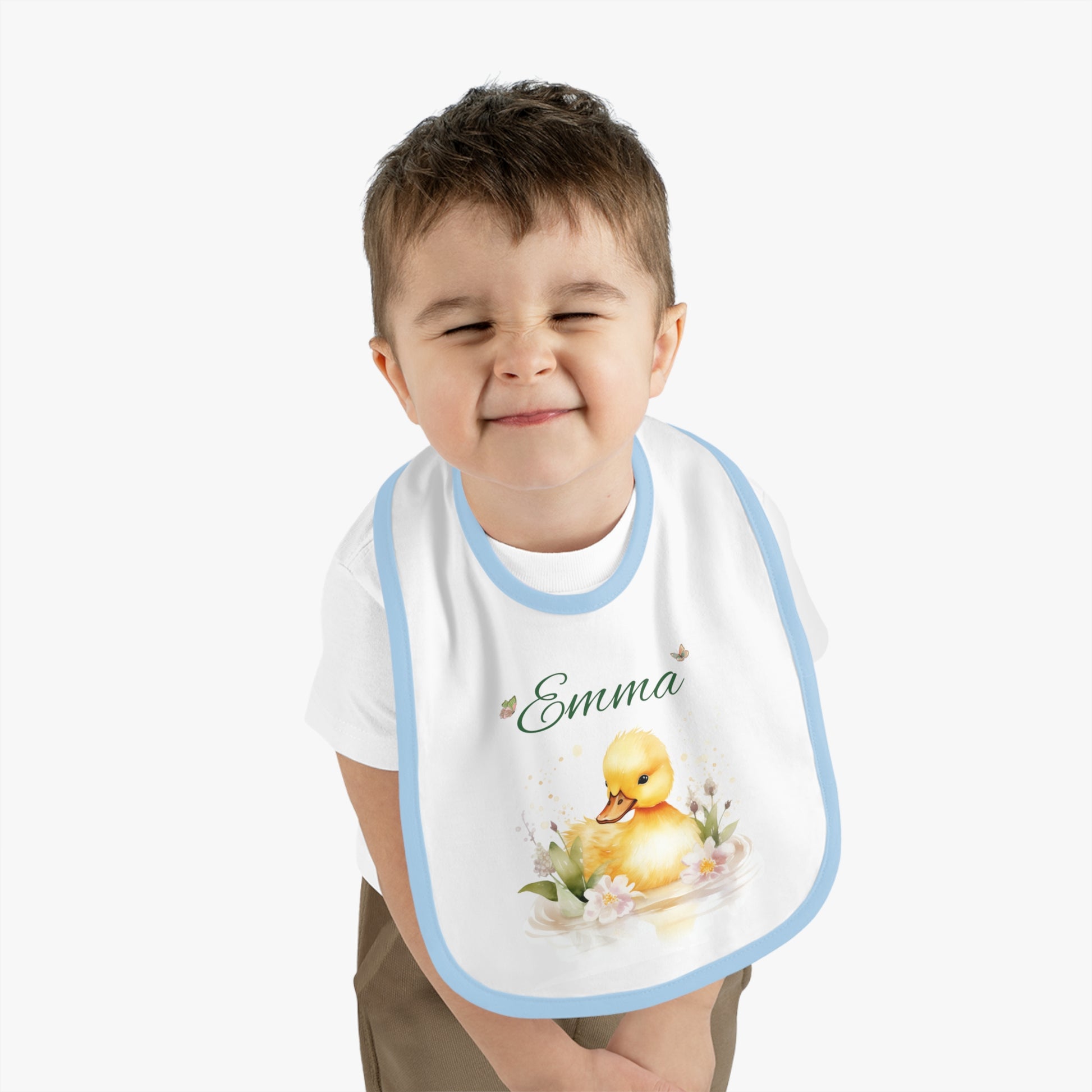 Personalized Duckling Baby Bib — Custom Name Infant Contrast Trim Feeding Bib