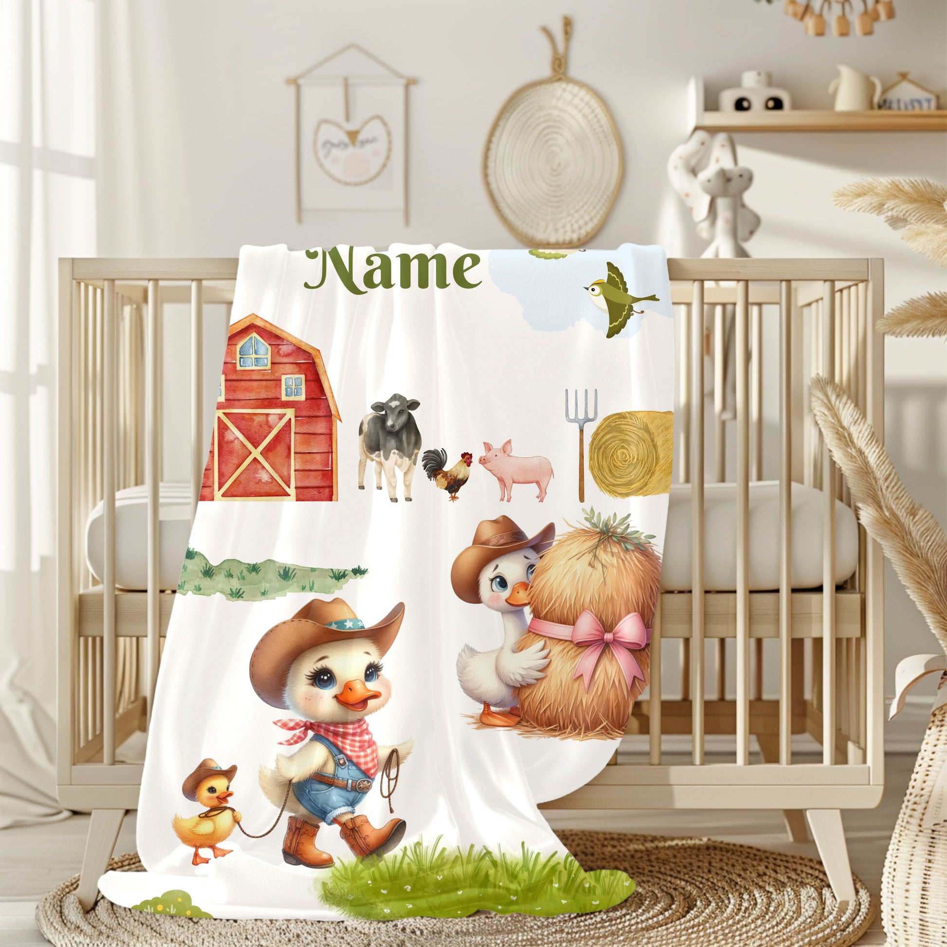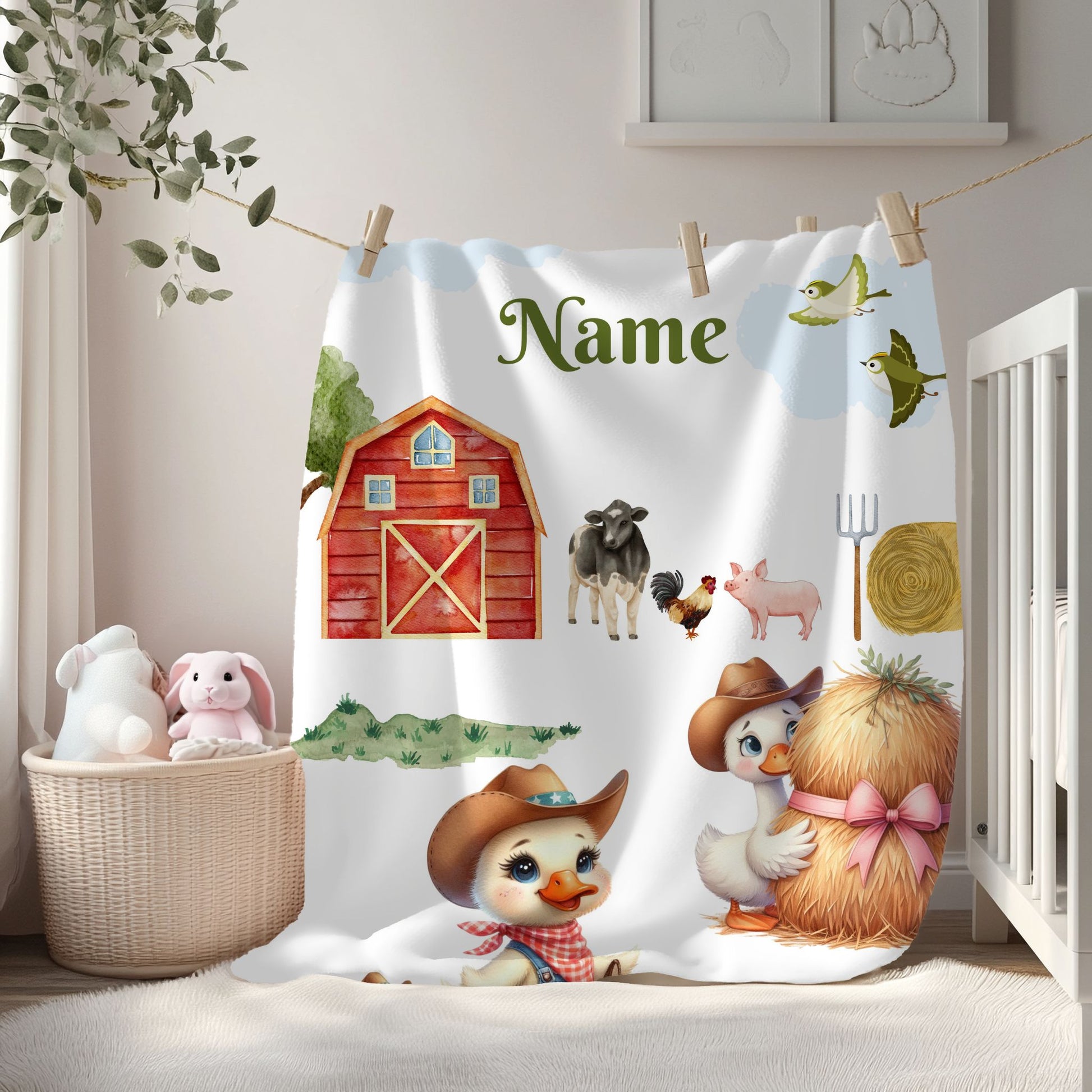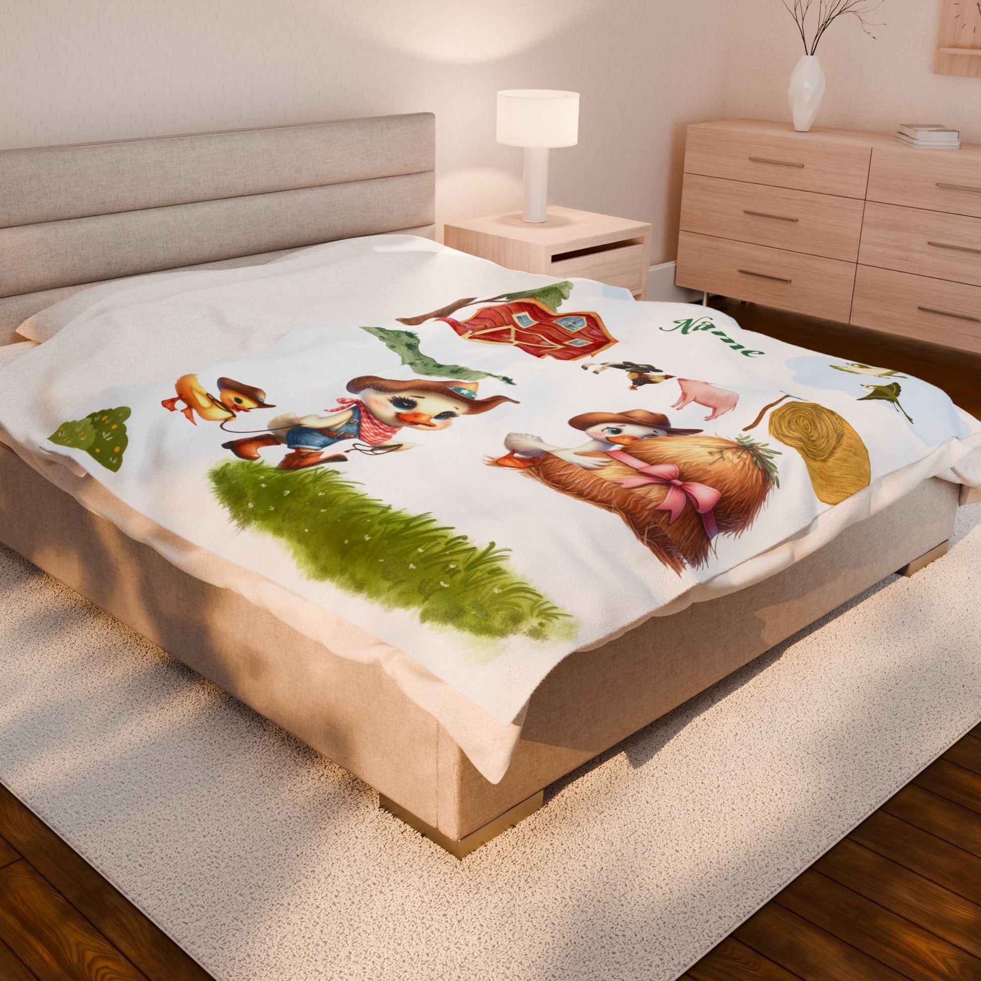 Personalized Farm Animal Velveteen Blanket, Cute Nursery Decor, Baby Shower Gift, Cozy Plush Throw, Customized Name Comfort