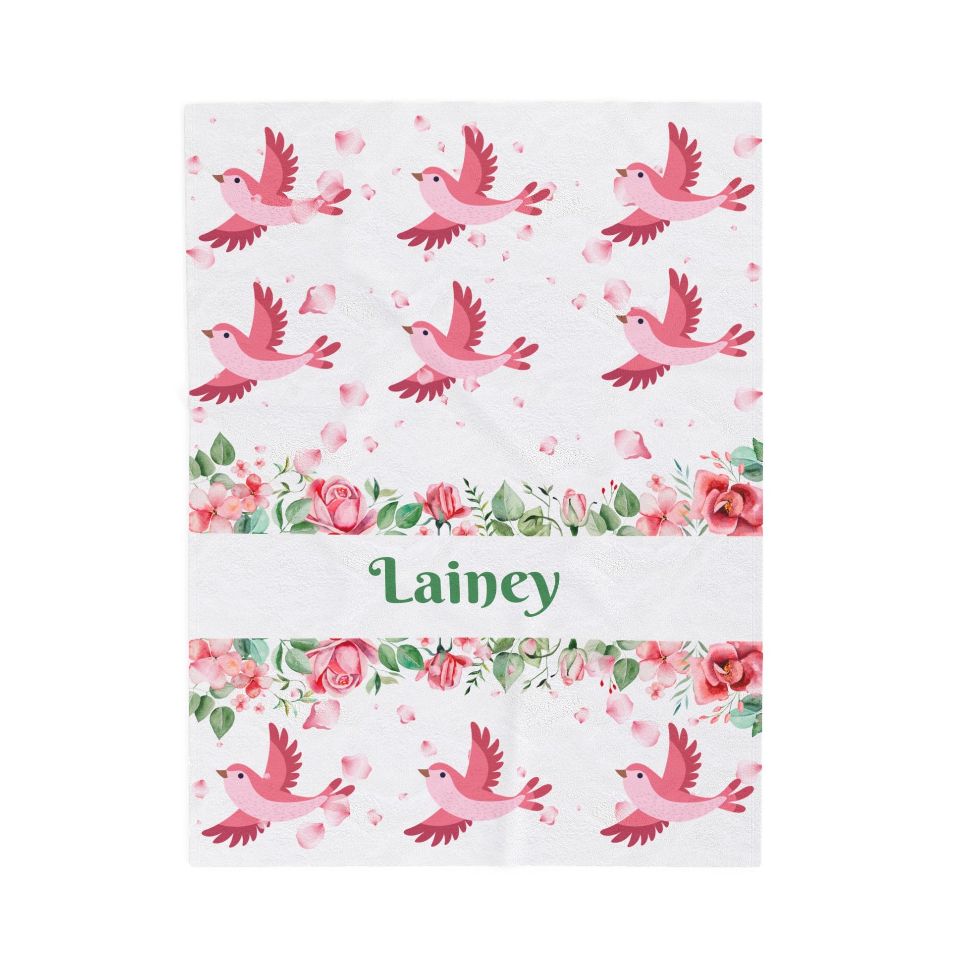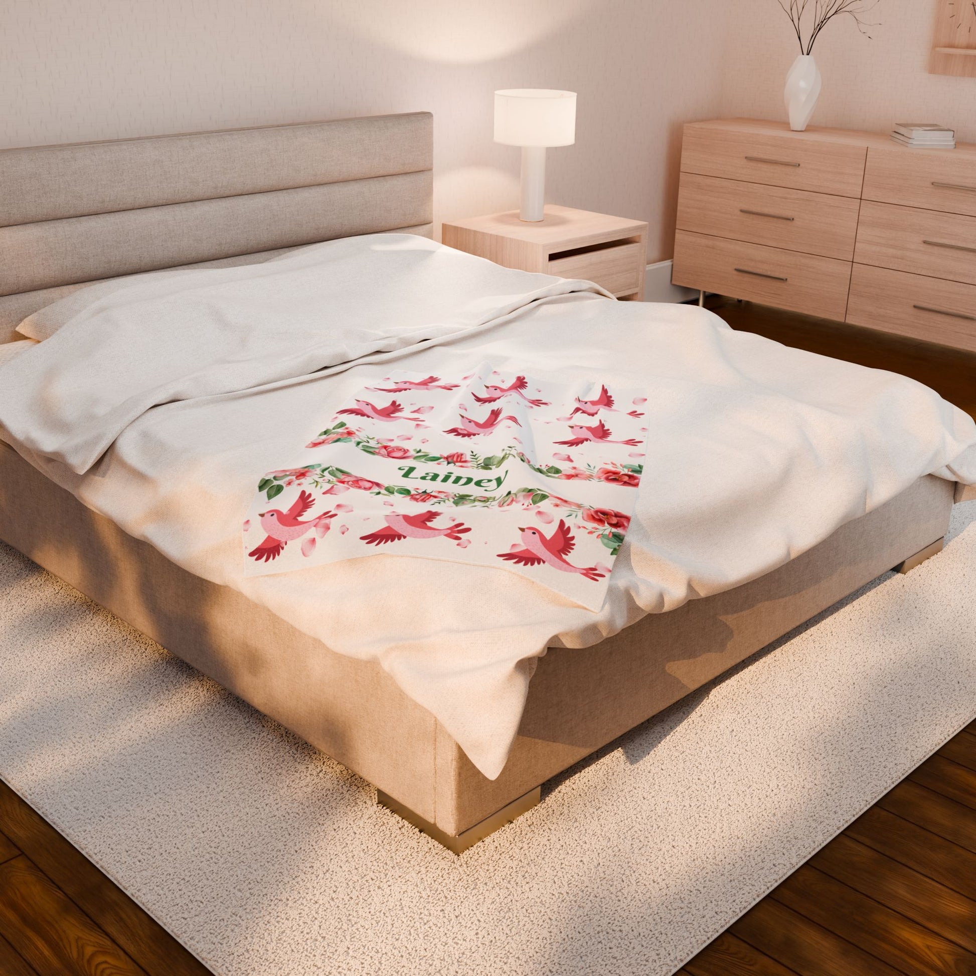 Personalized Floral Bird Plush Blanket, Cozy Blanket, Gift for Her, Nursery Decor, Baby Shower, Kids Room, Warm Throw