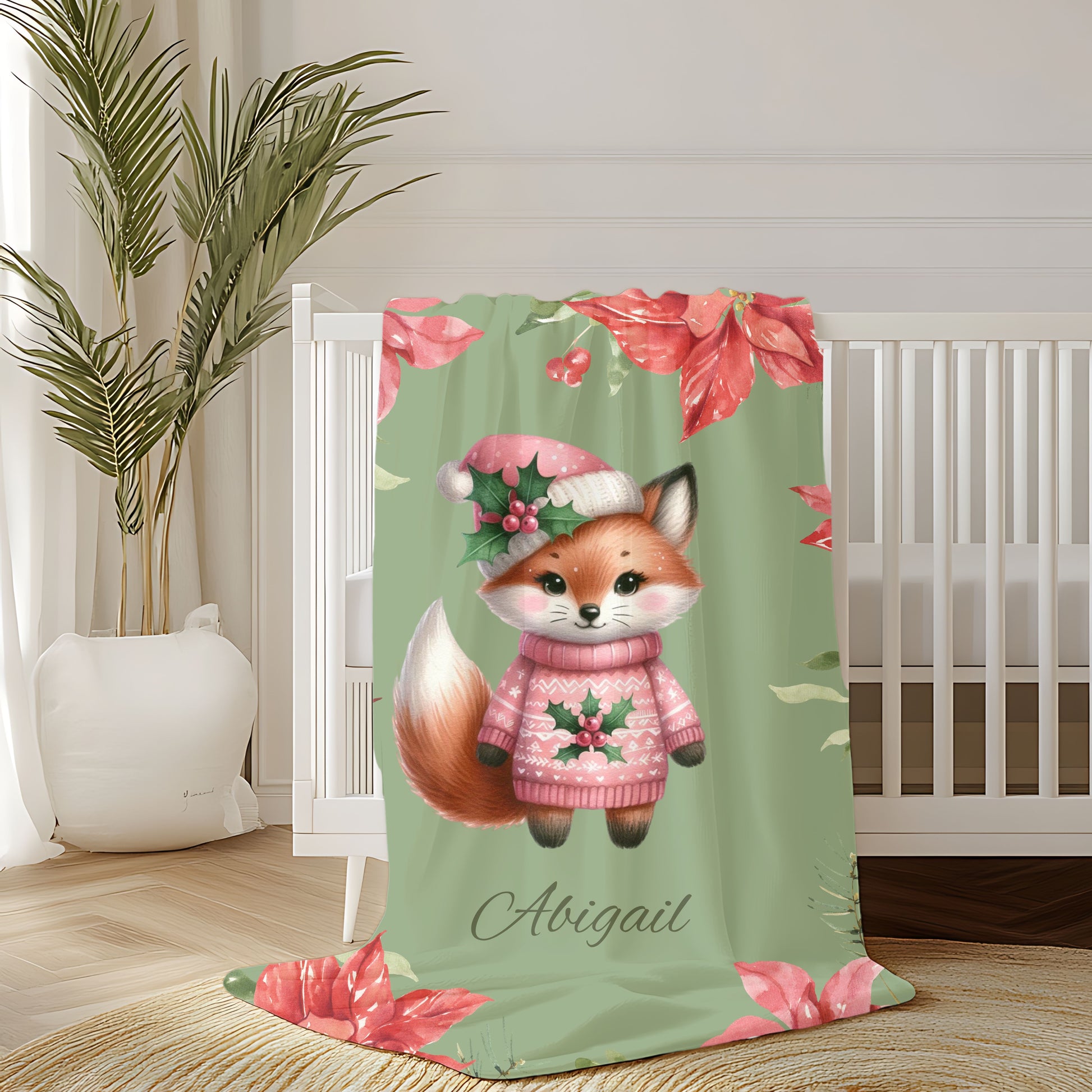Personalized Fox Christmas Velveteen Plush Blanket, Cozy Holiday Gift, Custom Throw Blanket, Winter Decoration, Cute Pet Blanket
