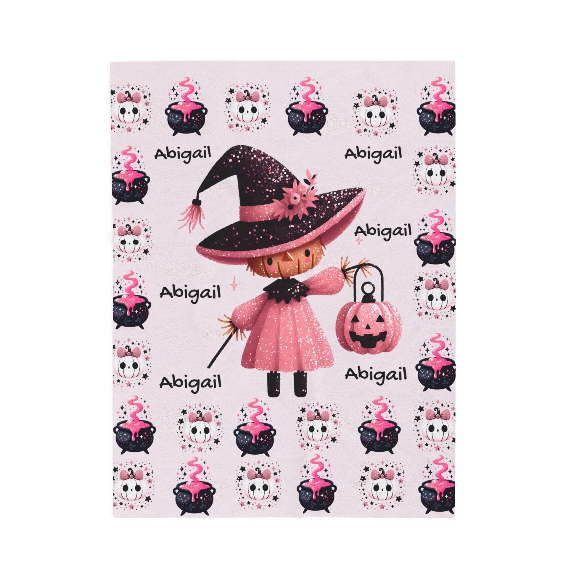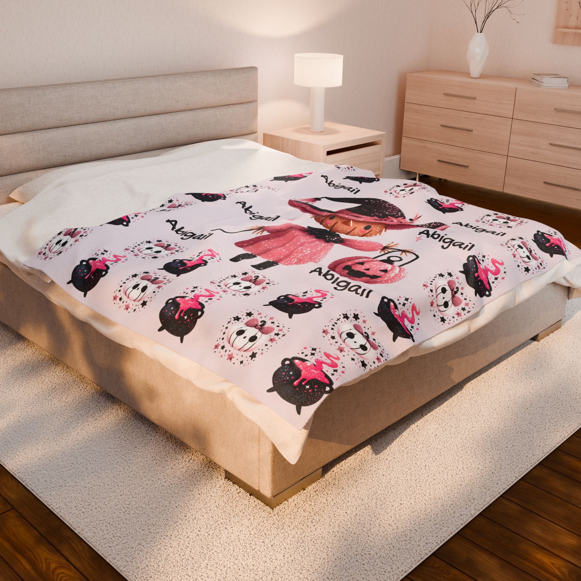 Personalized Halloween Velveteen Plush Blanket, Soft Cozy Throw, Perfect for Kids, Witch Design, Fall Decor, Gift Idea