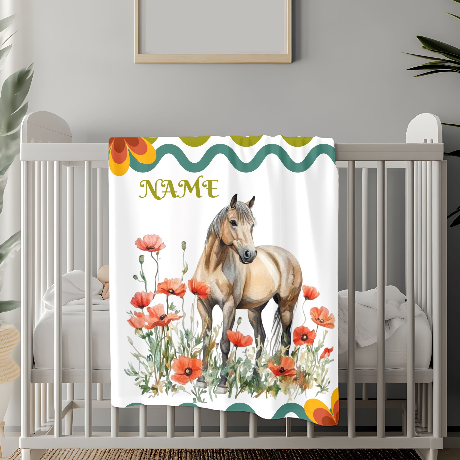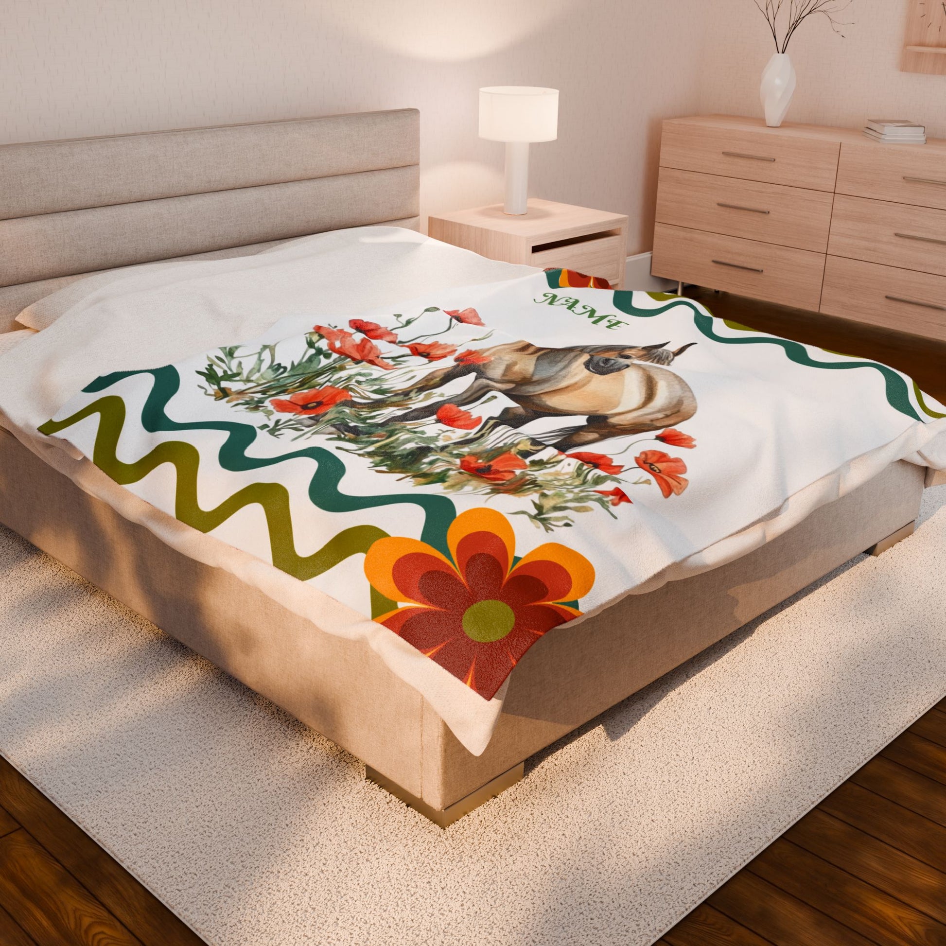 Personalized Horse-Themed Velveteen Plush Blanket, Cozy Throw for Horse Lovers, Warm Gift for Birthdays, Home Decor, Kids' Room