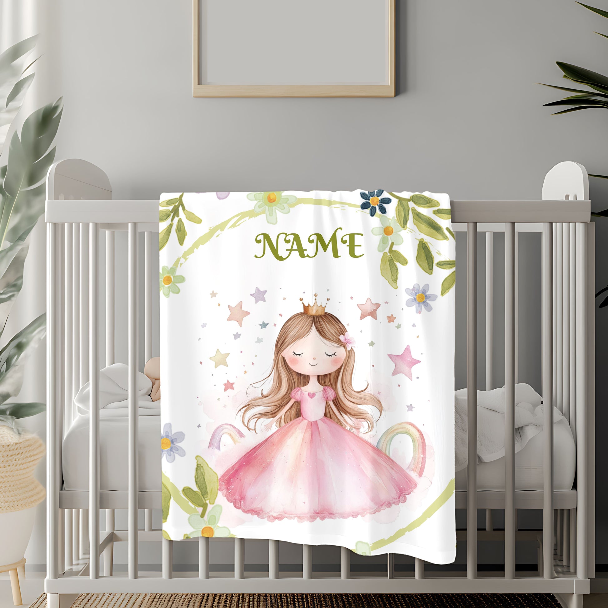 Personalized Princess Velveteen Plush Blanket, Cozy Gift for Kids, Nursery Decor, Birthday, Children's Gift, Custom Name Blanket