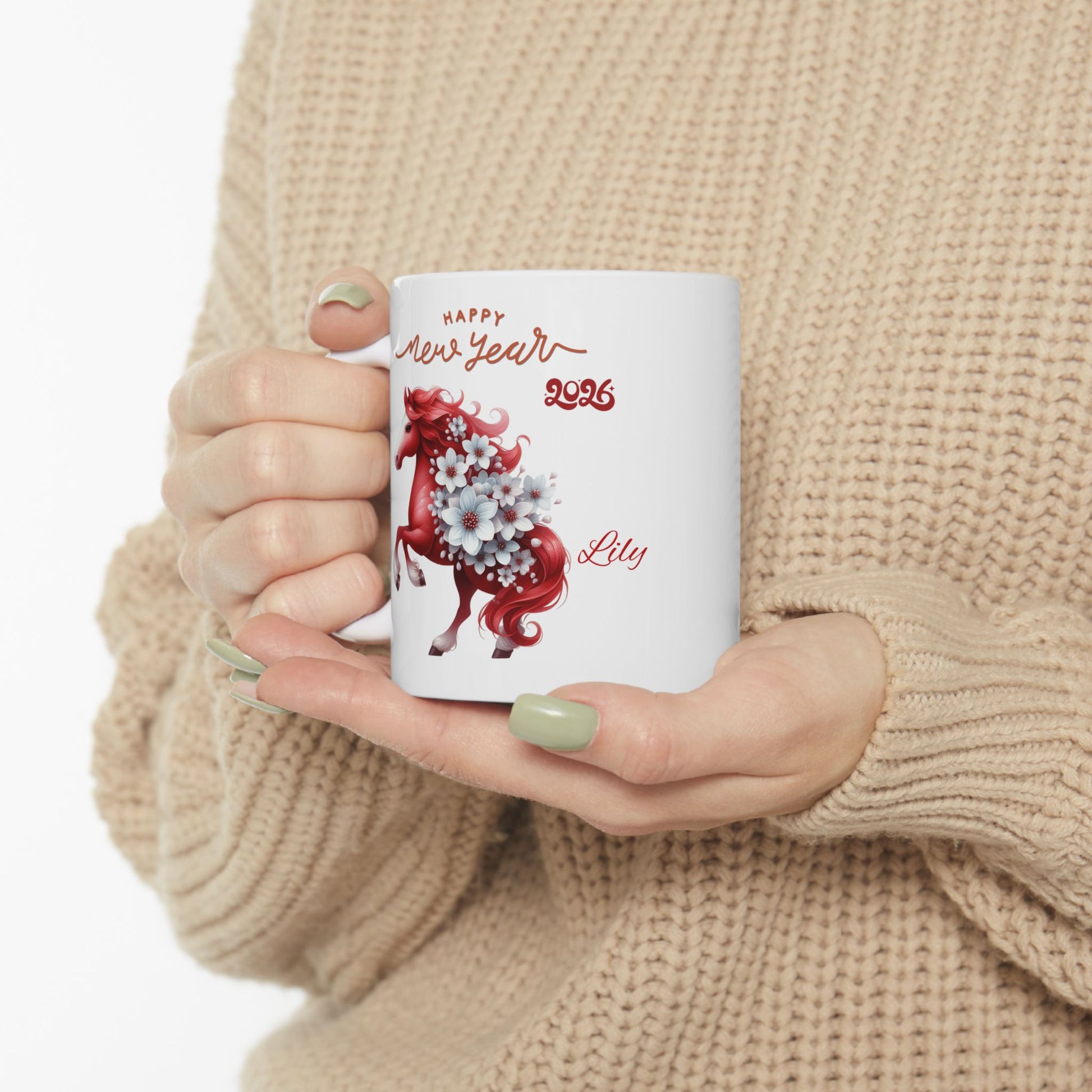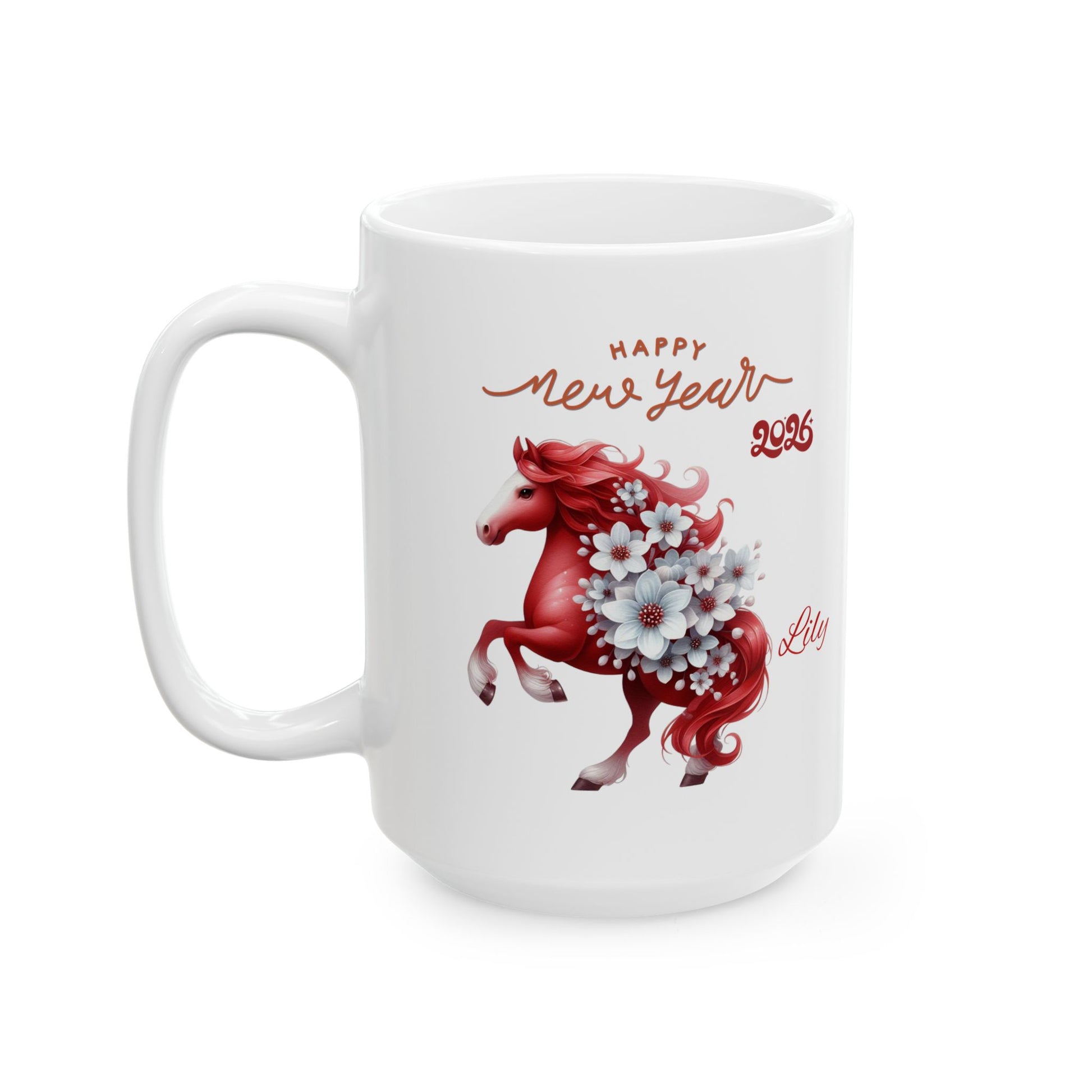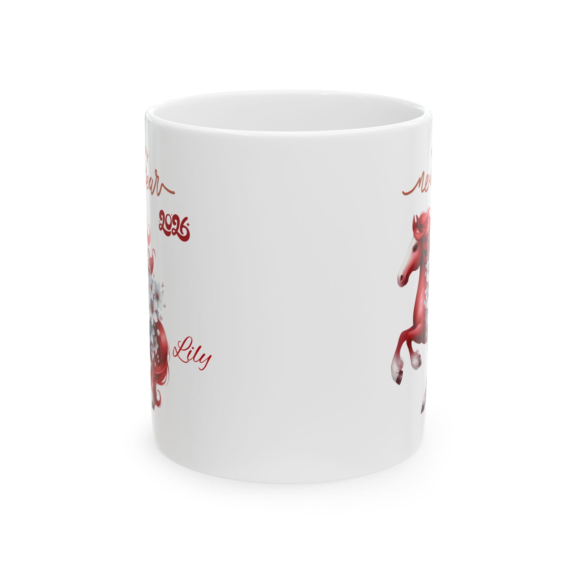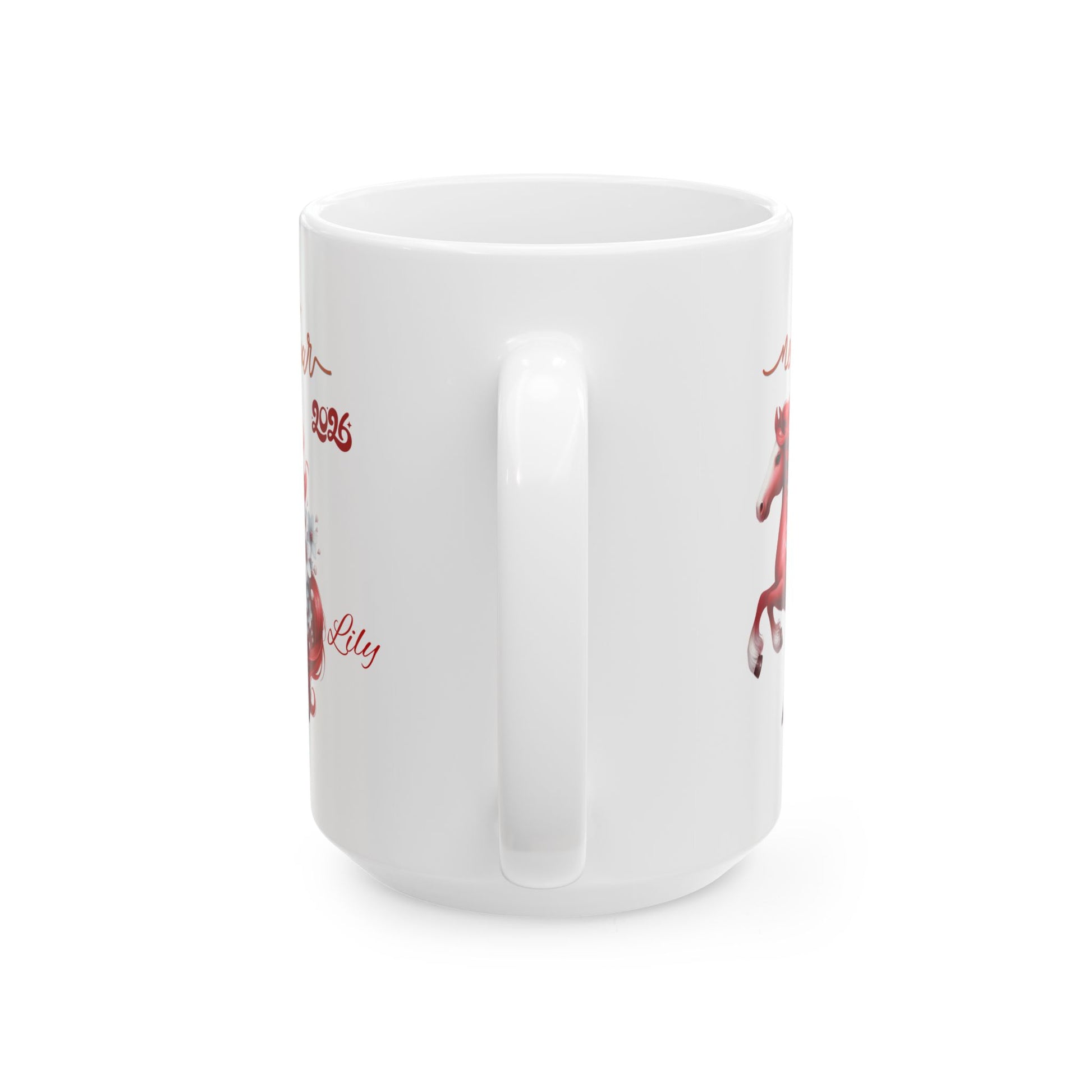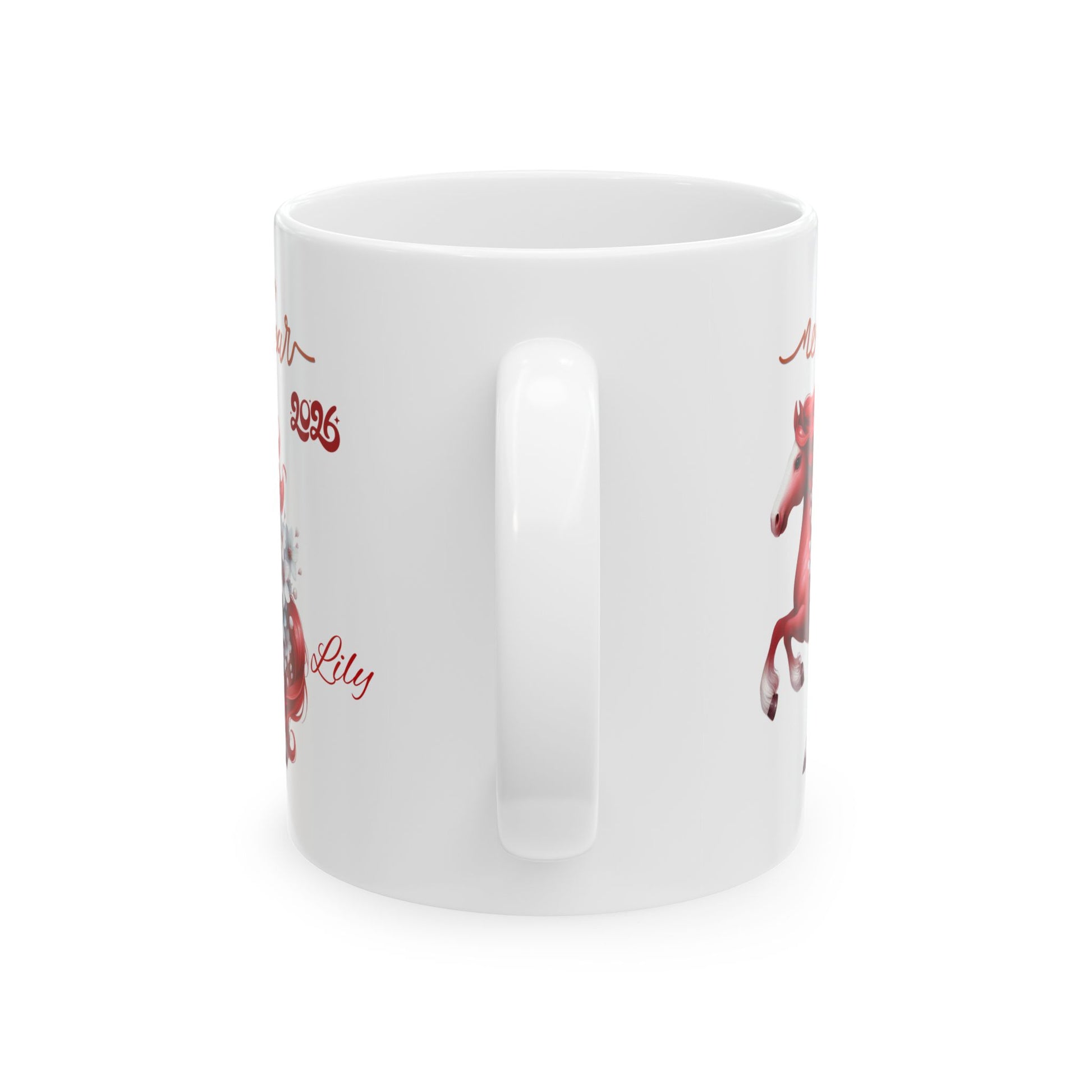 Personalized Red Unicorn Ceramic Mug — Custom Name & Birth Year Coffee Cup (11oz/15oz)