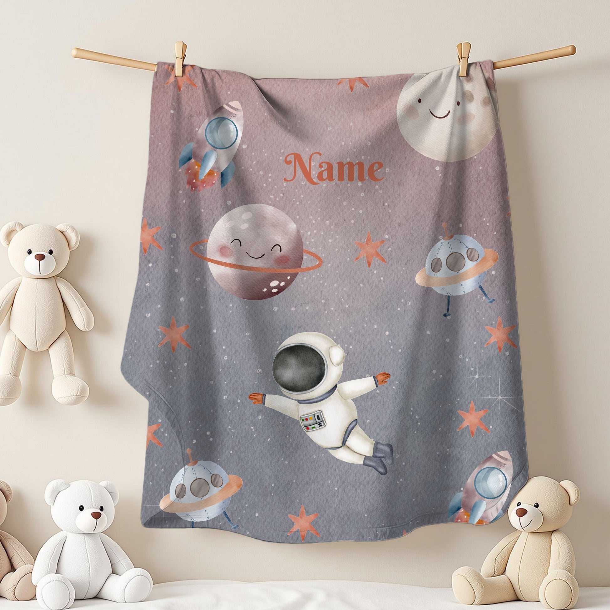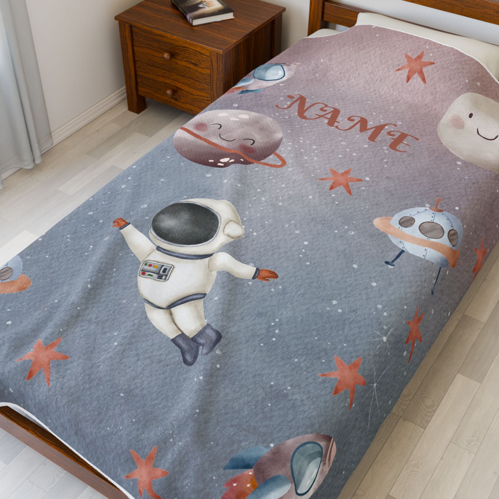 Personalized Space-Themed Velveteen Plush Blanket, Cozy Kids Blanket, Astronaut Decor, Custom Baby Shower Gift, Soft Throw Blanket