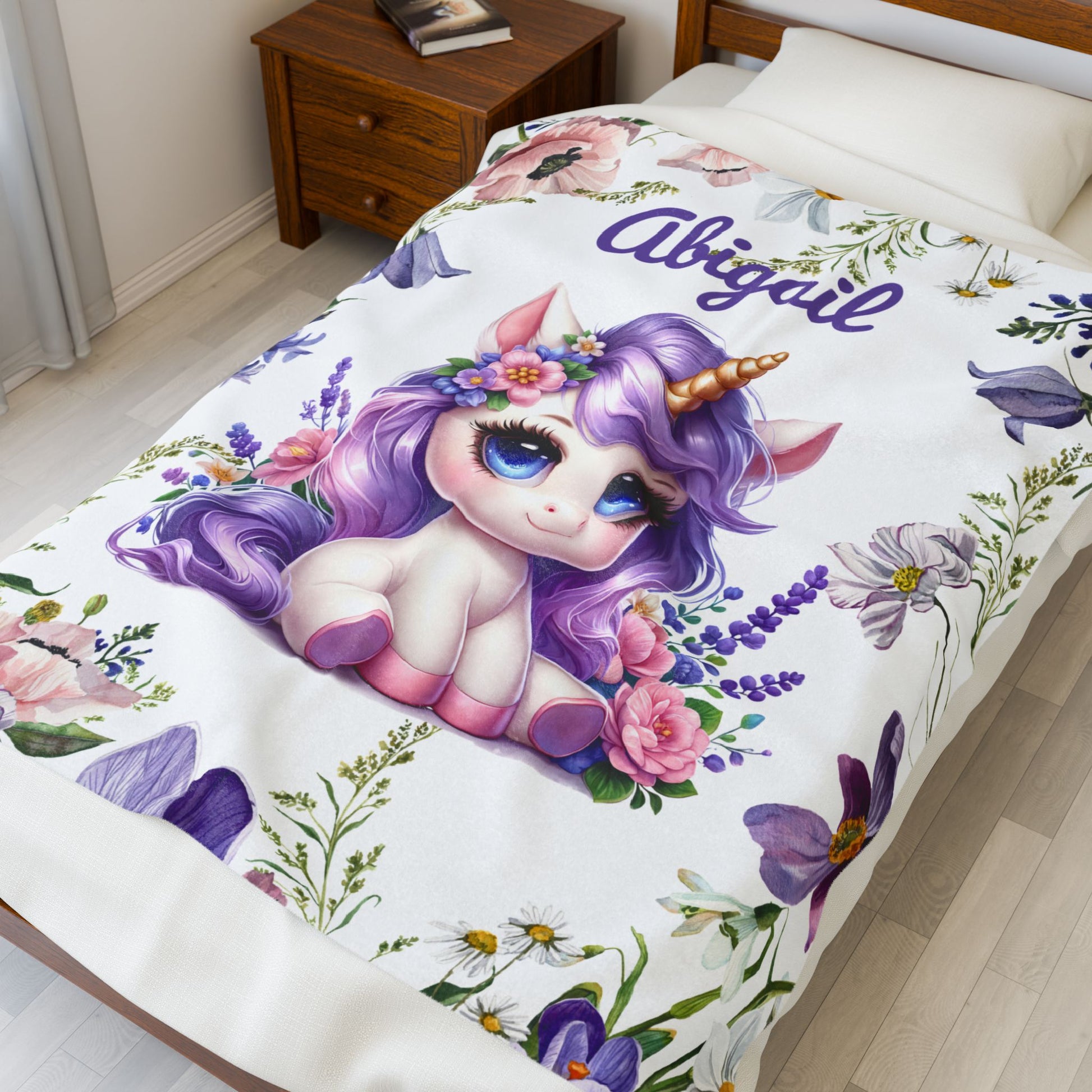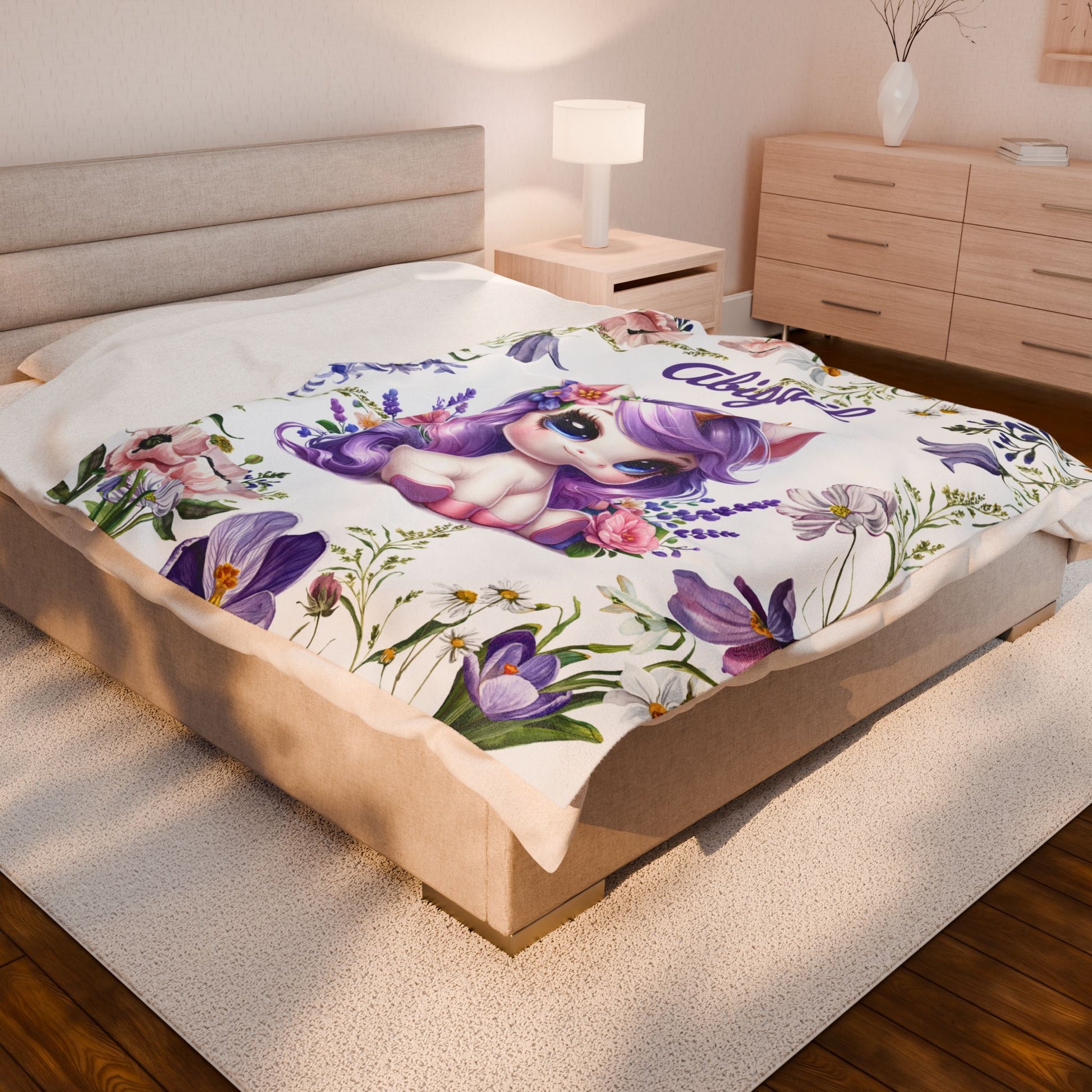 Personalized Unicorn Plush Blanket, Cozy Child's Blanket, Gift for Kids, Floral Throw, Child's Room Decor, Baby Shower Gift