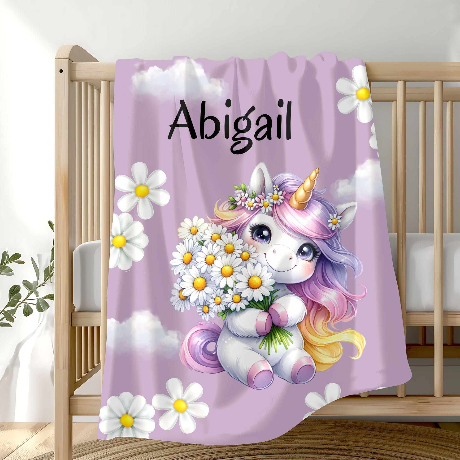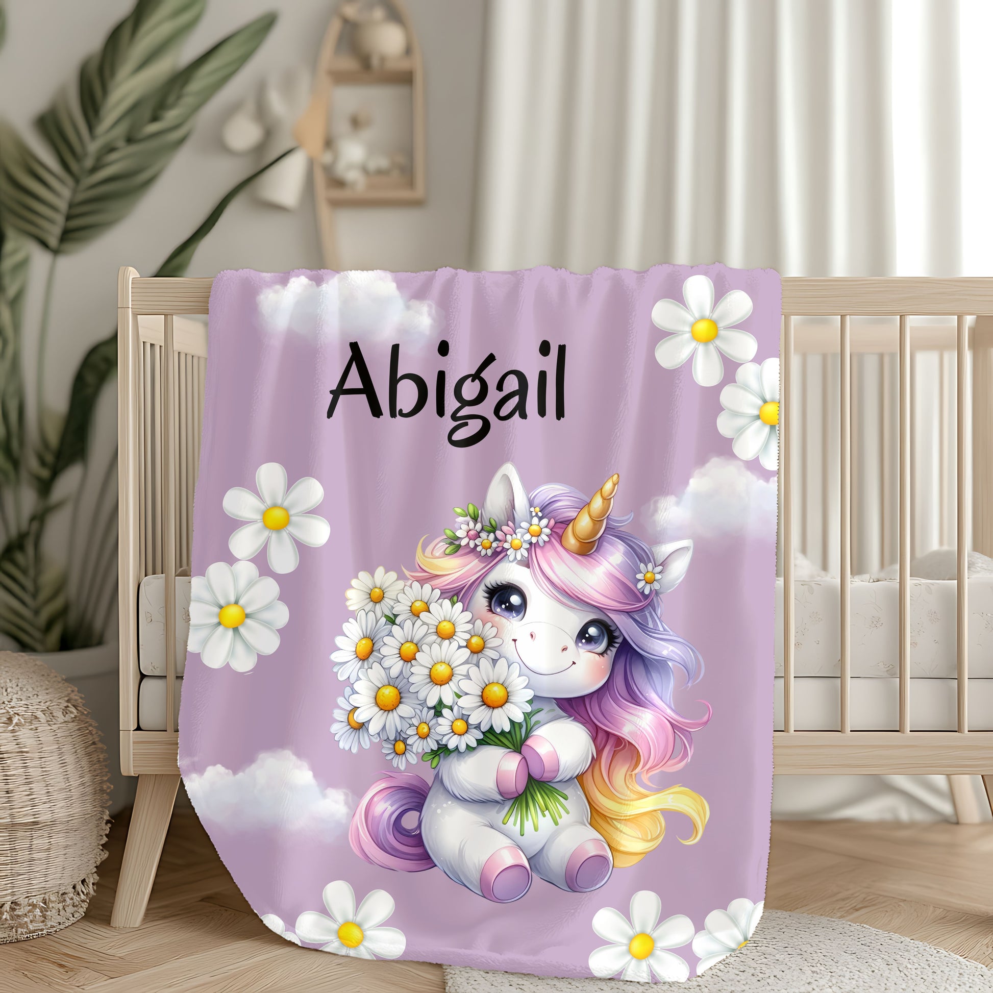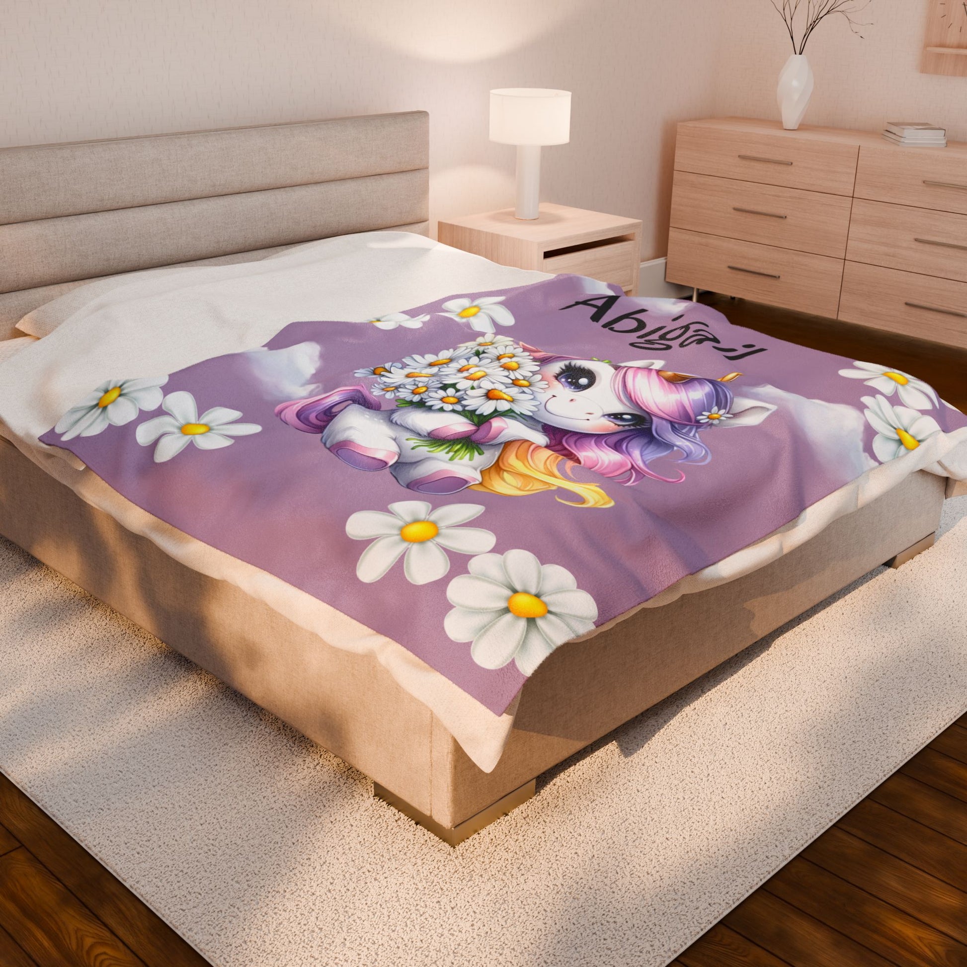 Personalized Unicorn Velveteen Plush Blanket | Soft Kids Gift, Nursery Decor, Cozy Throw, Birthday Present, Baby Shower
