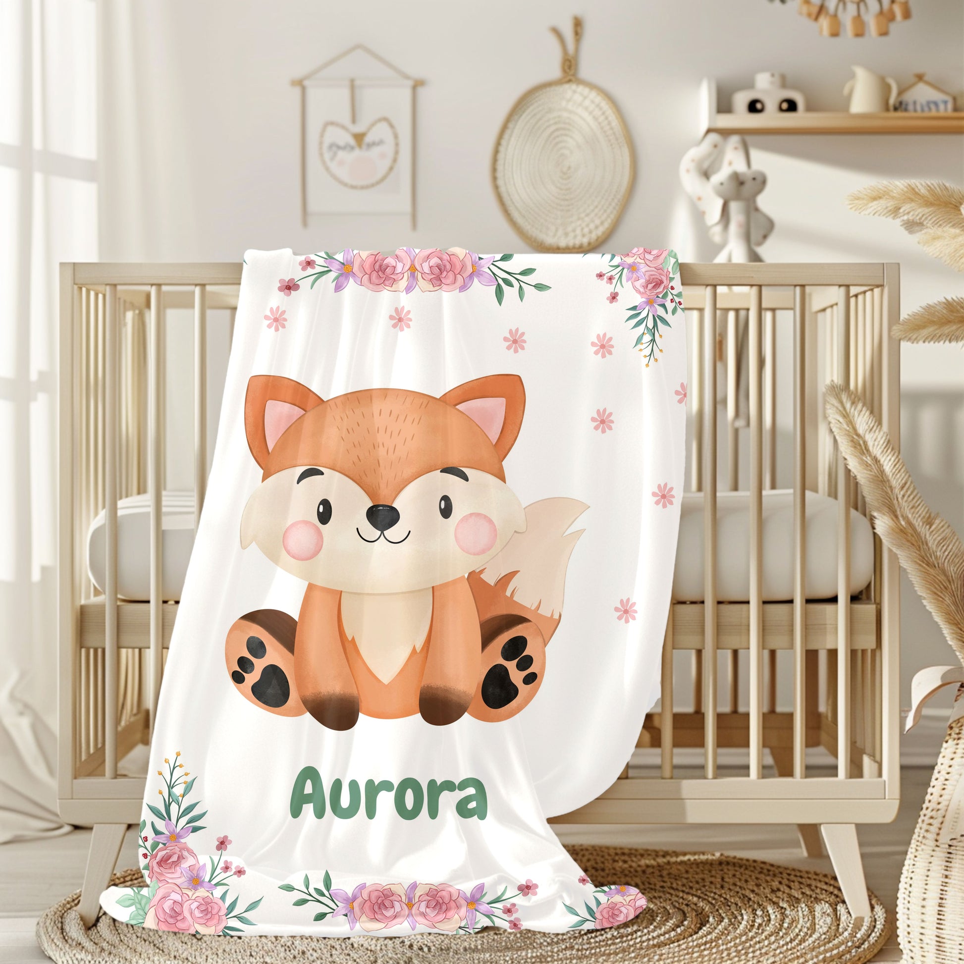 Personalized Velveteen Plush Blanket with Adorable Fox Design, Cozy Nursery Decor, Gift for Baby Shower, Kids Room, Custom Blanket