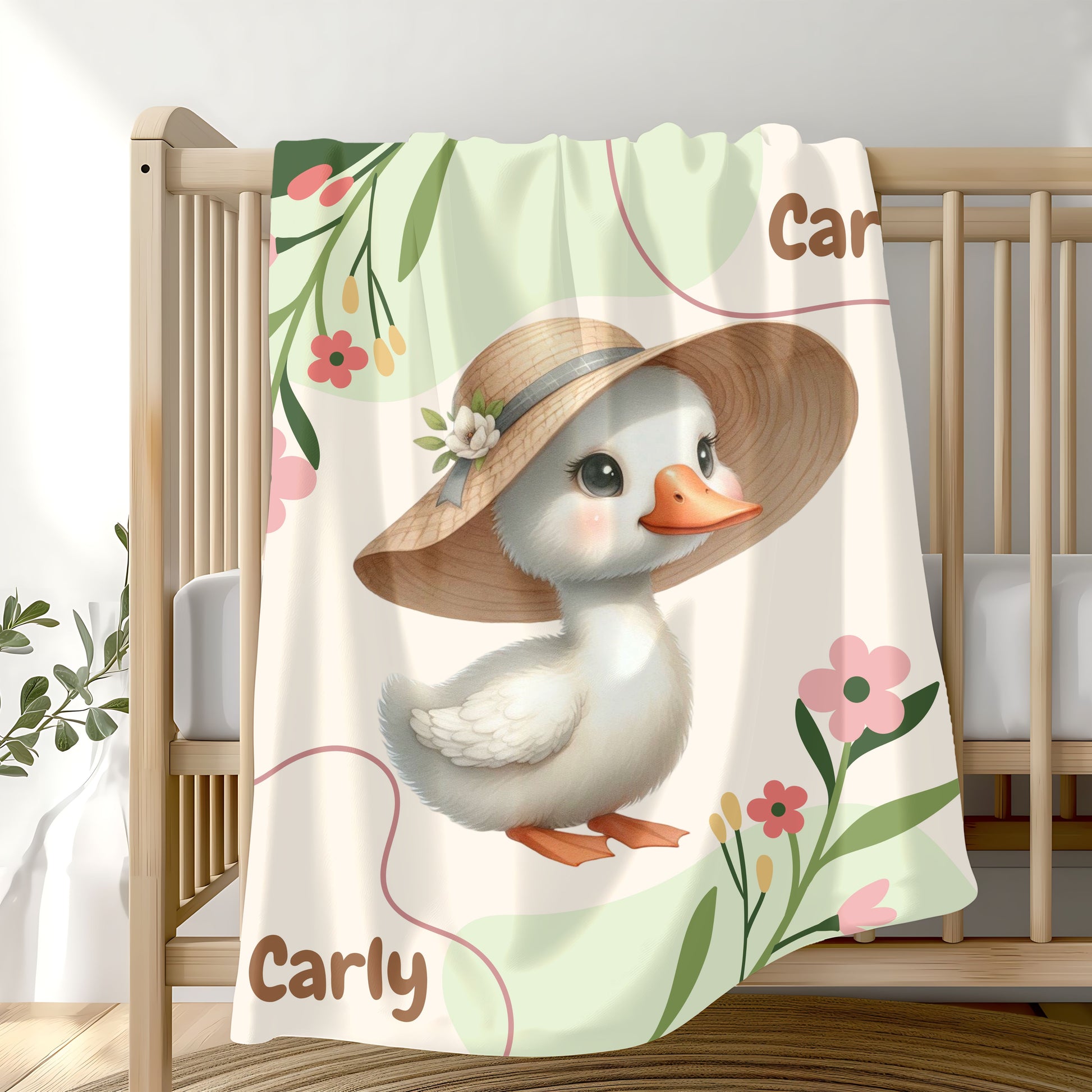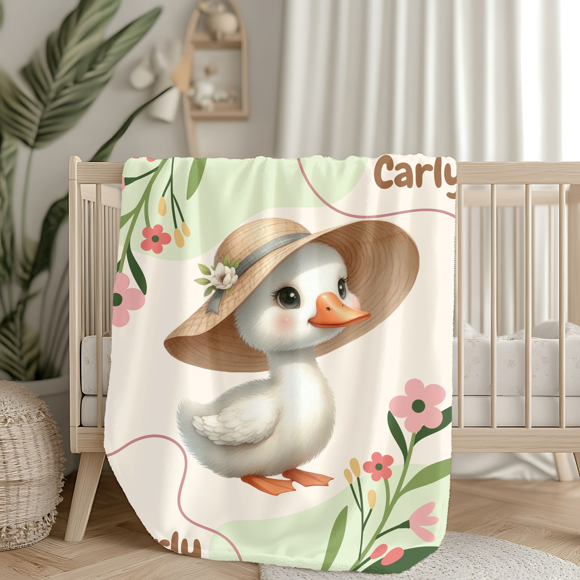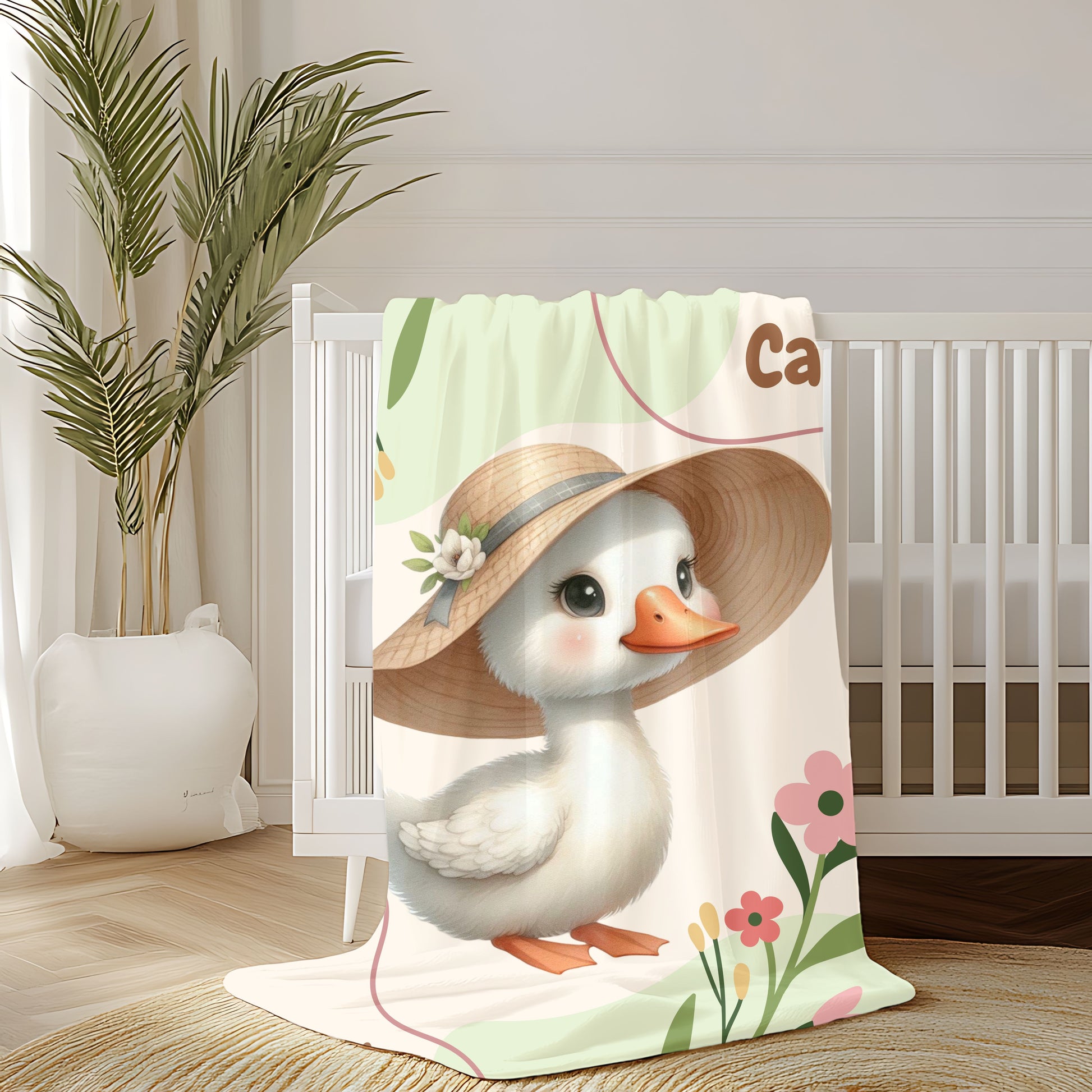 Personalized Velveteen Plush Blanket with Cute Duck Design, Cozy Throw for Kids, Nursery Decor, Birthday Gift, Baby Shower Gift