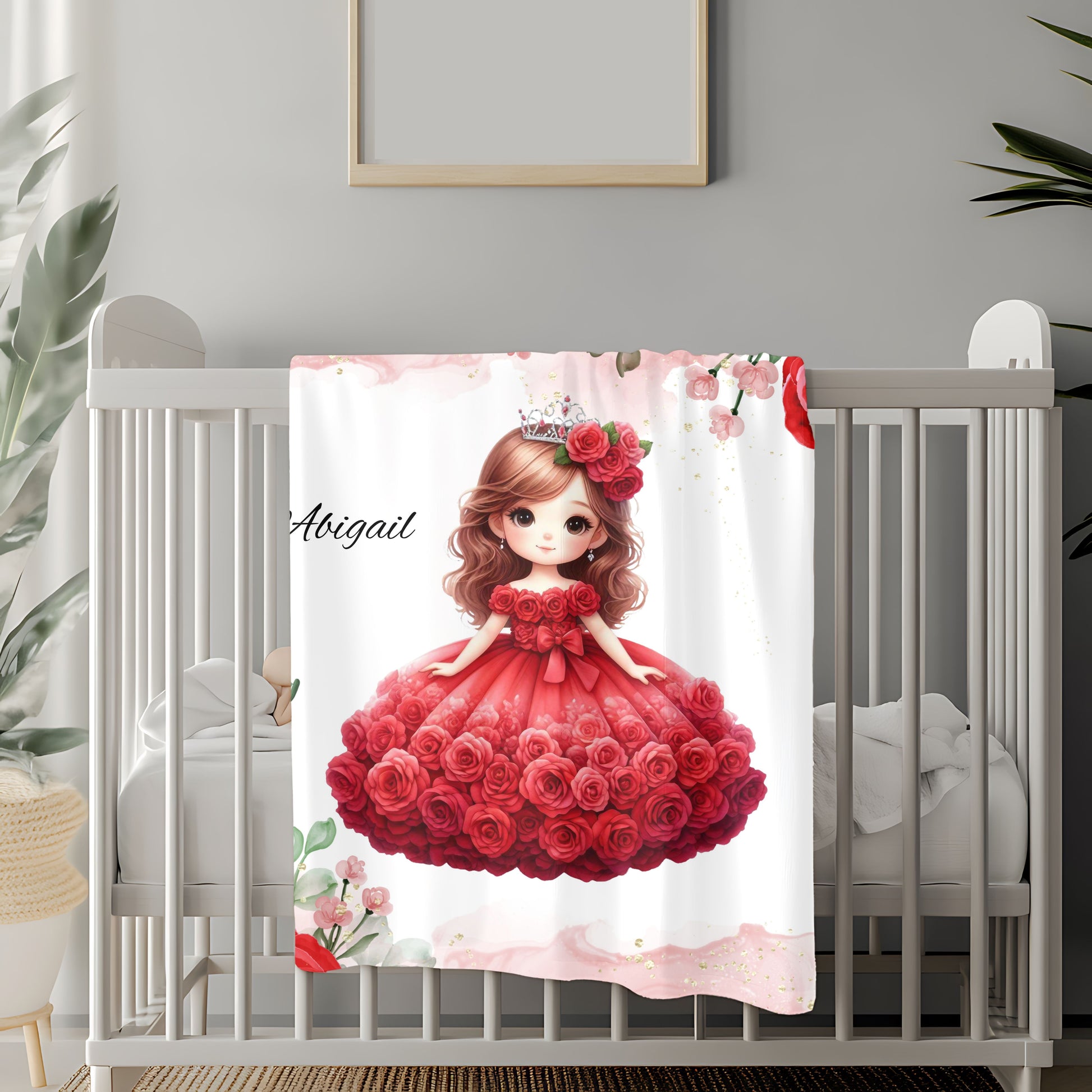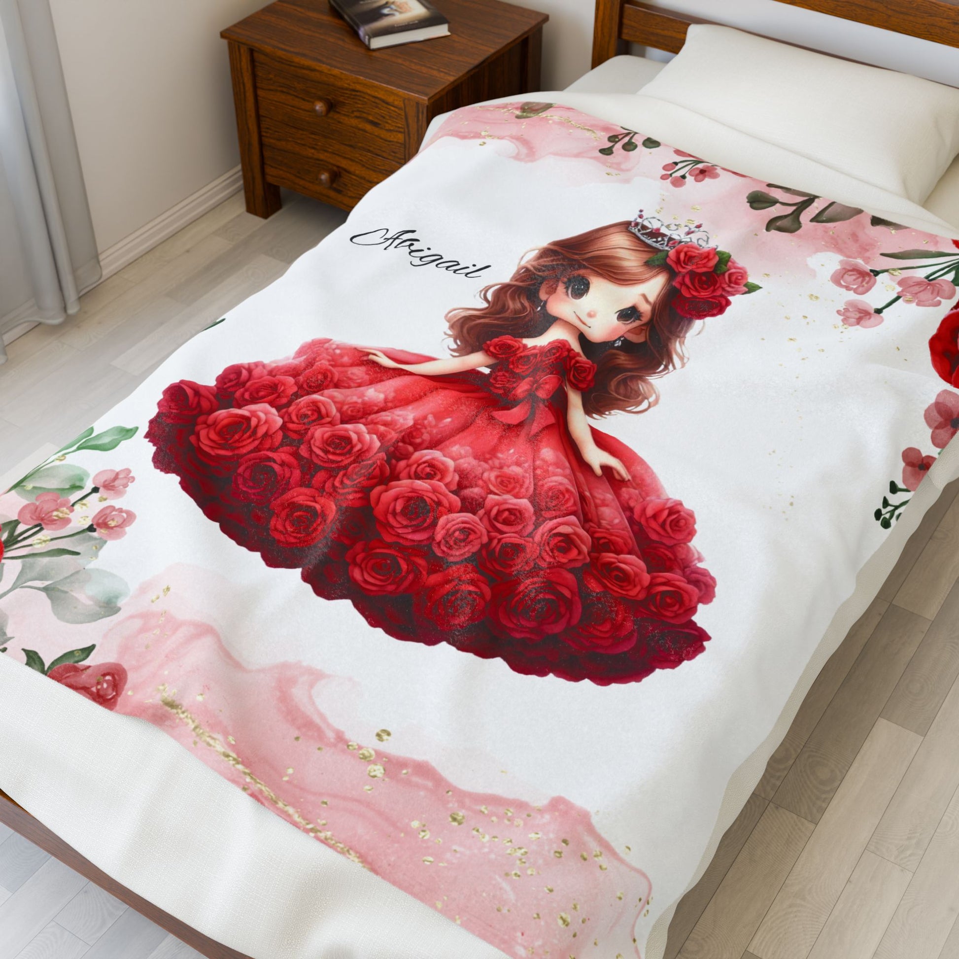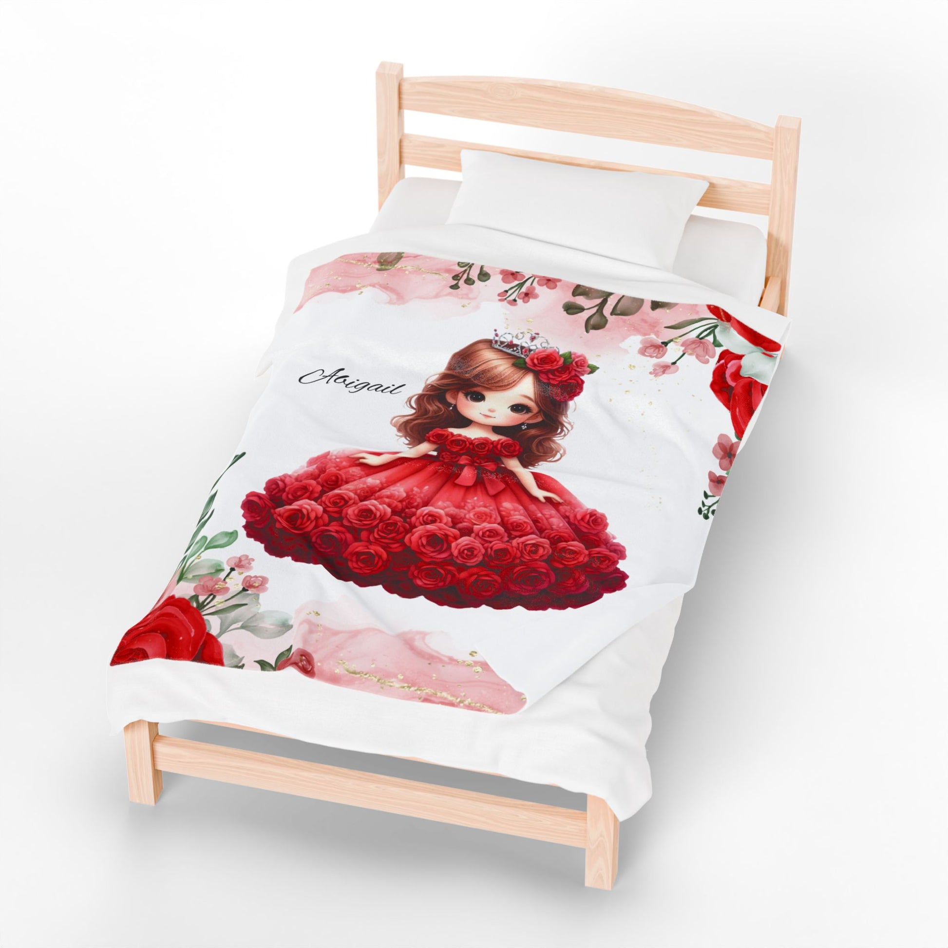 Personalized Velveteen Plush Blanket with Floral Fairy Design, Cozy Gift for Kids, Nursery Décor, Soft Throw for Birthdays, Baby Showers