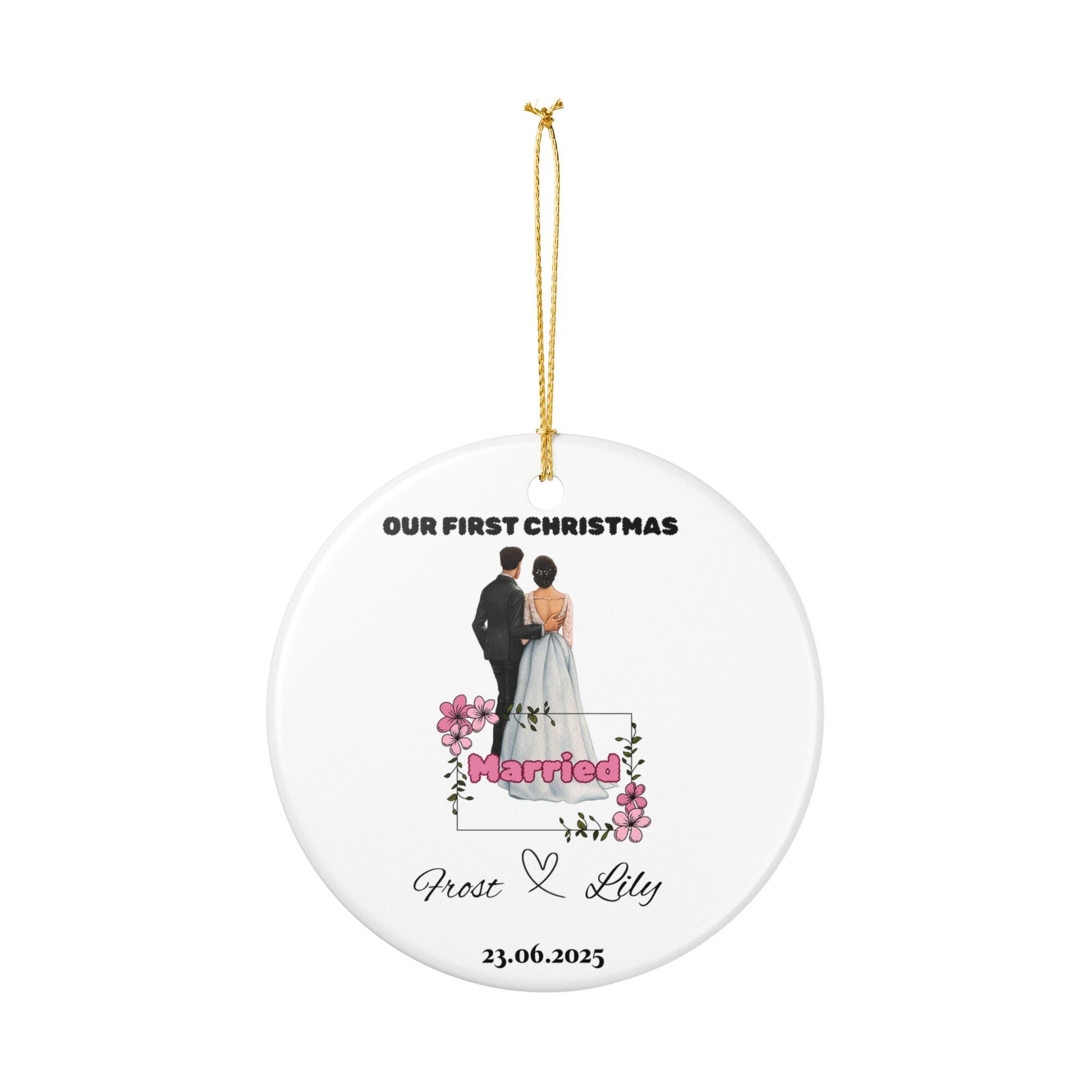Celebrate love and cherished moments with this beautiful Ceramic Decoration Ornament. Made from high-quality ceramic, this glossy ornament features a matte print finish that beautifully showcases your personal message or design. Perfect for newlyweds or as a thoughtful gift, it brings a unique touch to festive celebrations. The ornament is ideal for Christmas, weddings, anniversaries, or even as a personalized keepsake to commemorate special milestones. Its elegant design fits seamlessly into any home décor, adding warmth and a personal touch to holiday traditions or year-round displays. This ornament is a wonderful addition to anyone looking to preserve their loving memories in a charming way.