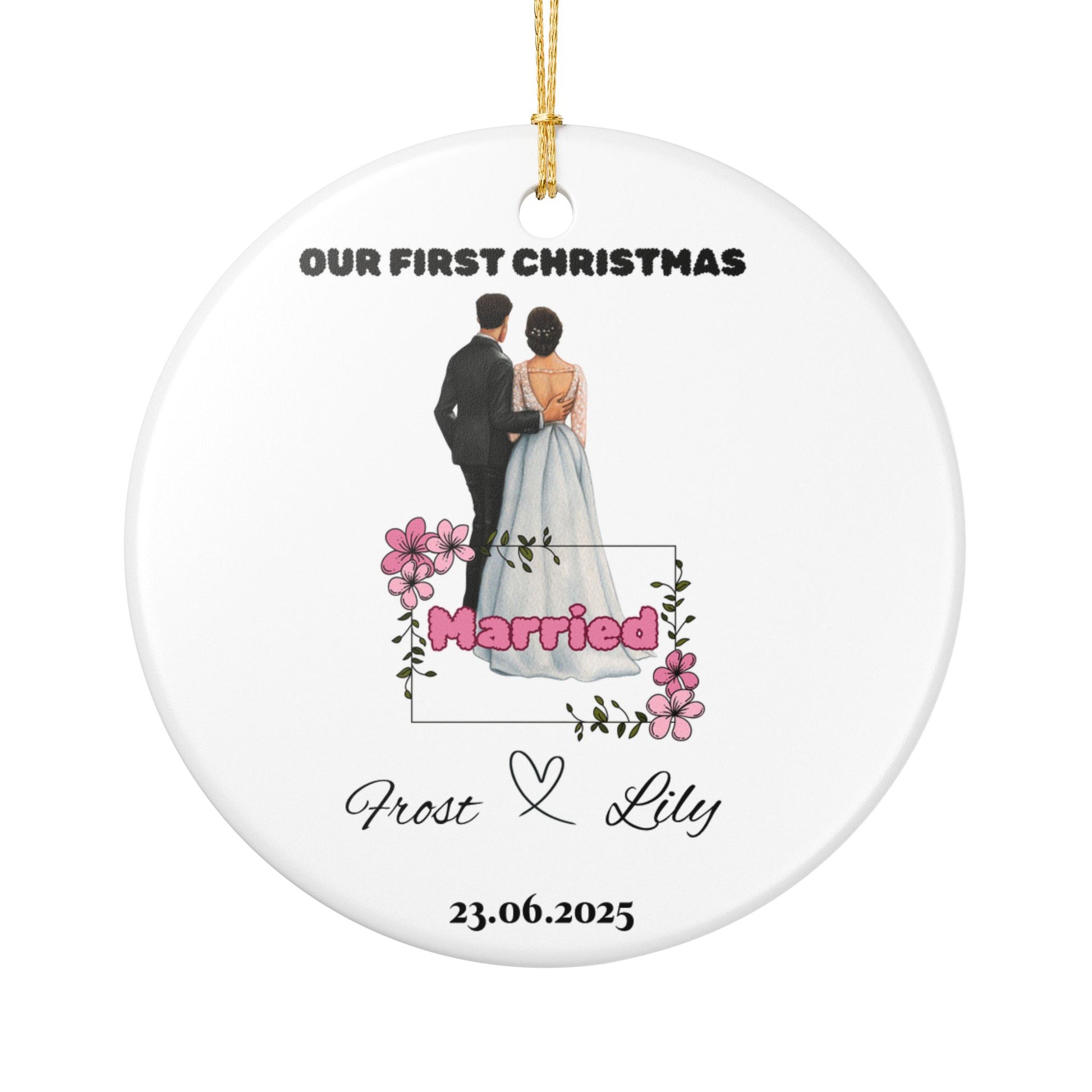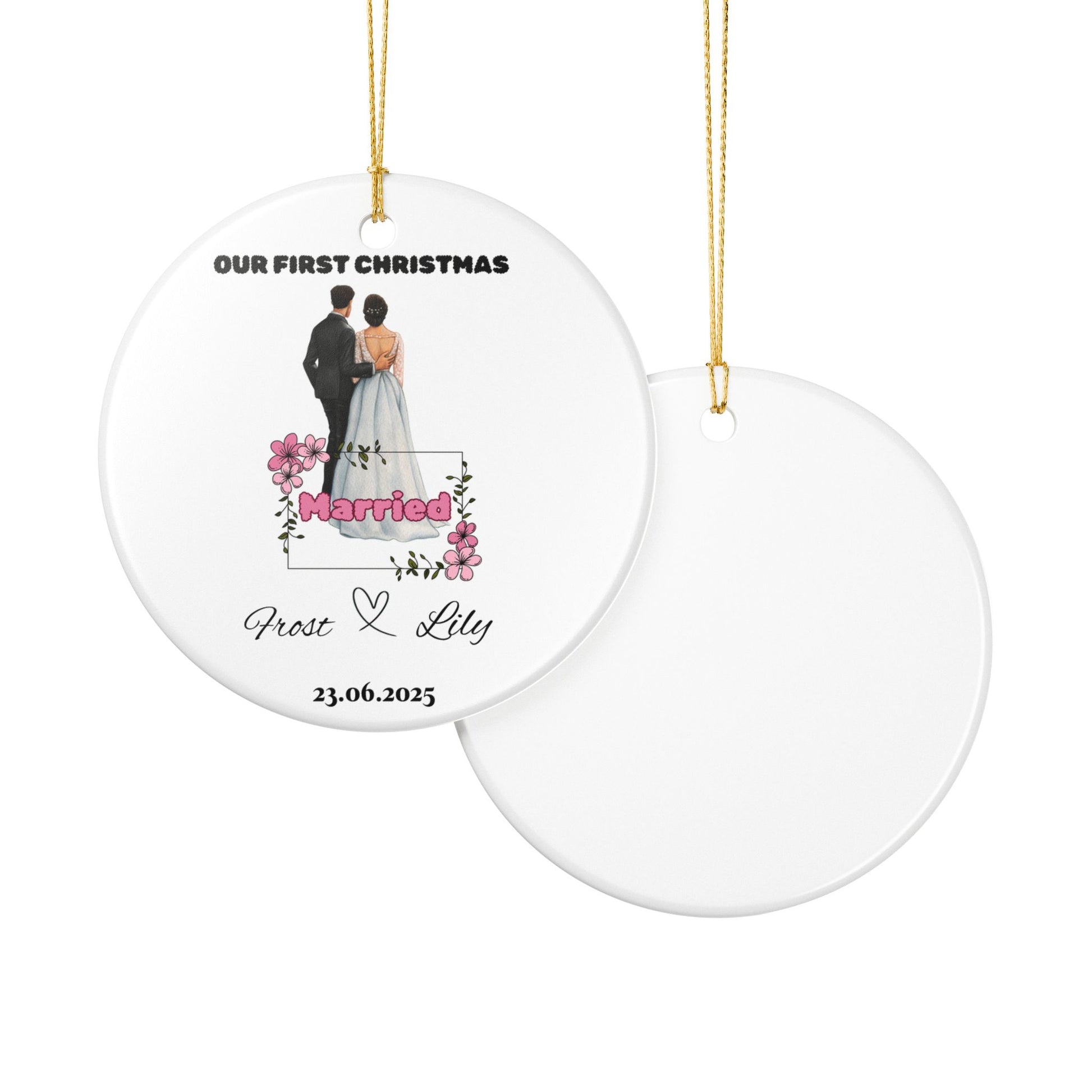 Personalized Wedding Ornament, Keepsake Decoration, First Christmas as Married Couple, Custom Holiday Decor, Engagement Gift, Newlywed [...]