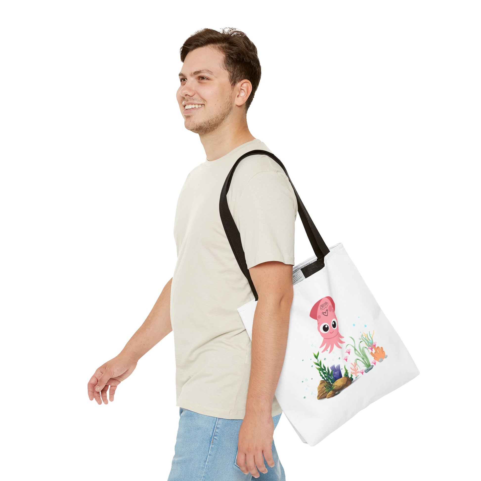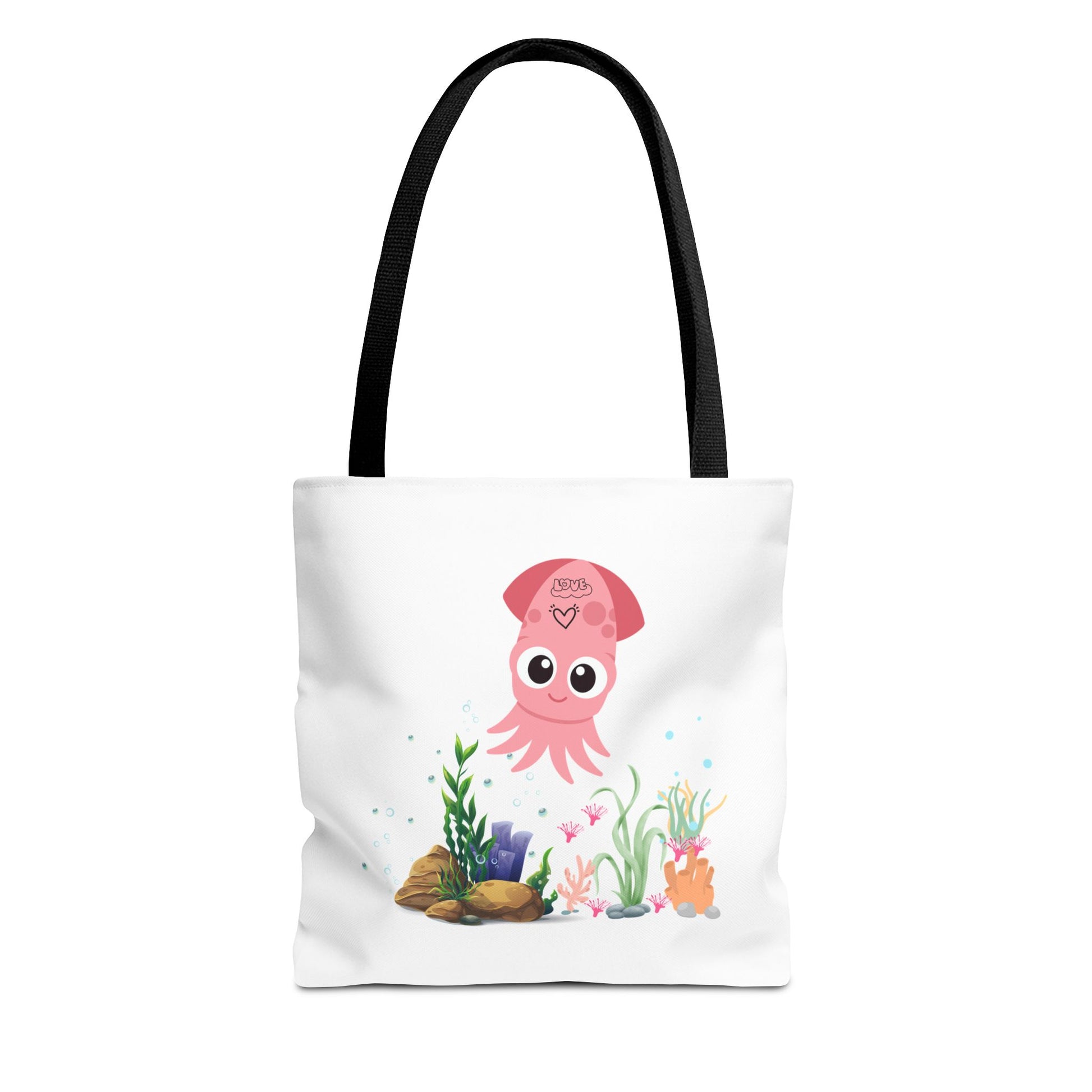 Pink squid cartoon with love Tote Bag