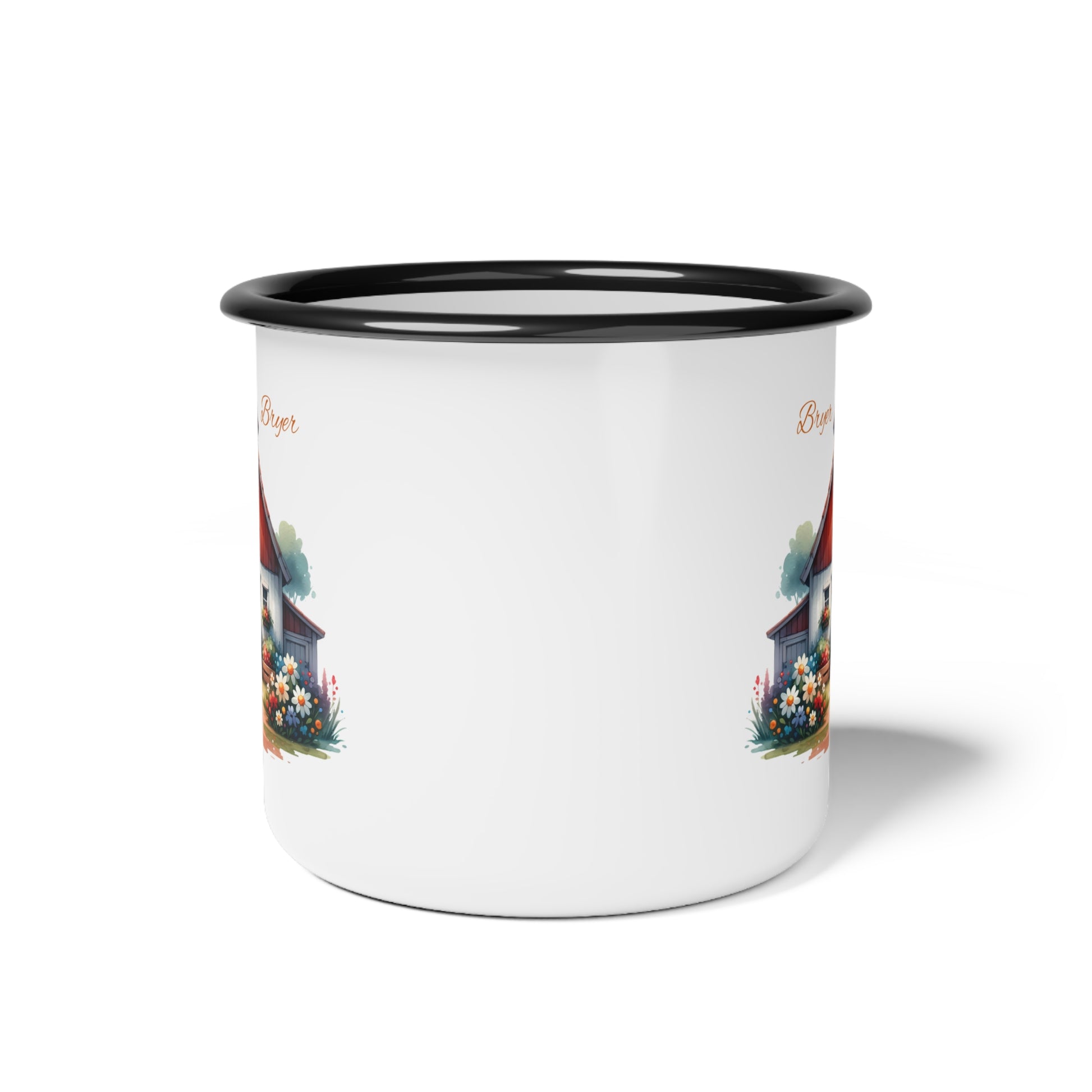 Rustic Cottage Enamel Camp Cup – Personalized "Bryar" Floral Cabin Mug