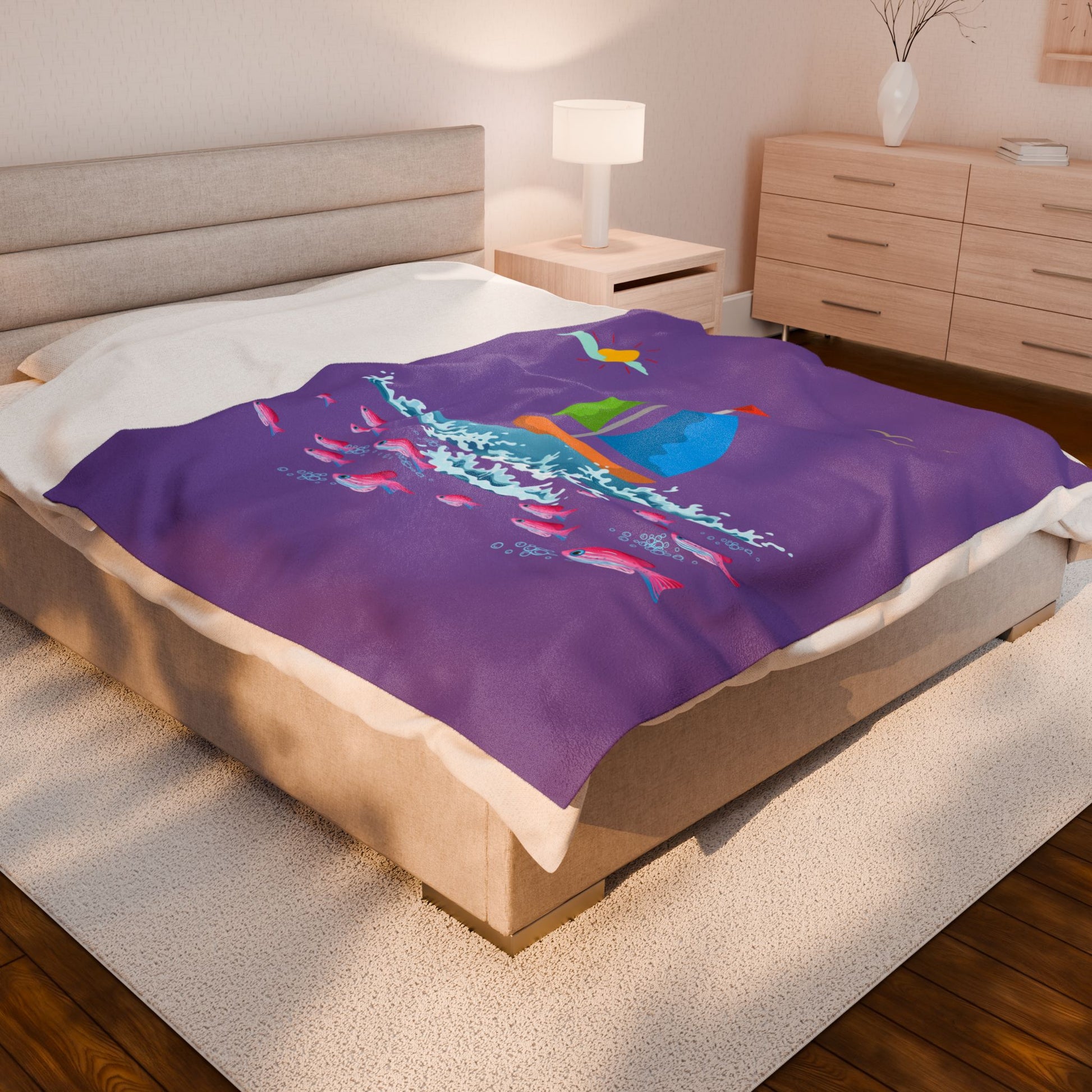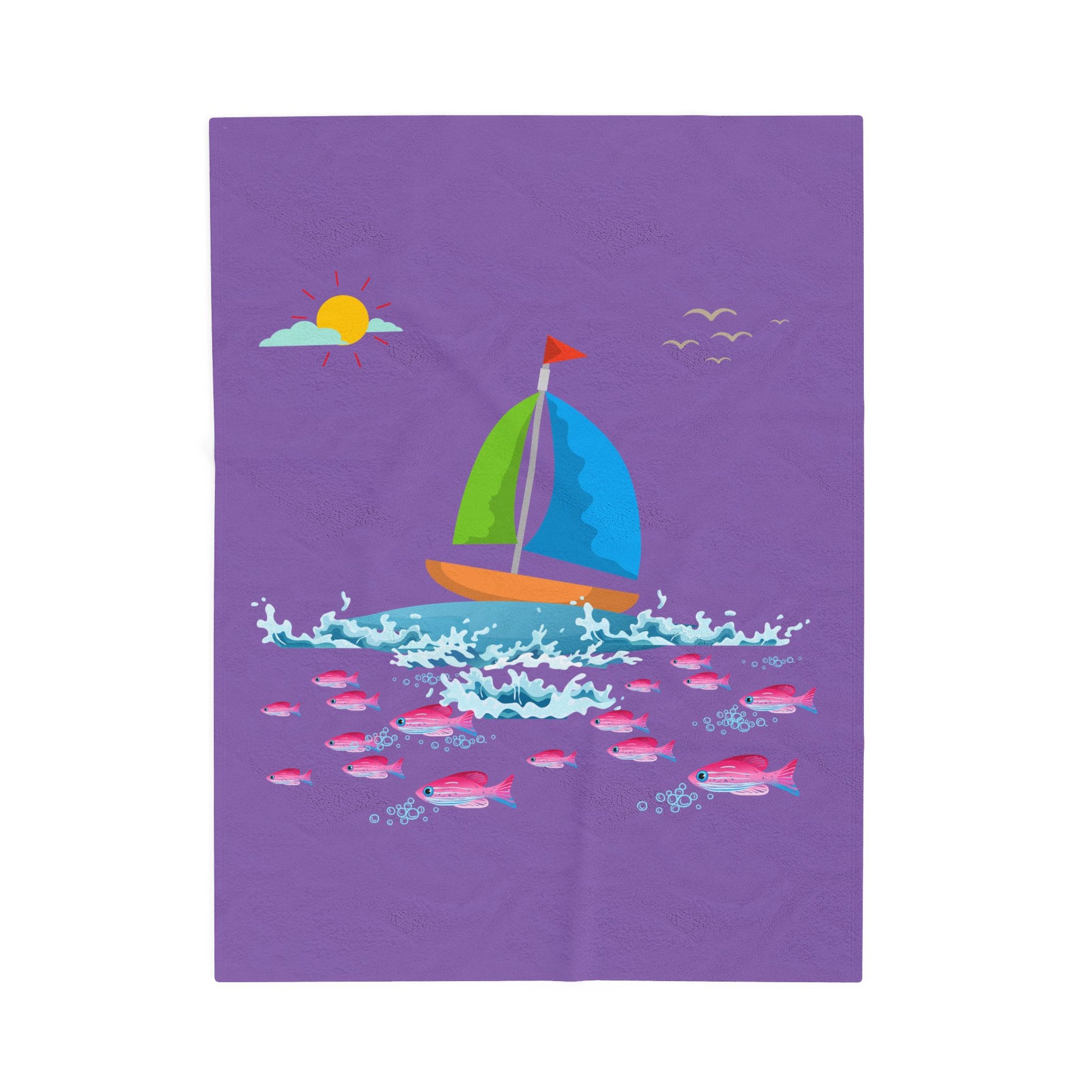 Sailboat and Red fish Velveteen Plush Blanket