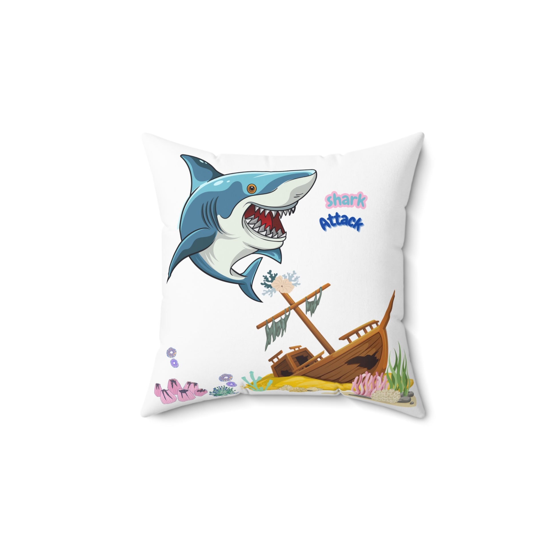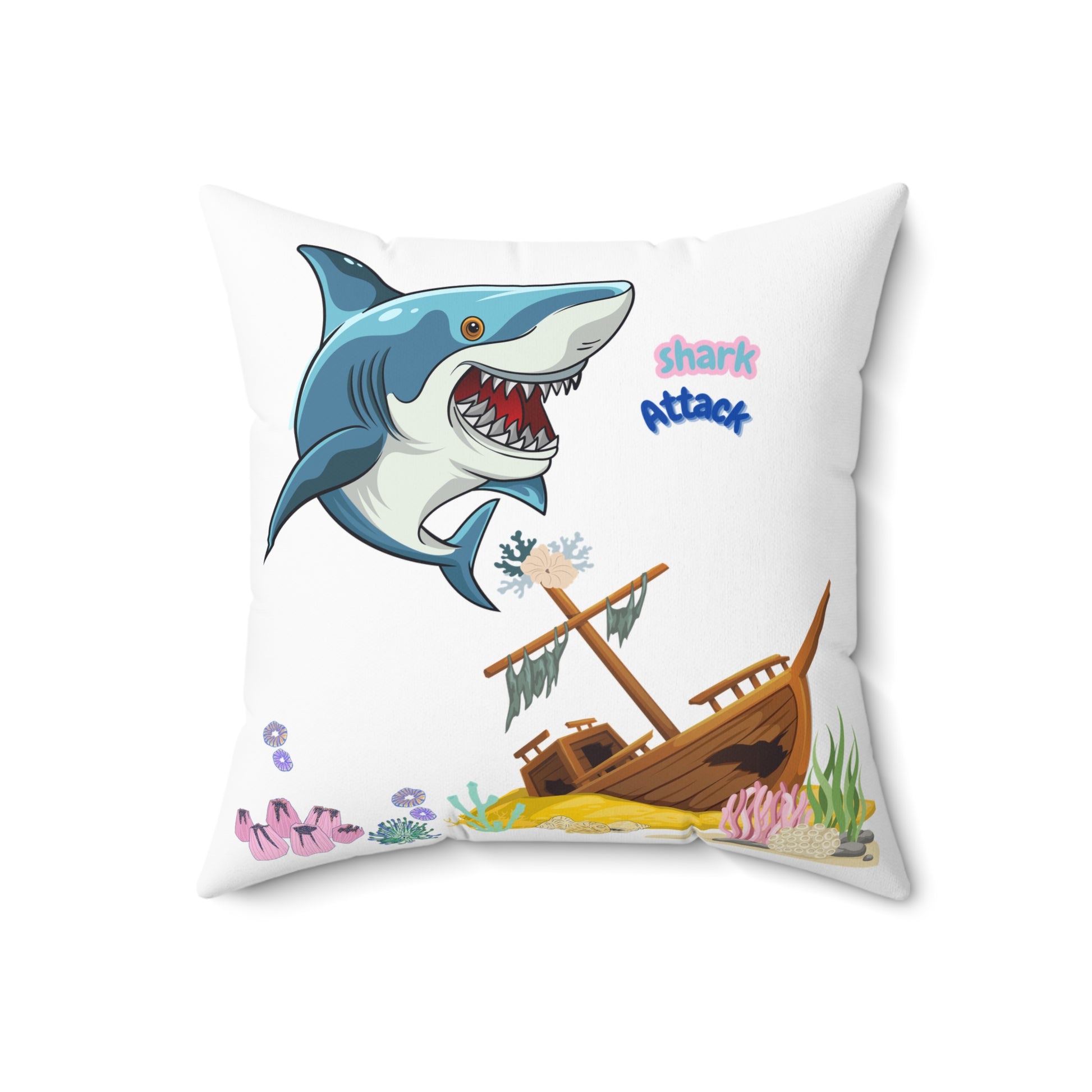 Shark ship colorful coral reef Spun Polyester Square Pillow