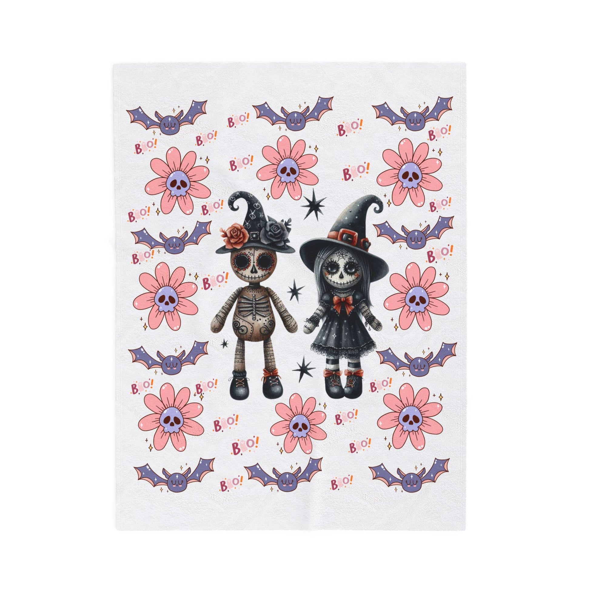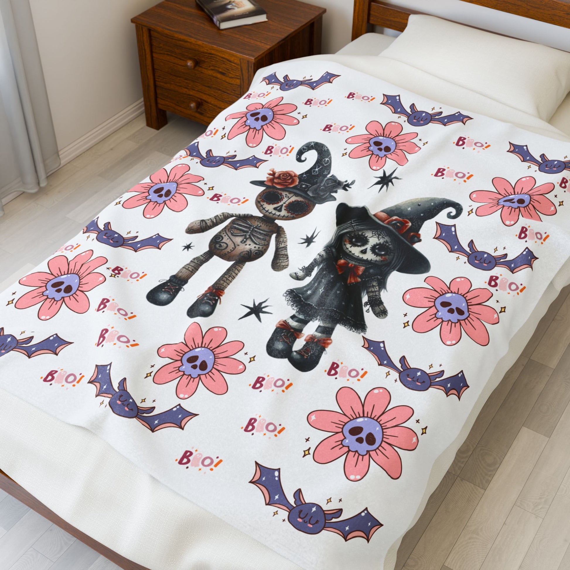 Spooky Floral Velveteen Blanket, Halloween Décor, Cozy Throw, Kids Room Blanket, Soft Throw Blanket, Perfect for Fall