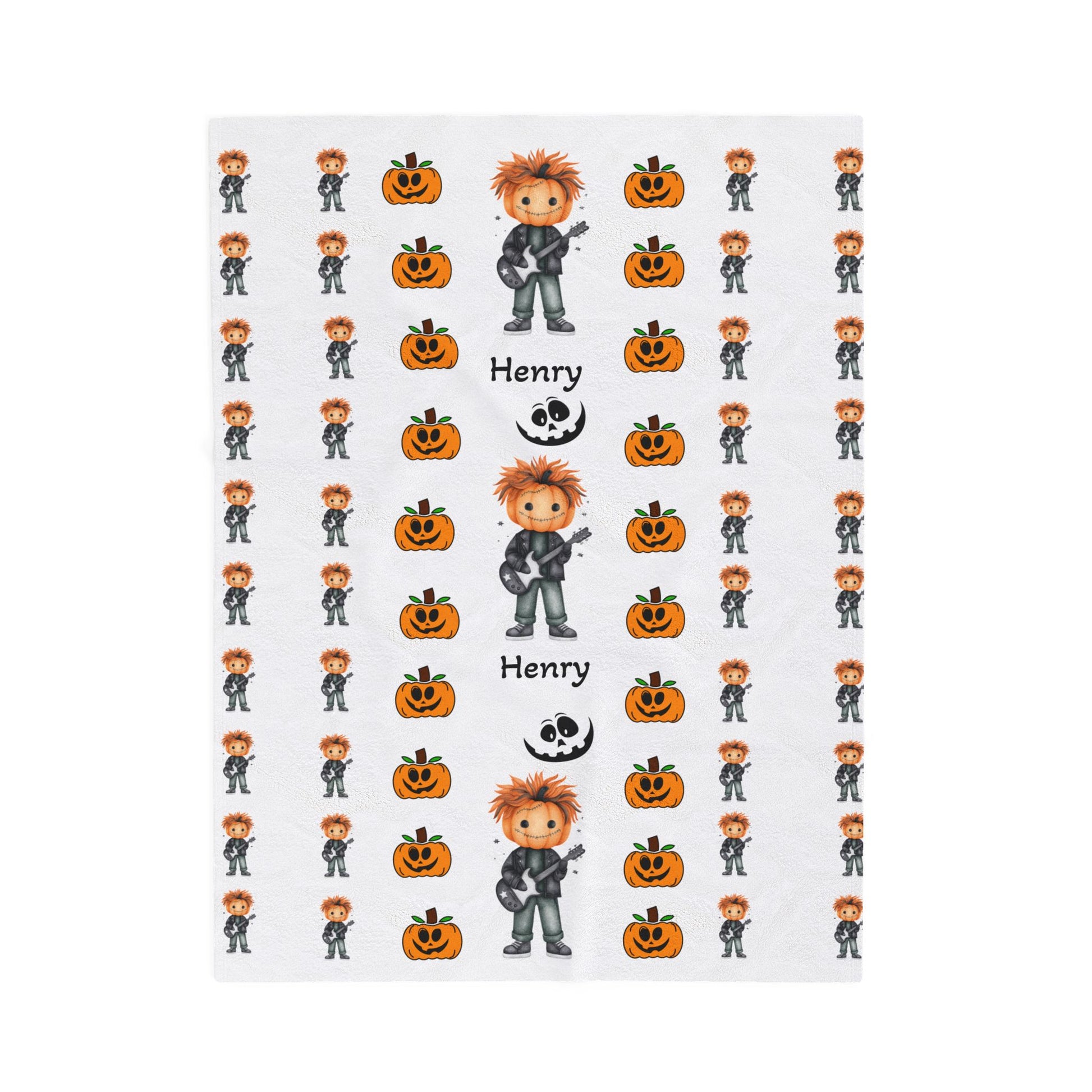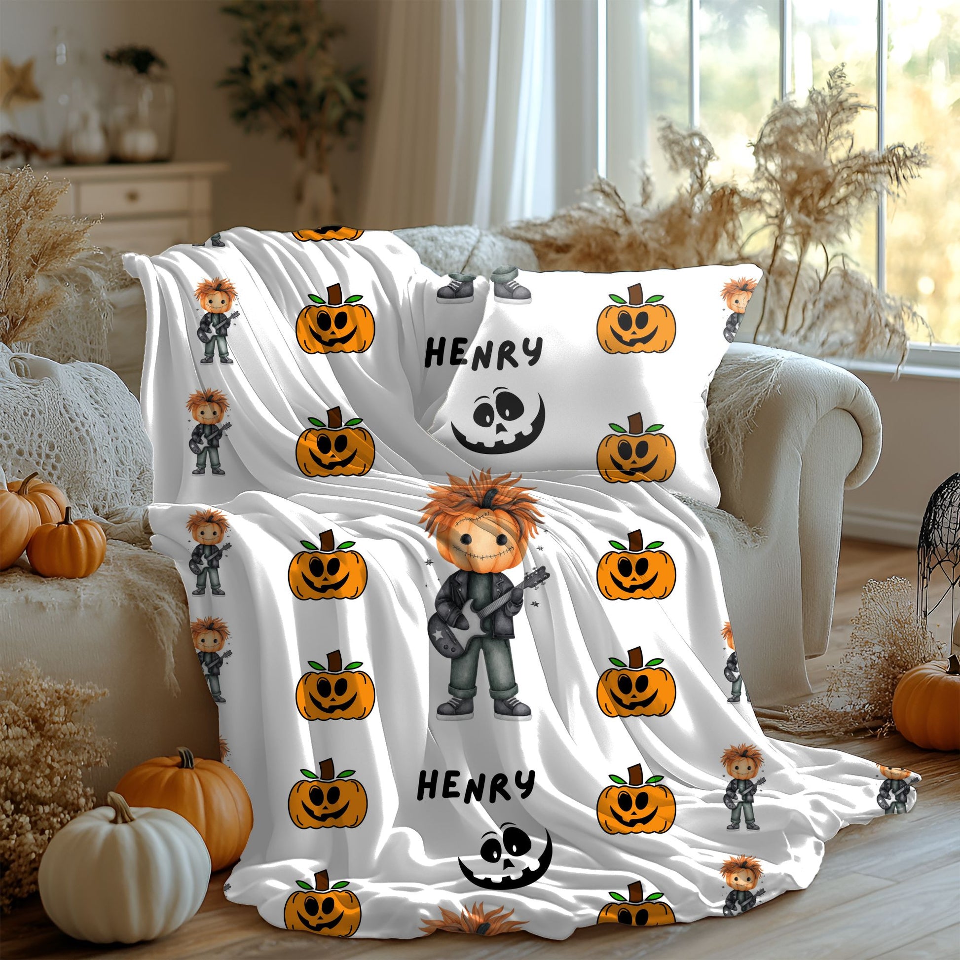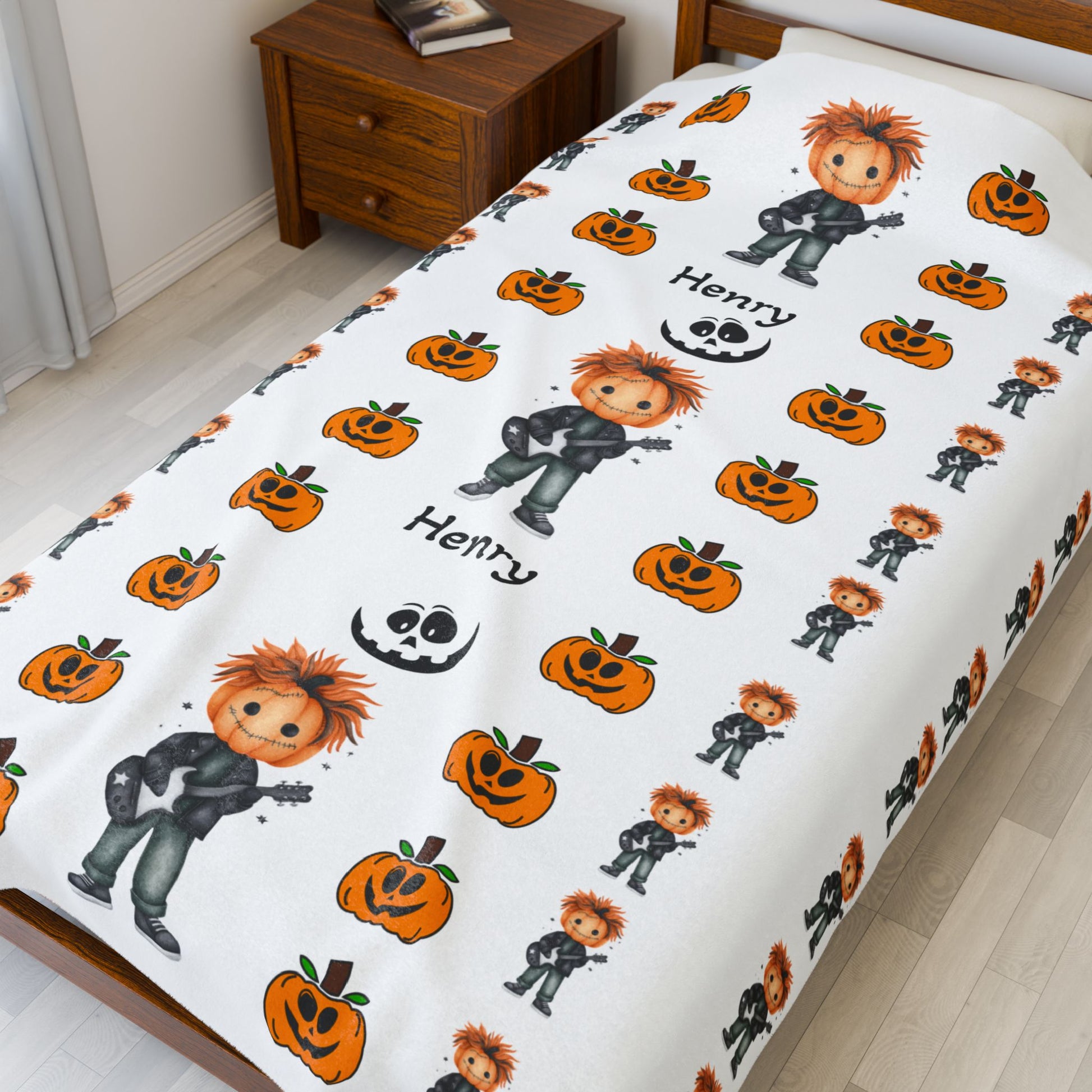 Spooky Fun Personalized Velveteen Plush Blanket, Halloween Throw Blanket, Cozy Gift for Kids, Seasonal Home Decor, Pumpkin & Monster Design