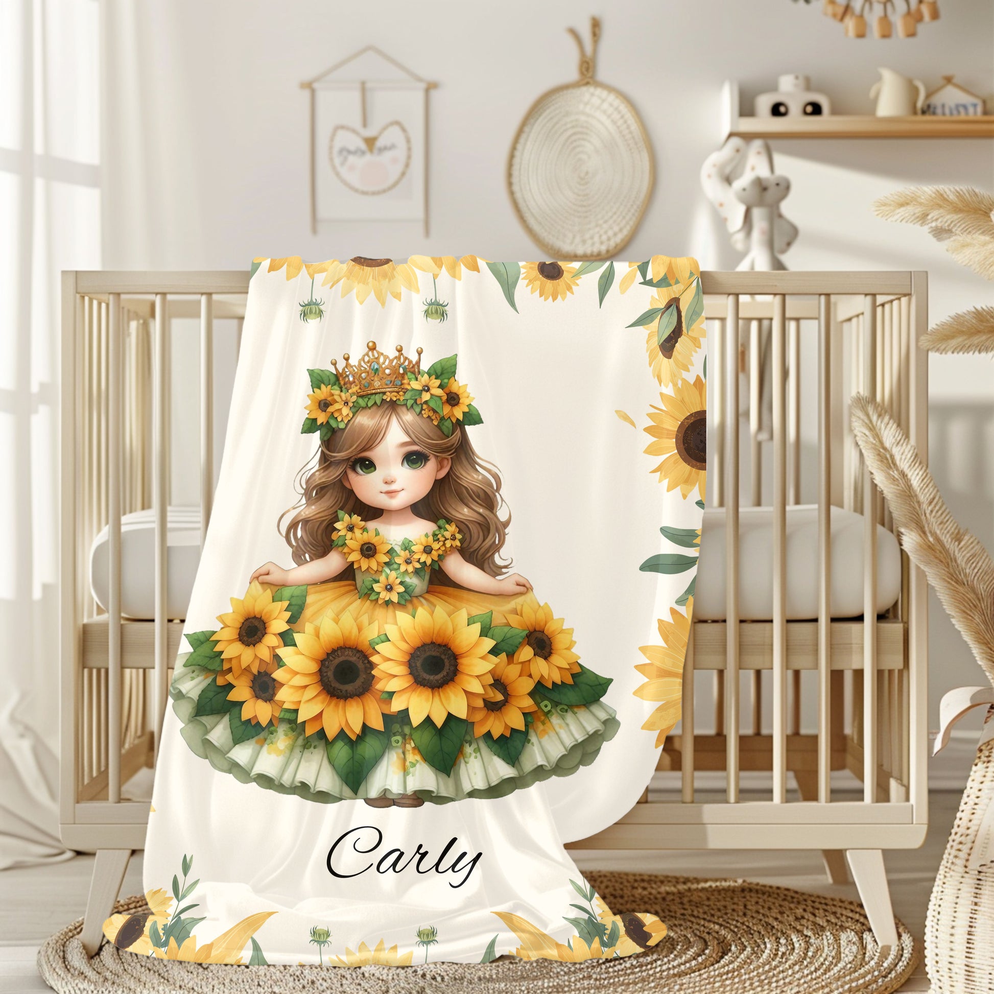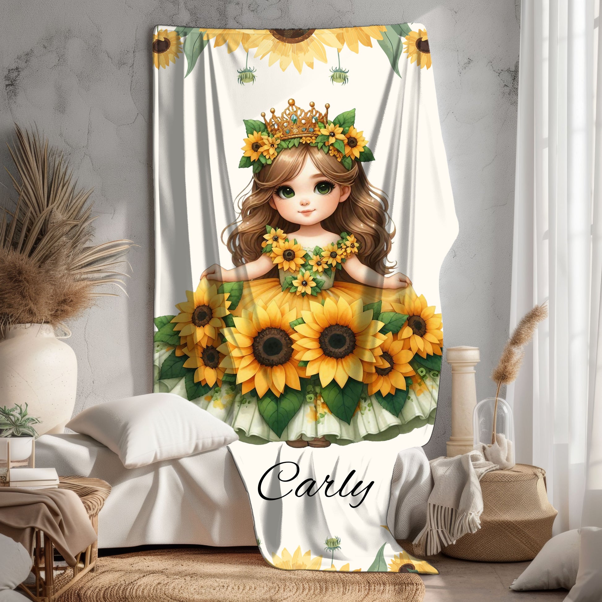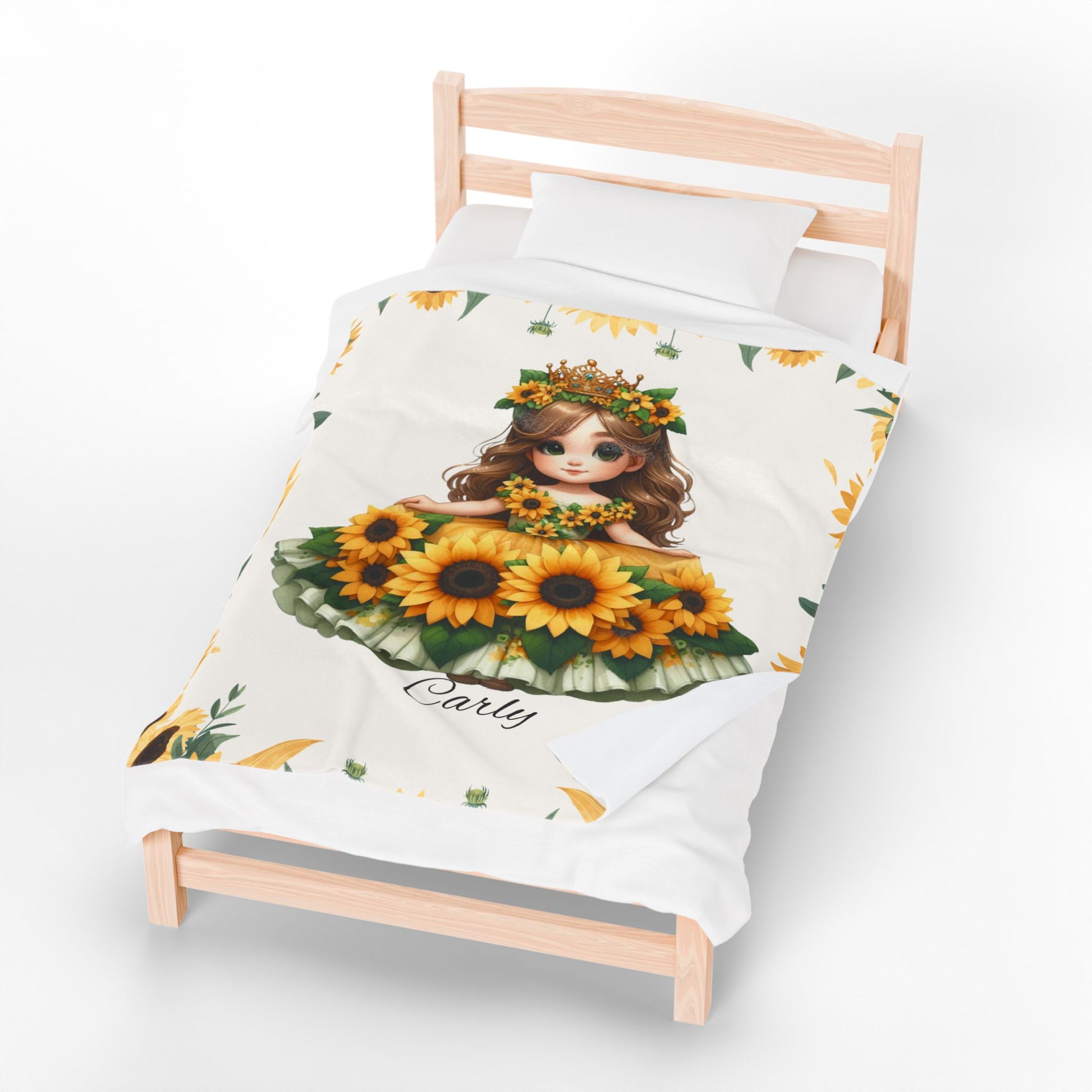 Sunflower Goddess Personalized Velveteen Plush Blanket, Cozy Throw, Kids Gift, Nursery Decor, Summer Vibes, Birthday Present